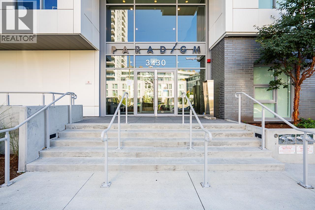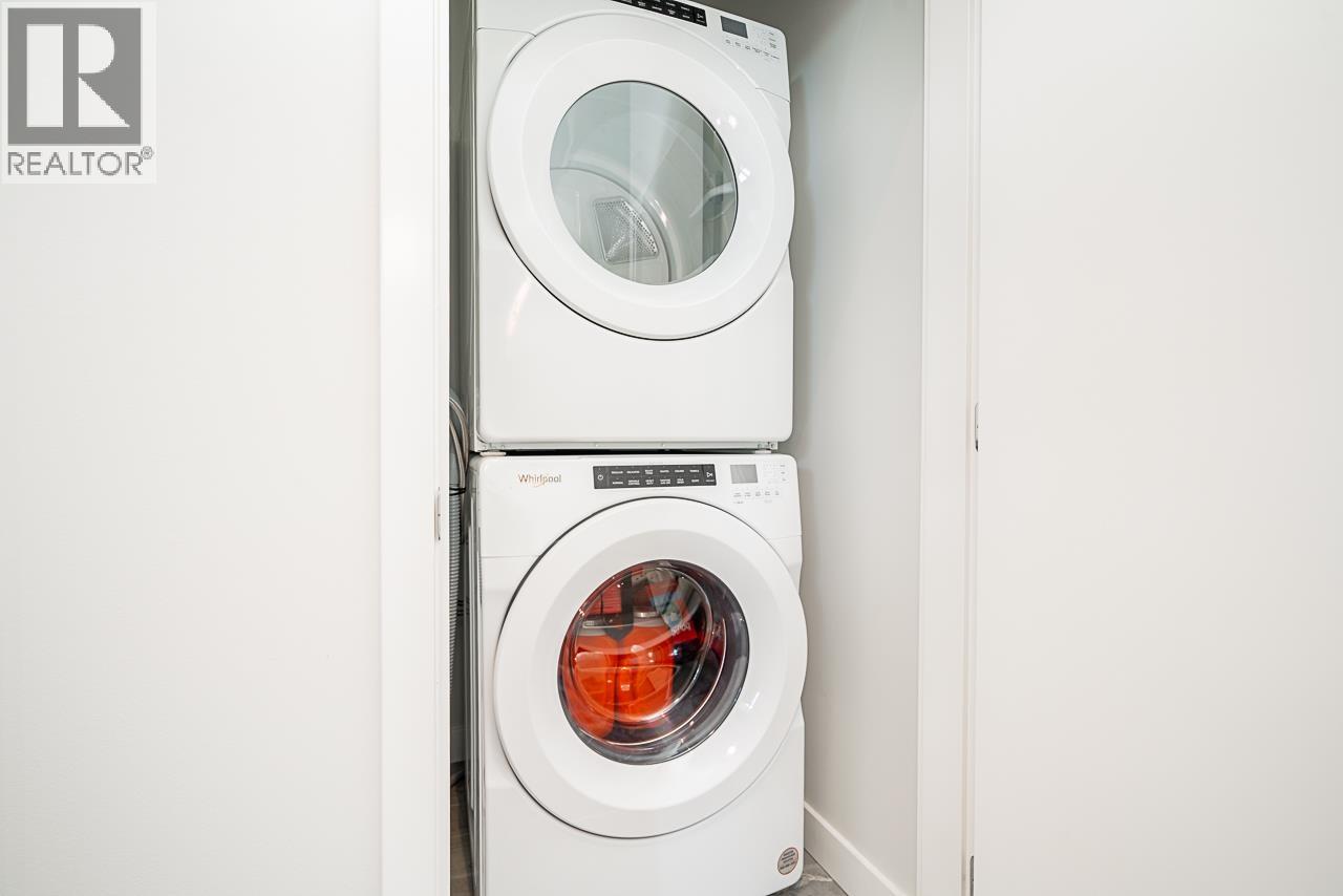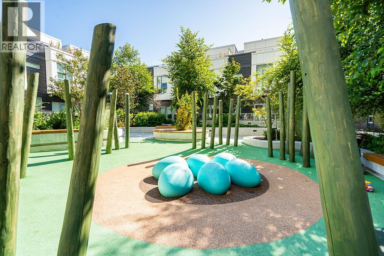 Discover modern riverside living at Paradigm by Wesgroup. This 2 bed, 2 bath + den corner townhouse offers private entry, high ceilings, and a functional layout. Enjoy a west-facing patio, chef-inspired kitchen with island, gas cooktop & premium appliances. Includes central AIR Conditioning, secure parking, and access to concierge, fitness, yoga, rooftop BBQ & more-steps to River District shops. (32400198)
