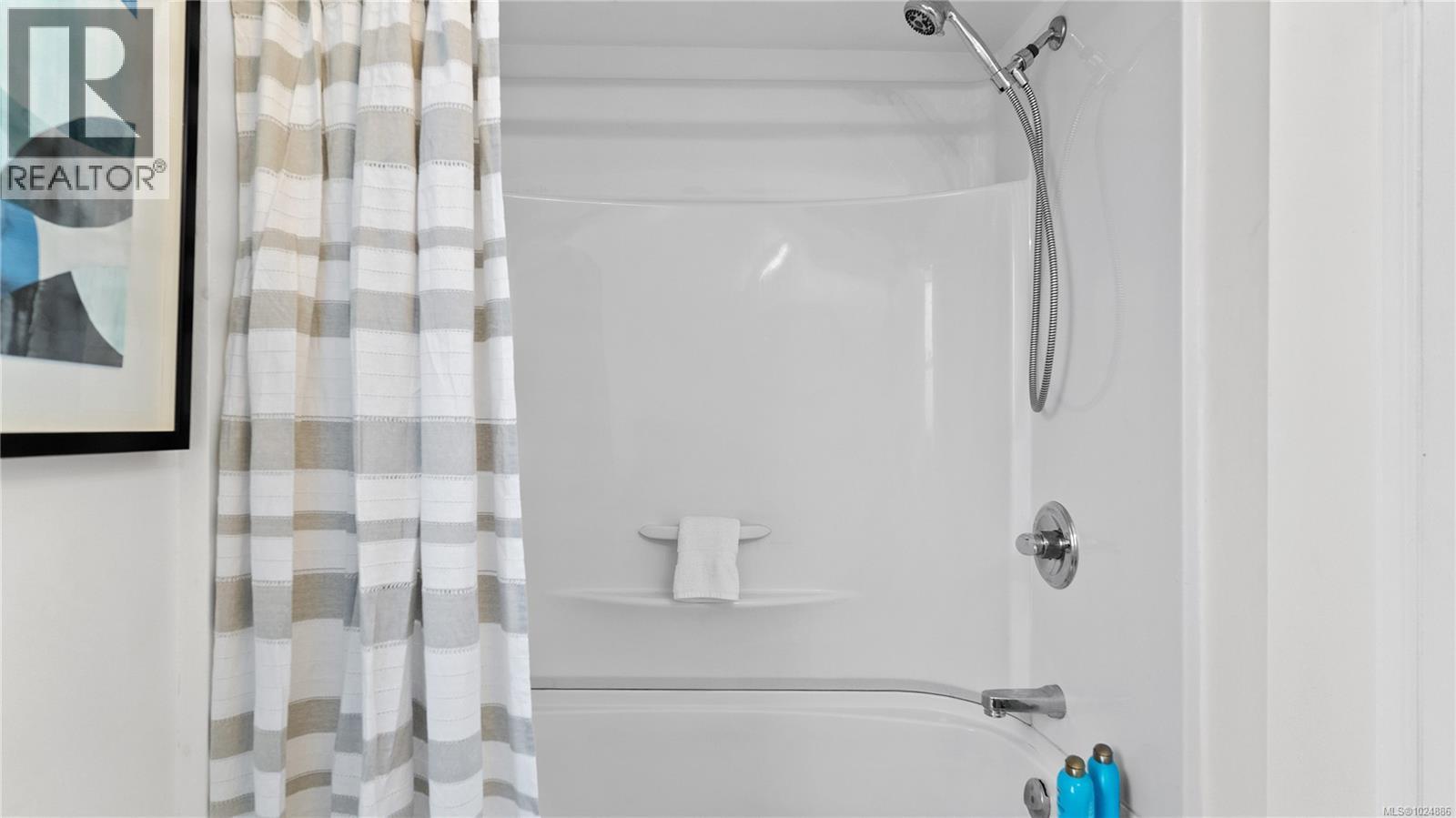 Bathroom tub and shower. The interior doors, hinges and handles have been upgraded to Black hardware.