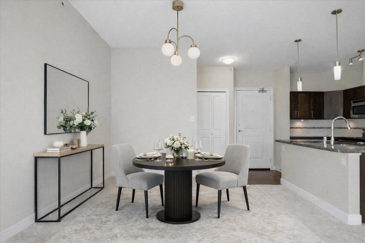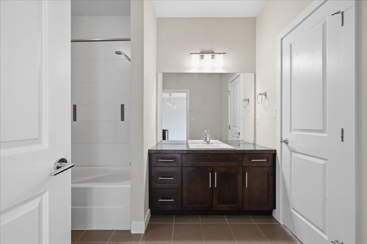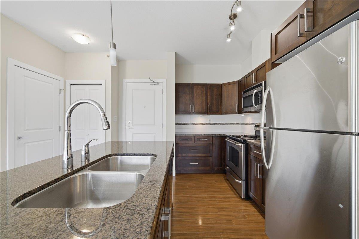 Welcome to The Gallantree, where modern comfort meets unbeatable convenience! This bright and spacious 1-bedroom, 1-bathroom condo offers 740 sqft of thoughtfully designed living space. Situated on the quiet side of the building, the unit boasts a functional open layout with 9' ft ceilings, sleek laminate flooring, NEW carpet, S/S appliances, granite counter tops, centre island, large walk-in closet & spacious laundry with extra storage. Enjoy the outdoors on your covered patio, perfect for relaxing or entertaining. This family friendly building allows rentals & pets. Includes 2 Parking Stalls & Storage! Conveniently located just minutes from historic Downtown Abbotsford, this west-facing unit offers easy access to major routes, an array of shops, dining & entertainment. Ready to Move In! OPEN HOUSE: Feb 7 & 8 (2-4pm). (32400345)