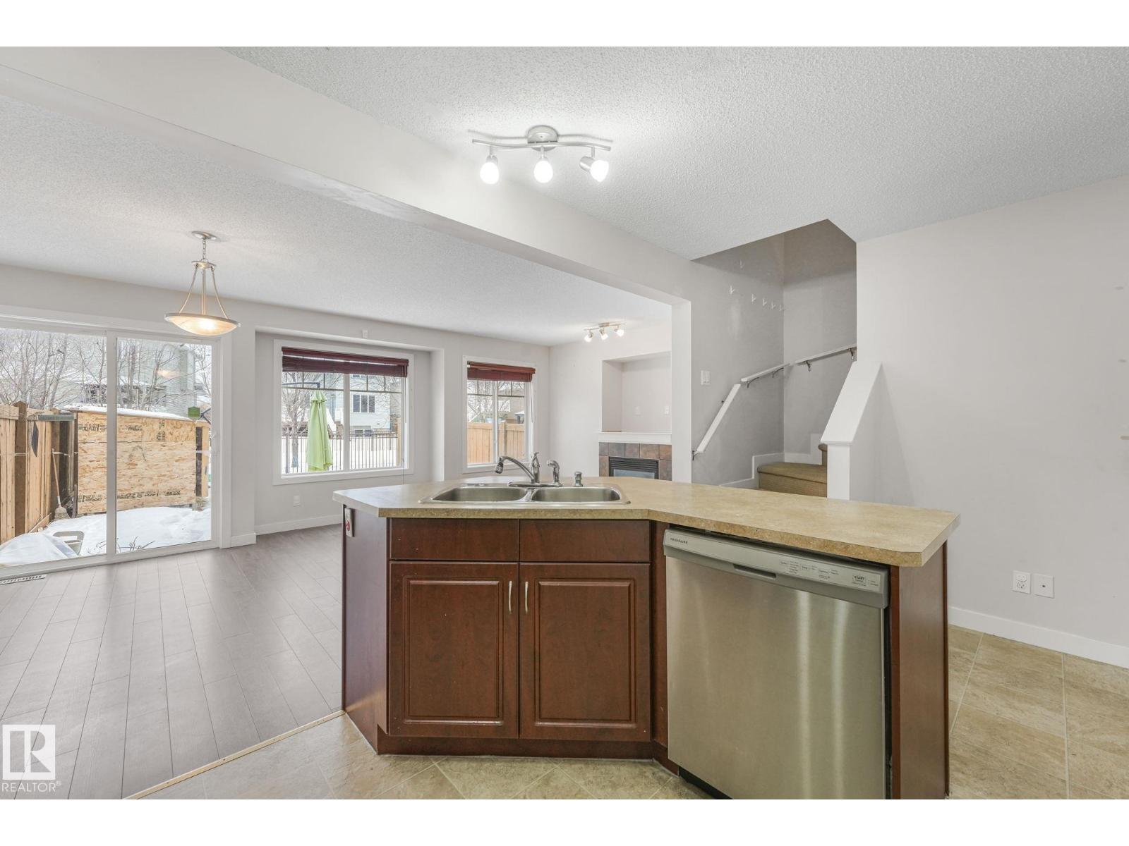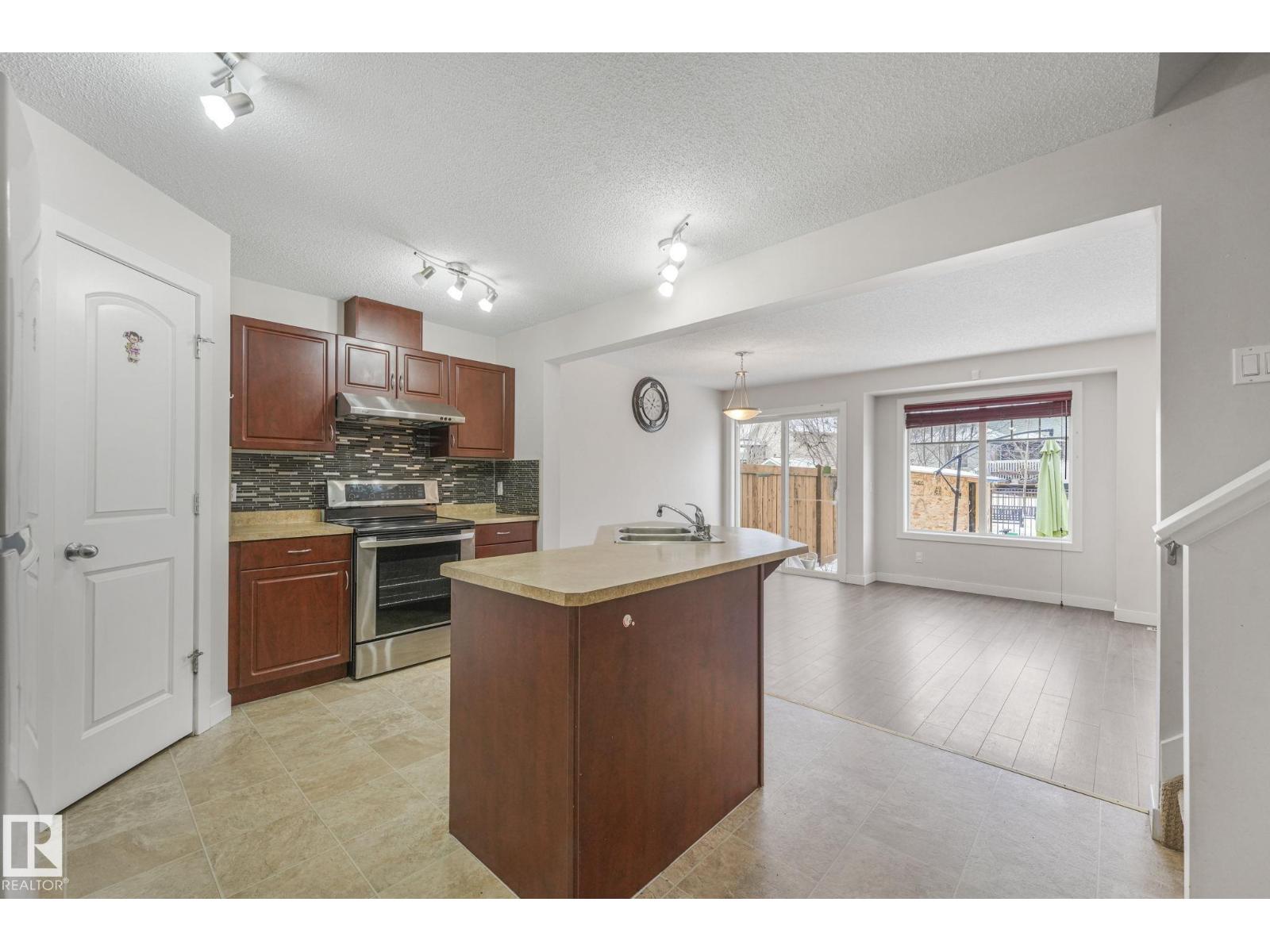Investor’s or First time buyers… don’t miss Out on this Fabulous 4 bed, 3.5 bath half duplex with attached garage and fully finished basement. Spacious modern kitchen with stylish cabinets, backsplash and laminate flooring. Open-concept dining and living area. Upper level offers 3 bedrooms including primary with 4pc ensuite. Finished basement includes 4th bedroom and 3pc bath. Landscaped, fully fenced yard backing onto walking trail. Prime location near parks, schools, LRT, Manning Town Centre and easy Anthony Henday access. Quick possession available (33786768)
