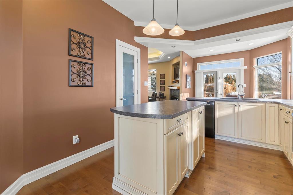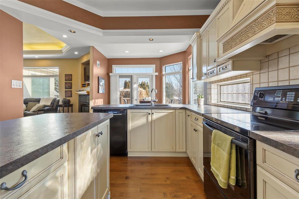 R16//Steinbach/Former show home showcasing quality craftsmanship and timeless design, perfectly suited for your forever home. Ideally located in sought-after Georgetown, backing onto green space with walking paths leading to golf, the aquatic centre, parks, groceries, and restaurants. A dramatic 15 tiled foyer welcomes you with views of the fenced, landscaped backyard. The great room features a tray ceiling and gas fireplace, flowing seamlessly into the gourmet solid-wood kitchen with custom finishes and a glass-block backsplash that fills the space with natural light. Sun filled dinette with expansive windows overlooks the deck and yard, while a separate dining room offers elegant entertaining space. Main floor laundry and mudroom connect to the 24 insulated garage. Three main floor bedrooms include an oversized primary retreat with spa-inspired ensuite, tiled glass shower, and jetted tub. Engineered suspended wood basement flooring provides a warm, main level feel with ducting below. An exceptional home in an unbeatable location. (231916351)