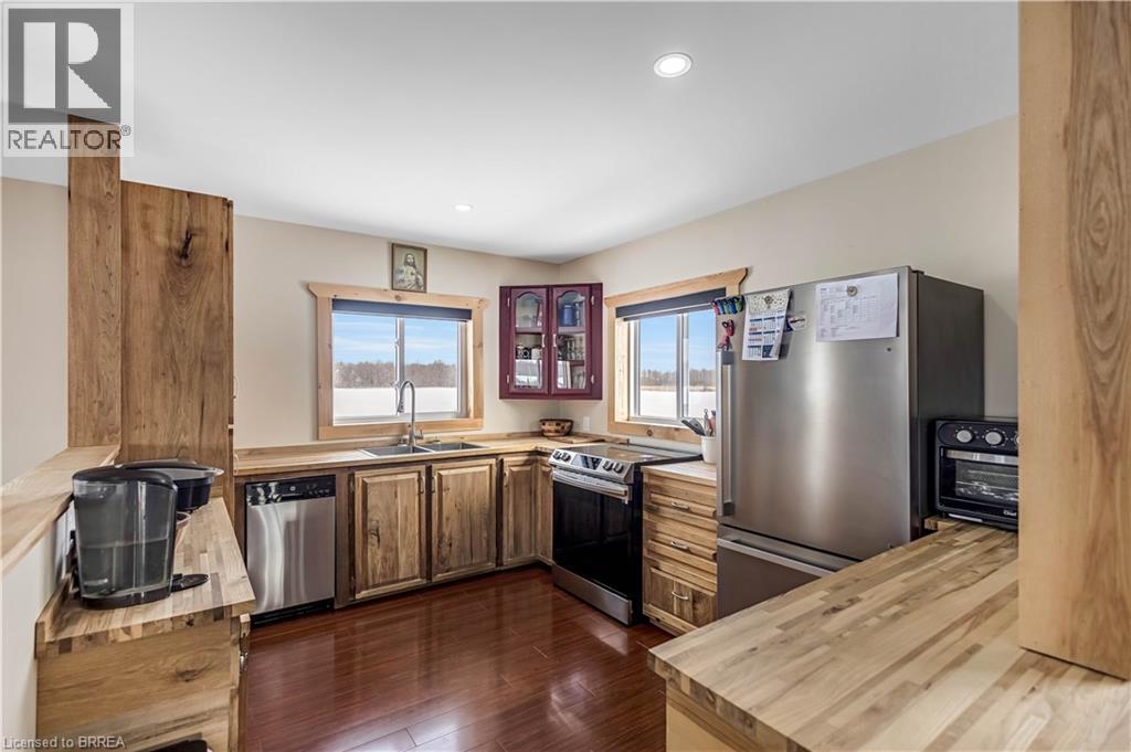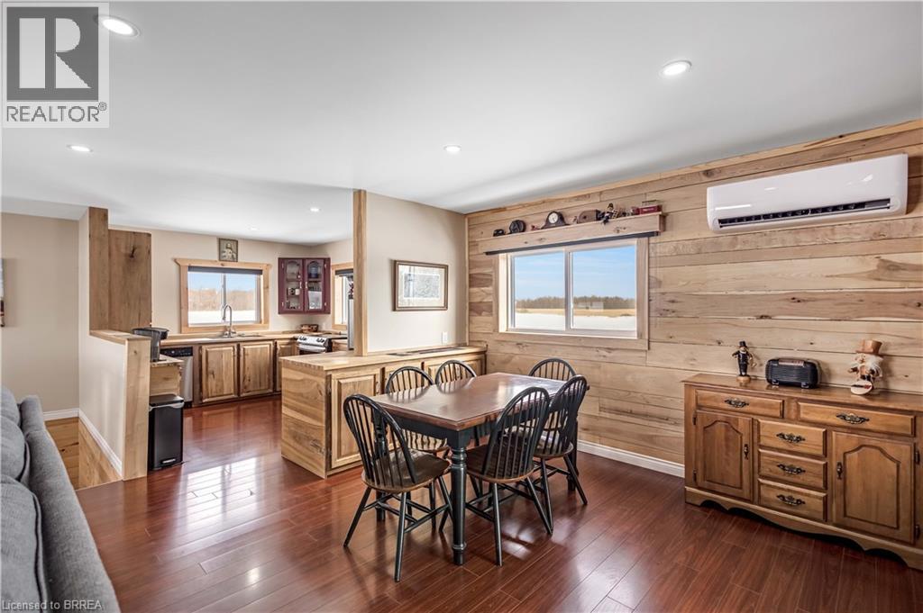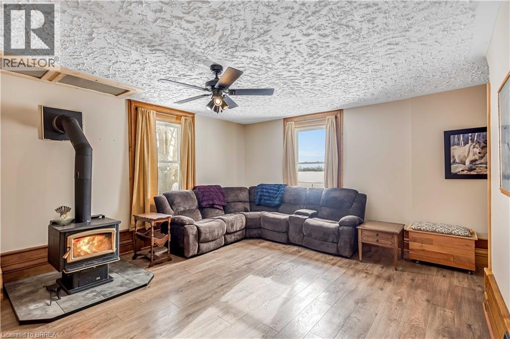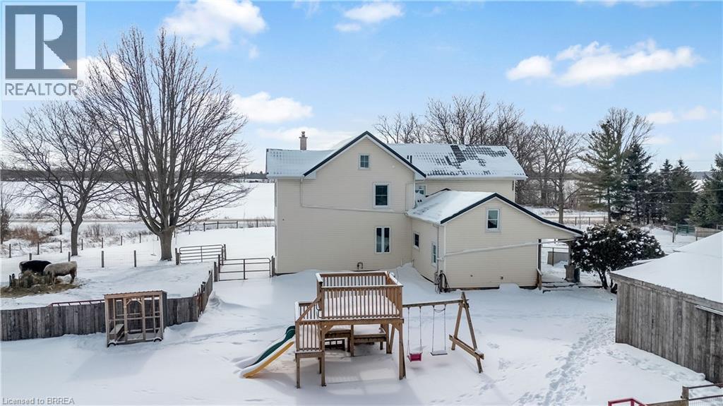 Welcome to this charming hobby farm in Townsend, offering the perfect blend of country serenity and modern comfort. This delightful two-storey home is full of character and features a newer oak kitchen, a welcoming family room with a cozy wood stove, and a convenient two-piece bathroom on the main level. Upstairs, you’ll find three generously sized bedrooms, a four-piece bathroom, and the added convenience of a second-floor laundry room. Outside, the property truly shines. A detached three-car garage and a heated shop with 200-amp service provide incredible versatility, while the fully finished second-floor apartment offers excellent in-law suite or income potential. All buildings are topped with newly installed metal roofs (2025), and the home also boasts a new air conditioning system installed in 2025 for peace of mind. Set on over an acre of land, the property includes a play structure, garden space, and stunning surrounding farmland views—an ideal setting to relax, unwind, and enjoy nature. Located just a short drive from local amenities yet far enough from the city to enjoy quiet rural living, this unique property offers space, flexibility, and lifestyle. Book your showing today and experience all this hobby farm has to offer. (70117415)