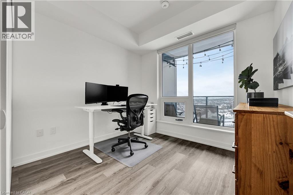 Welcome to Station Park, one of downtown Kitchener’s most sought-after addresses. This UPGRADED ($25,000 in upgrades) 2-bedroom, 2-bath corner suite includes one UNDERGROUND parking space and an OVERSIZED storage locker. Located on the 12th floor, the unit boasts sweeping city views and beautiful natural light throughout the day, with treetop sightlines and striking sunrise and sunset vistas. The thoughtfully designed kitchen features quartz countertops and an oversized island with seating—perfect for entertaining or casual dining—along with generous cabinetry and prep space.The open-concept living area is bright and inviting, framed by large windows. Retreat to the primary bedroom, where floor-to-ceiling windows wrap the space in light and views, complemented by a private ensuite with a sleek glass walk-in shower. The second bedroom, presently utilized as a home office, offers excellent versatility and can easily serve as a true bedroom, enhanced by a large window and abundant natural light. Completing the layout is a second full bathroom featuring a bathtub. Additional features include in-suite laundry, internet included in the condo fees, and a private balcony ideal for enjoying sunrise coffee or unwinding with a glass of wine at sunset. Station Park is known for its exceptional lifestyle amenities, including a fully equipped fitness centre, pool and hot tub, sauna, Peloton room, bowling alley, arcade, party room, outdoor workout areas, and dog wash station. Perfectly positioned just steps from Google, Communitech, KPMG, the Schools of Pharmacy and Medicine, the MedTech Hub, LRT, GO Train, and an array of shops, cafés, and restaurants—this is downtown living without compromise. (70117227)