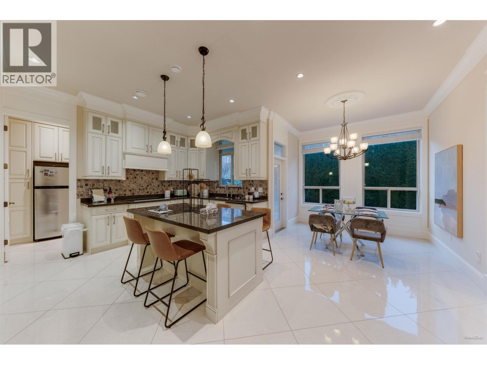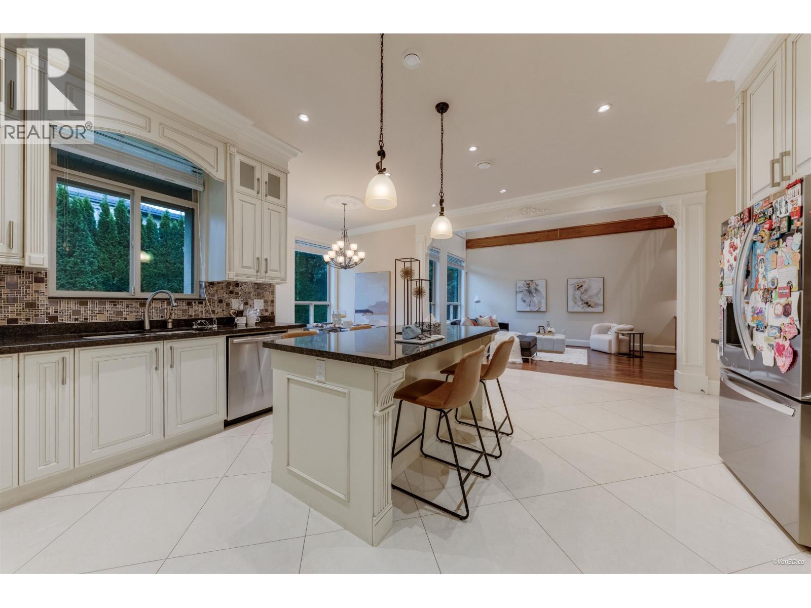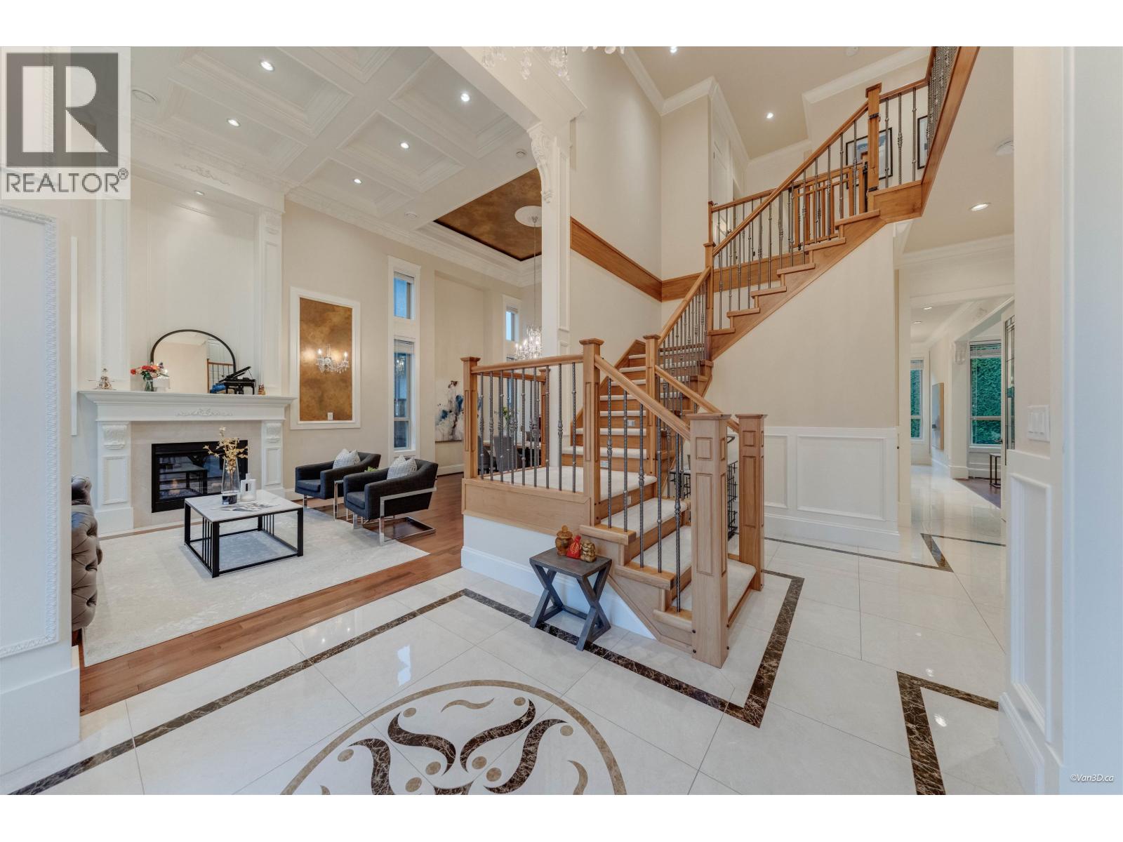 Beautifully crafted Neo-Classical mansion in prestigious West Richmond offering over 3,600 SF of elegant 2-level living with timeless architectural details. A grand marble foyer with soaring ceilings, ornate crown mouldings, coffered ceilings, and a crystal chandelier creates an impressive entrance. Sun-filled living and dining areas showcase classic European craftsmanship. This home features 5 bedroom and 65 bathrooms, including a luxurious primary suite with a jacuzzi tub and a walk-in close. Gourmet kitchen with granite countertops, maple cabinetry, high-end appliances, plus a separate wok kitchen. Additional features include radiant floor heating, air conditioning, HRV system, security and sprinkler systems, and a 3-car garage. School Catchment: McKay Elementary and Boyd Secondary. (32400716)