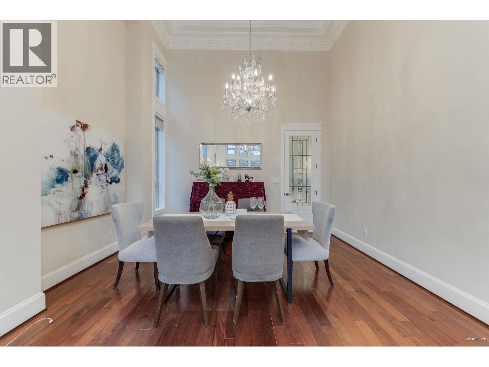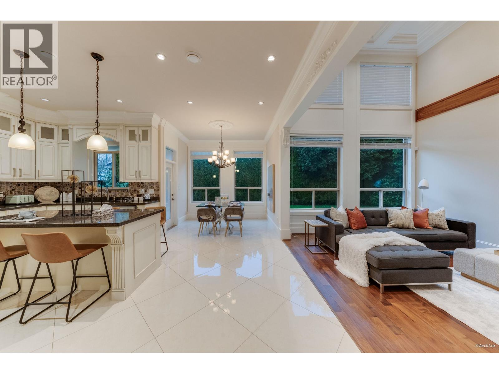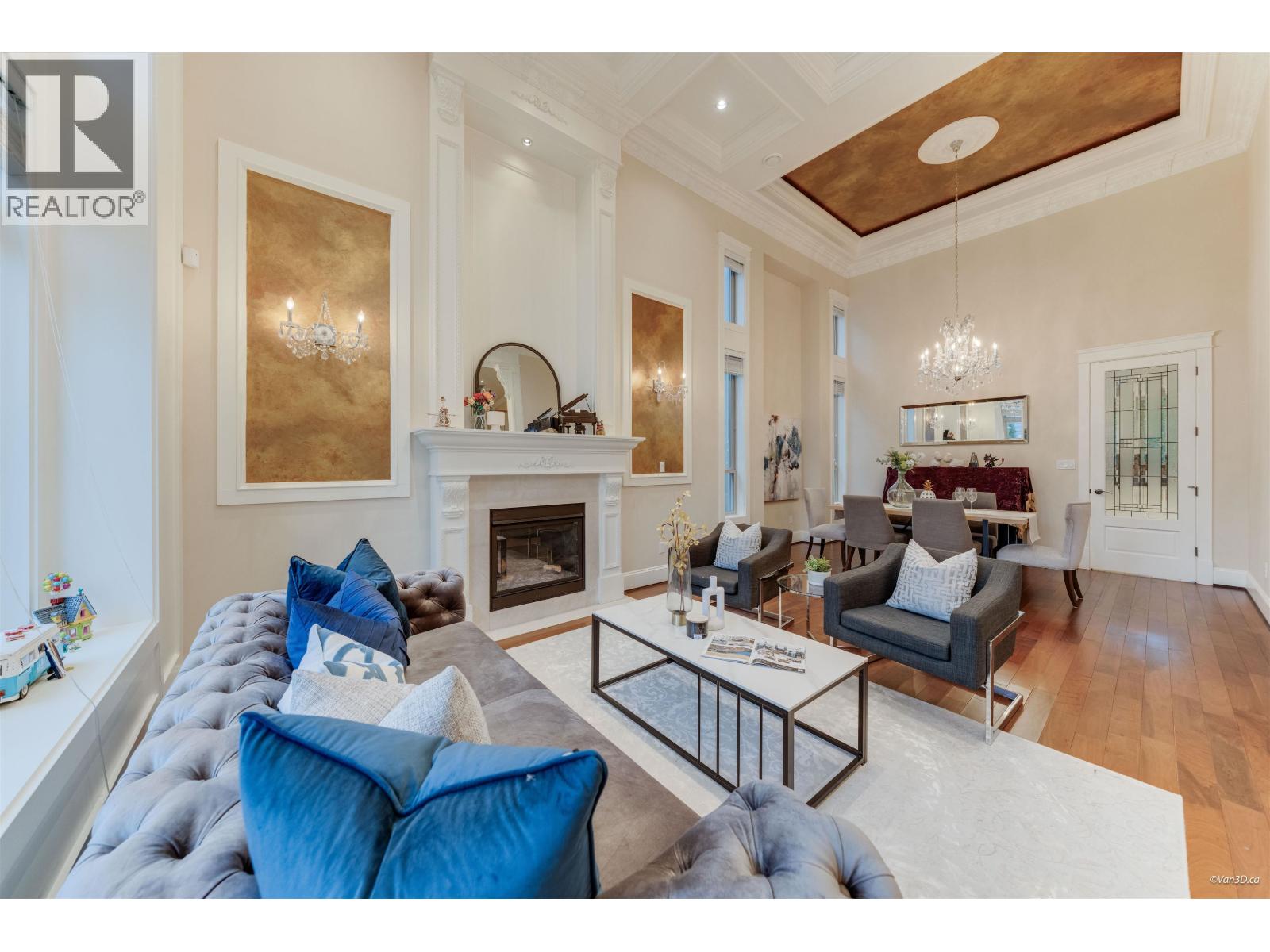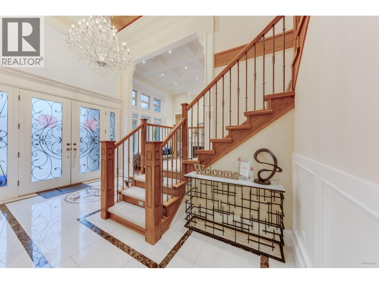 Beautifully crafted Neo-Classical mansion in prestigious West Richmond offering over 3,600 SF of elegant 2-level living with timeless architectural details. A grand marble foyer with soaring ceilings, ornate crown mouldings, coffered ceilings, and a crystal chandelier creates an impressive entrance. Sun-filled living and dining areas showcase classic European craftsmanship. This home features 5 bedroom and 65 bathrooms, including a luxurious primary suite with a jacuzzi tub and a walk-in close. Gourmet kitchen with granite countertops, maple cabinetry, high-end appliances, plus a separate wok kitchen. Additional features include radiant floor heating, air conditioning, HRV system, security and sprinkler systems, and a 3-car garage. School Catchment: McKay Elementary and Boyd Secondary. (32400716)