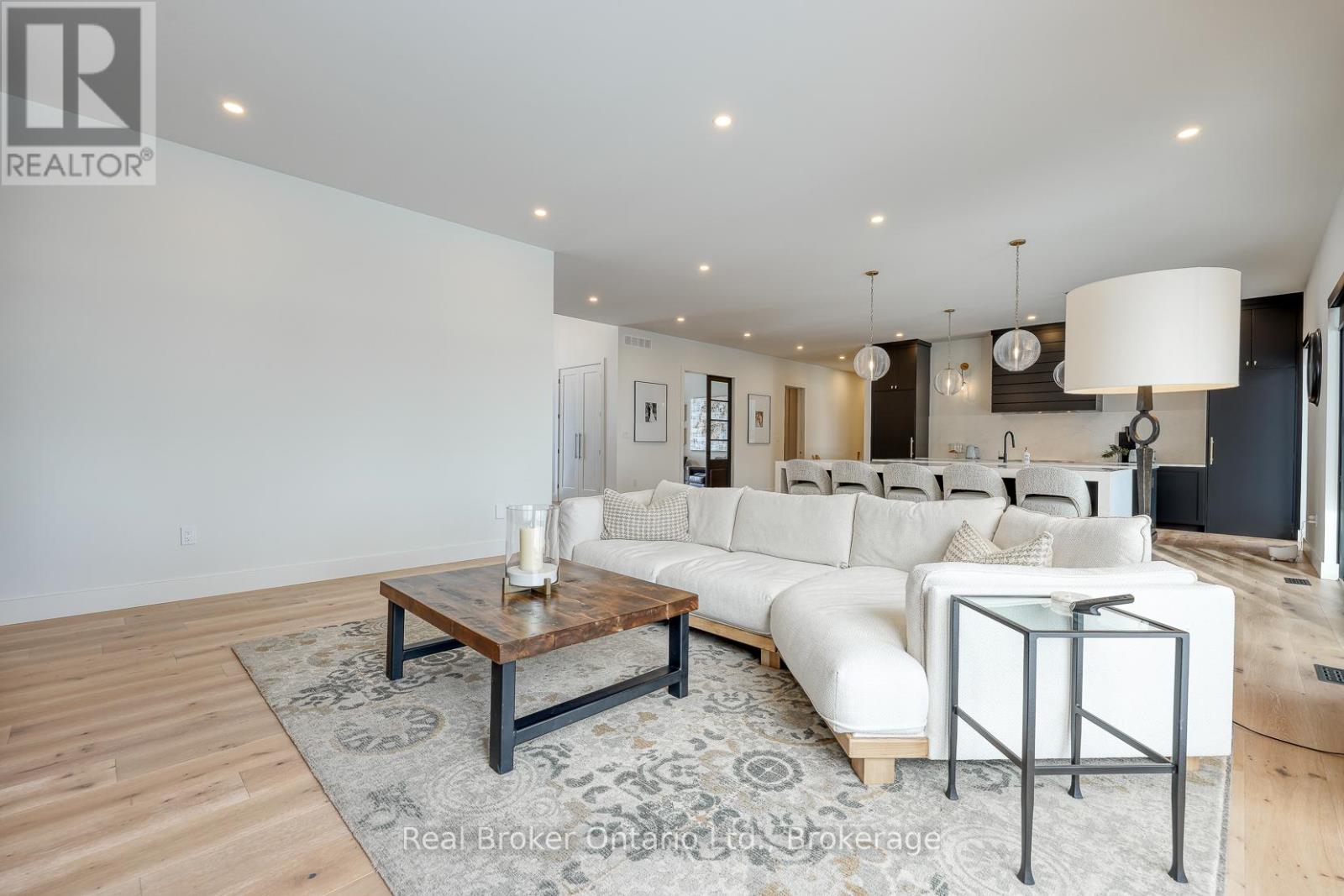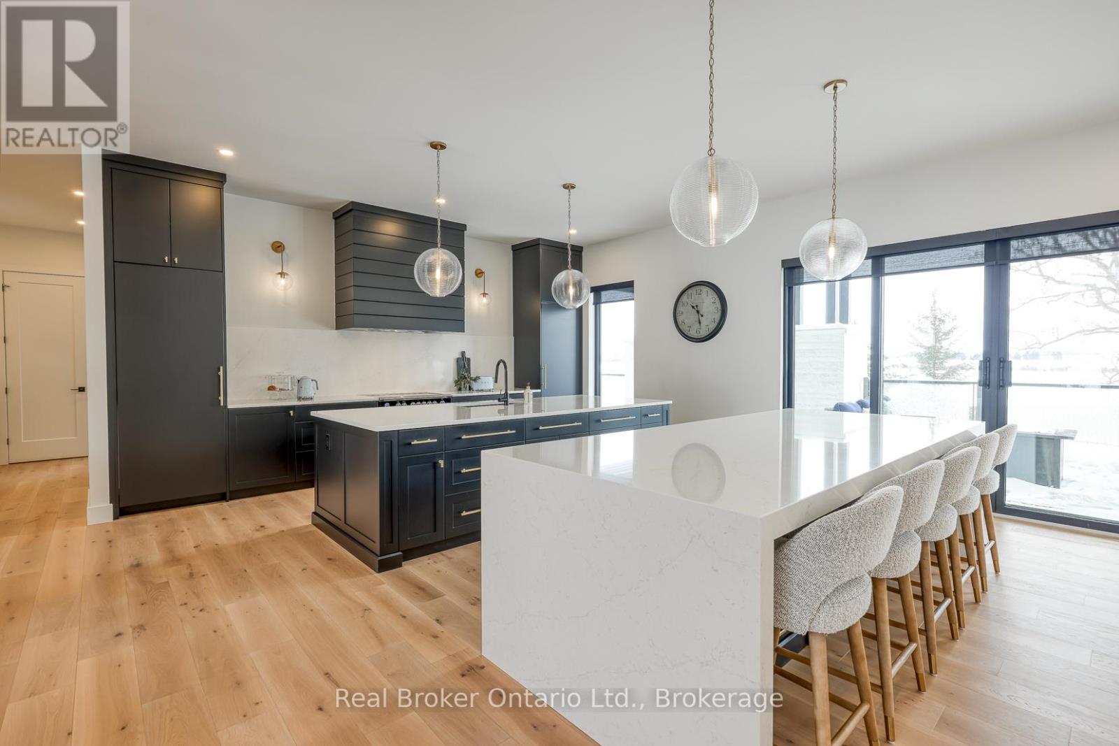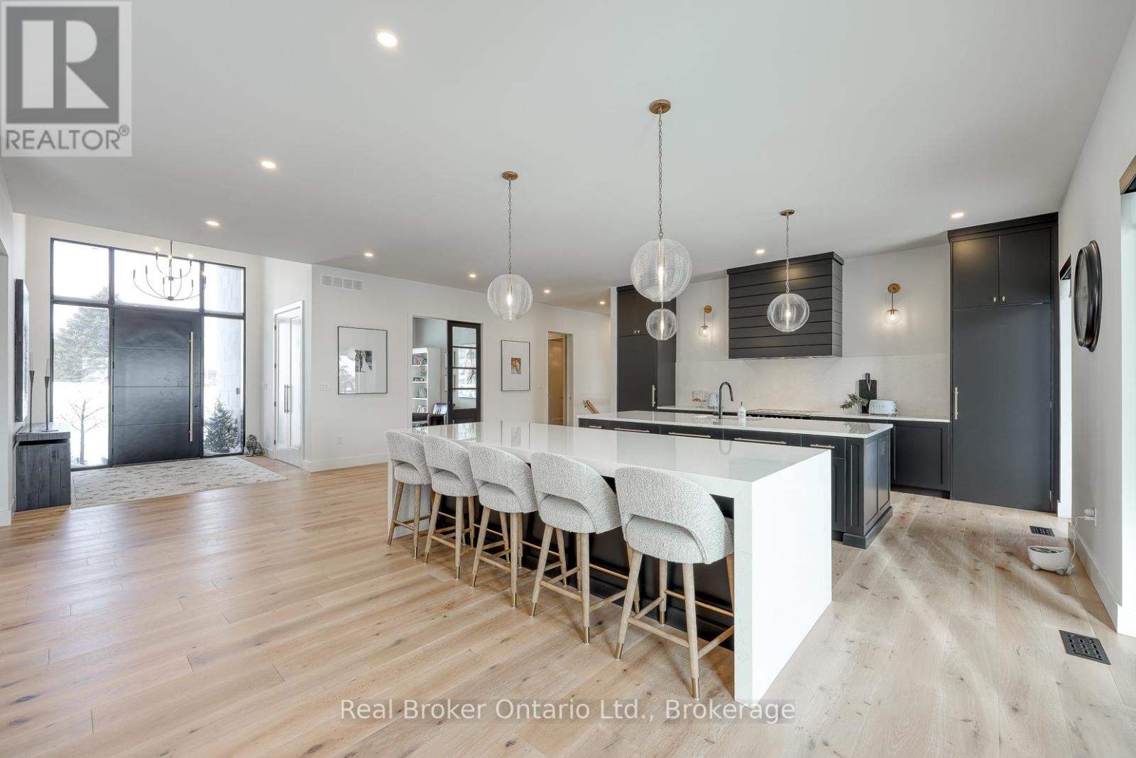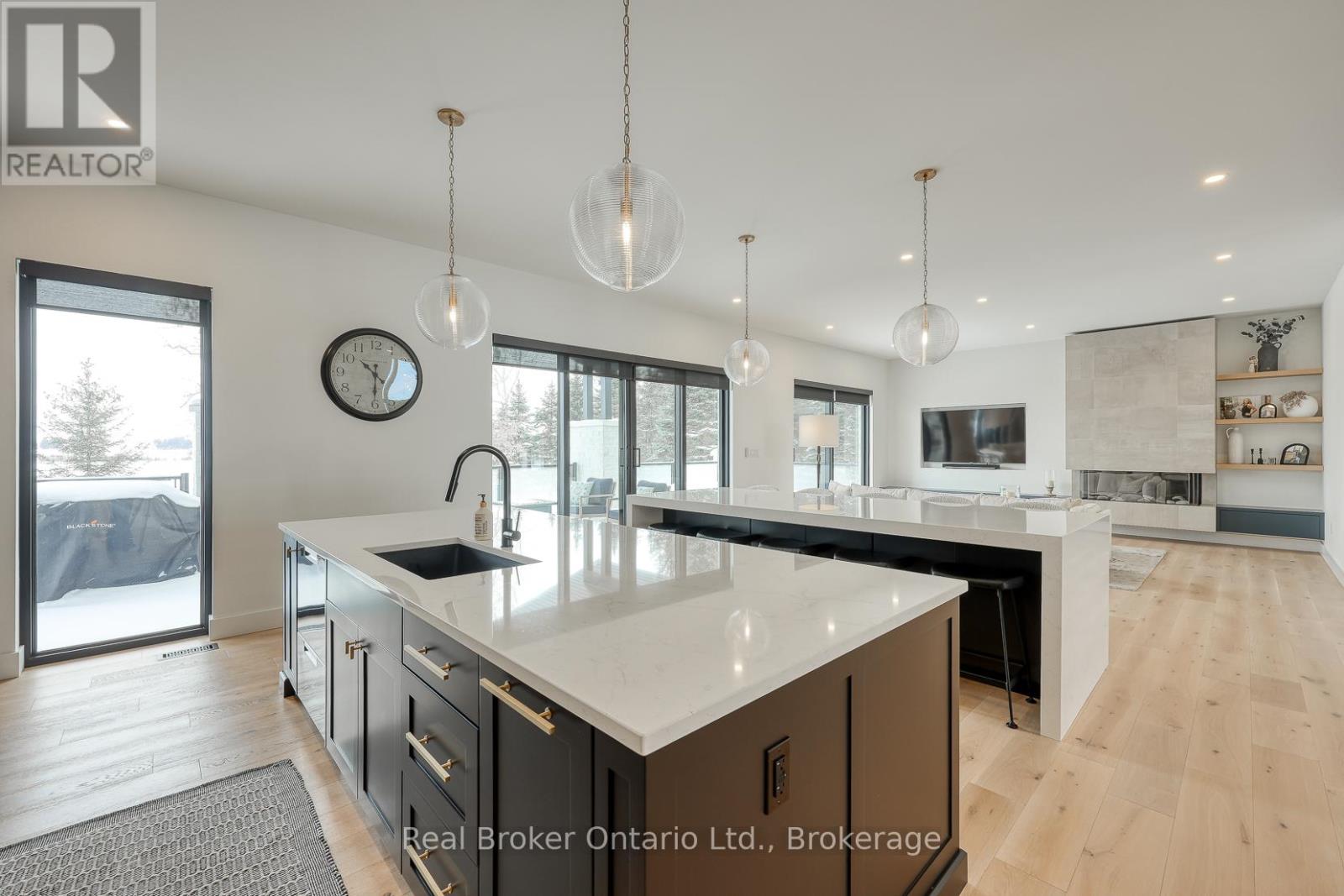 574246 Old School Line, Woodstock is a home of true distinction, built by Everest Estate Homes in 2023. Ideally located just 5 minutes from Highways 401 and 403, as well as major shopping and the hospital, this exceptional home offers luxury, convenience, and timeless design.Thoughtfully designed for modern yet highly functional living, this custom bungalow showcases exceptional craftsmanship and superior finishes throughout.The striking exterior features a blend of stone, brick, and stucco, complemented by a generous 67' x 14' deck, an oversized triple-car garage, and convenient basement walk-up access. Inside, the main floor offers an open-concept layout with 10-foot ceilings, oversized windows, and expansive sliding doors (12' and 9') that flood the home with natural light. Wide 7.5" white oak engineered hardwood flooring runs throughout, enhancing the home's contemporary elegance.The custom chef's kitchen is designed to impress, featuring two 10-foot islands, premium Fisher & Paykel appliances, quartz countertops, and a cleverly concealed walk-in pantry. The living room is anchored by a stunning floating three-sided Urbana tiled fireplace with built-in storage.The primary suite offers private access to the rear deck, a walk-through custom closet, and a luxurious spa-inspired ensuite. The fully finished lower level is ideal for extended family or an in-law suite complete with a full kitchen, dining area, living room, two bedrooms, two bathrooms, laundry, gym and both walk-out and walk-up access! (42066093)