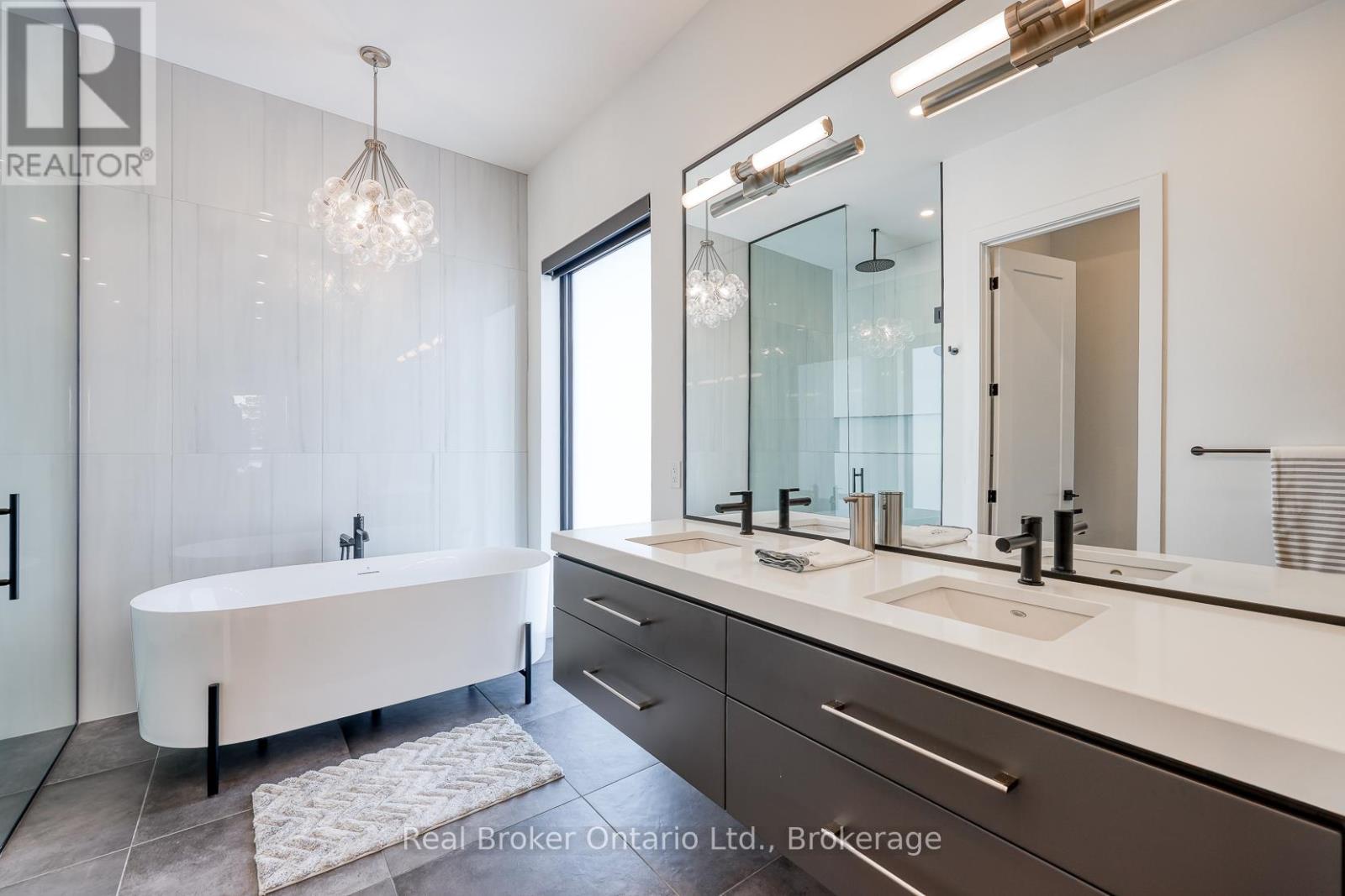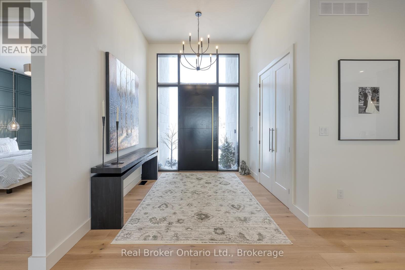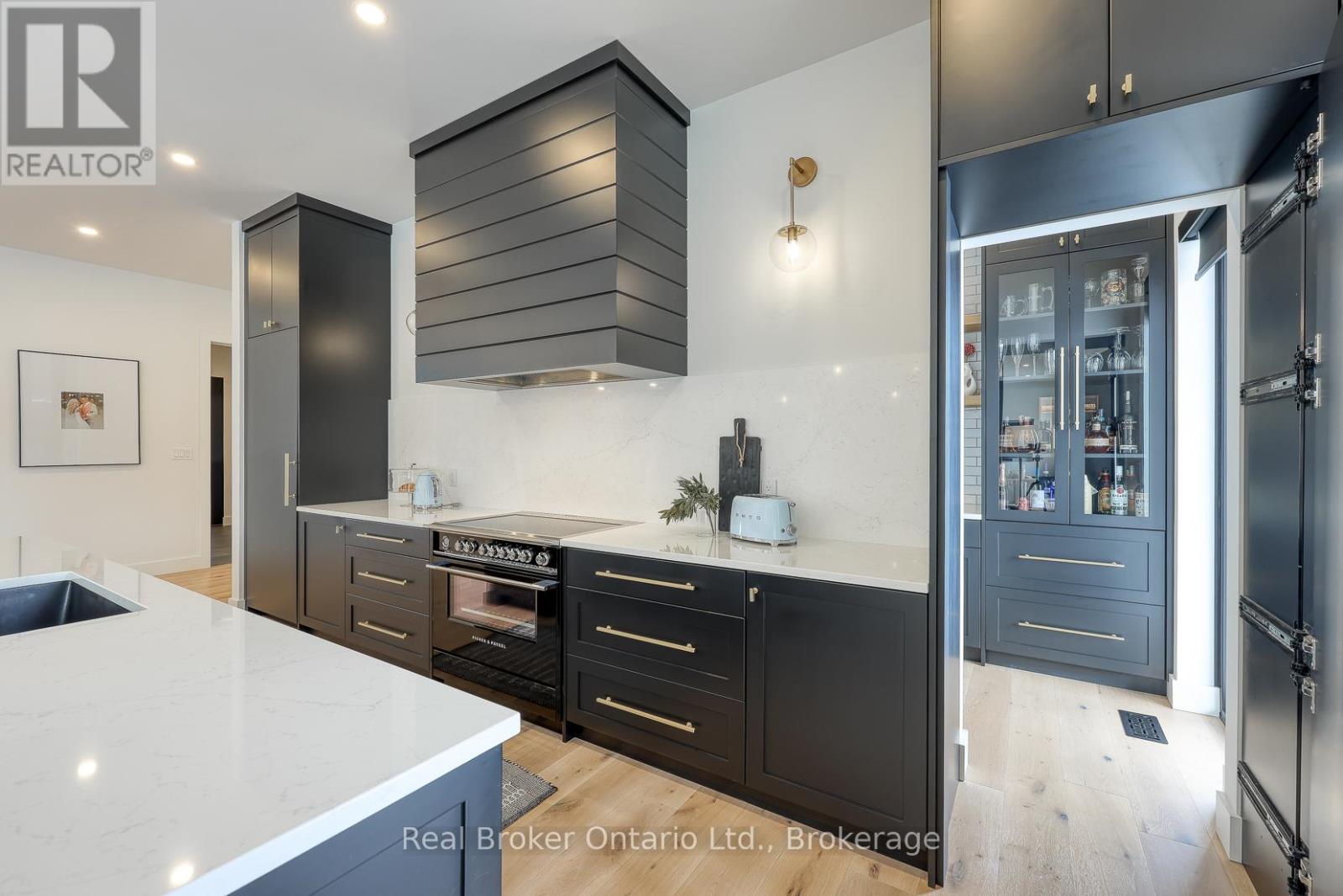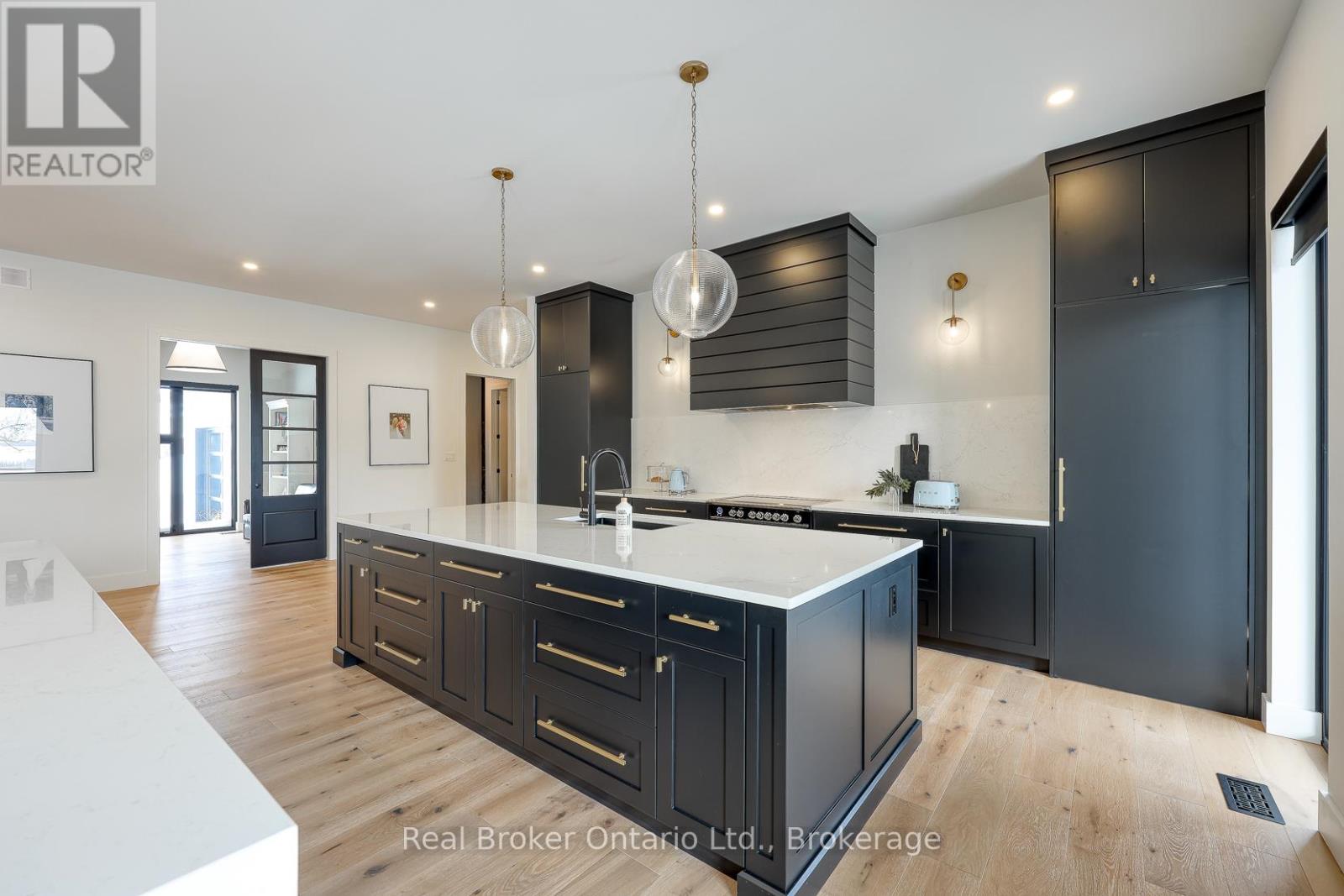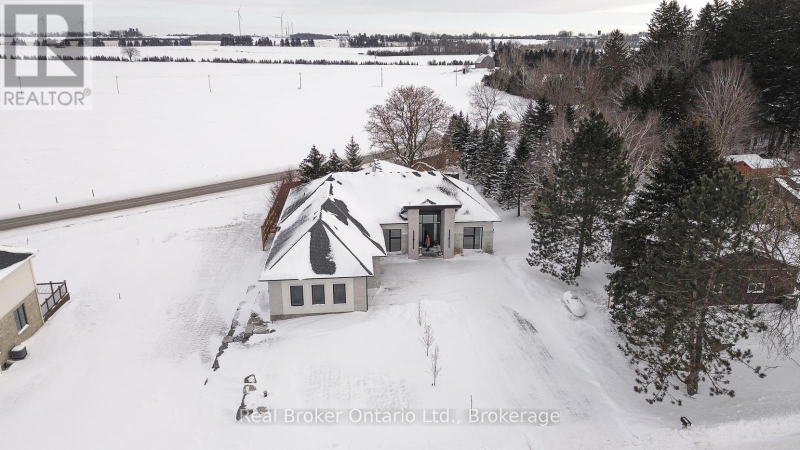 574246 Old School Line, Woodstock is a home of true distinction, built by Everest Estate Homes in 2023. Ideally located just 5 minutes from Highways 401 and 403, as well as major shopping and the hospital, this exceptional home offers luxury, convenience, and timeless design.Thoughtfully designed for modern yet highly functional living, this custom bungalow showcases exceptional craftsmanship and superior finishes throughout.The striking exterior features a blend of stone, brick, and stucco, complemented by a generous 67' x 14' deck, an oversized triple-car garage, and convenient basement walk-up access. Inside, the main floor offers an open-concept layout with 10-foot ceilings, oversized windows, and expansive sliding doors (12' and 9') that flood the home with natural light. Wide 7.5" white oak engineered hardwood flooring runs throughout, enhancing the home's contemporary elegance.The custom chef's kitchen is designed to impress, featuring two 10-foot islands, premium Fisher & Paykel appliances, quartz countertops, and a cleverly concealed walk-in pantry. The living room is anchored by a stunning floating three-sided Urbana tiled fireplace with built-in storage.The primary suite offers private access to the rear deck, a walk-through custom closet, and a luxurious spa-inspired ensuite. The fully finished lower level is ideal for extended family or an in-law suite complete with a full kitchen, dining area, living room, two bedrooms, two bathrooms, laundry, gym and both walk-out and walk-up access! (42066093)