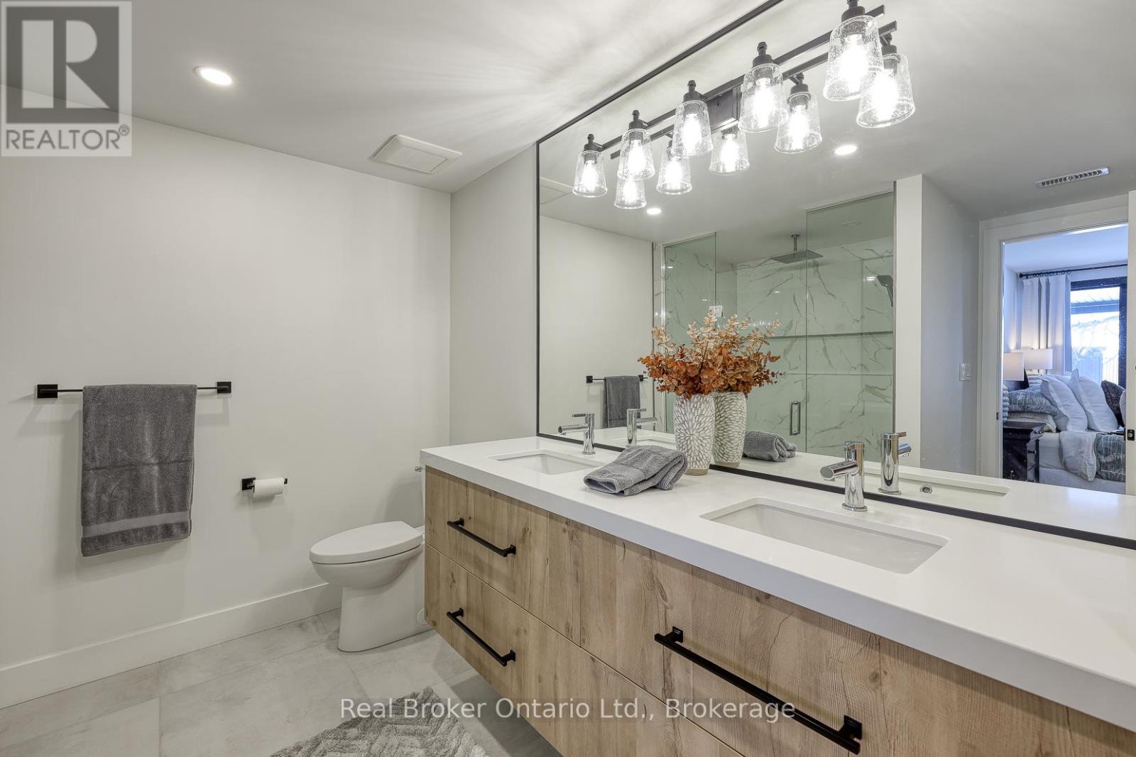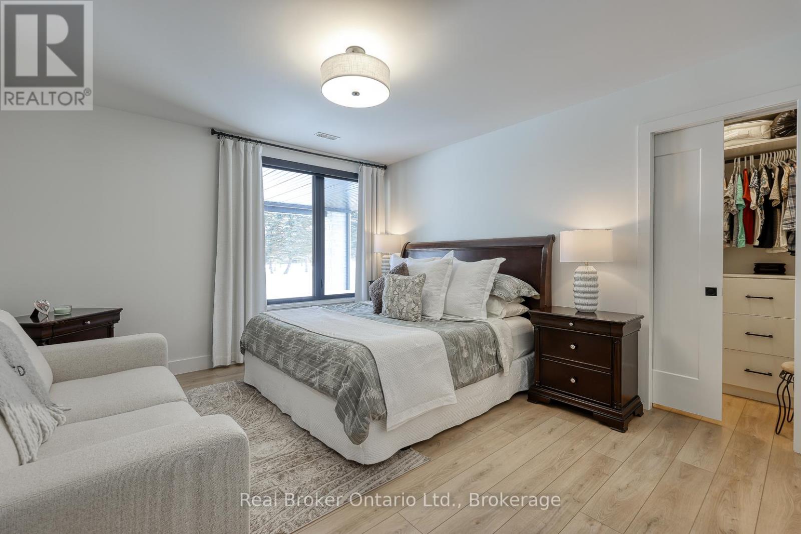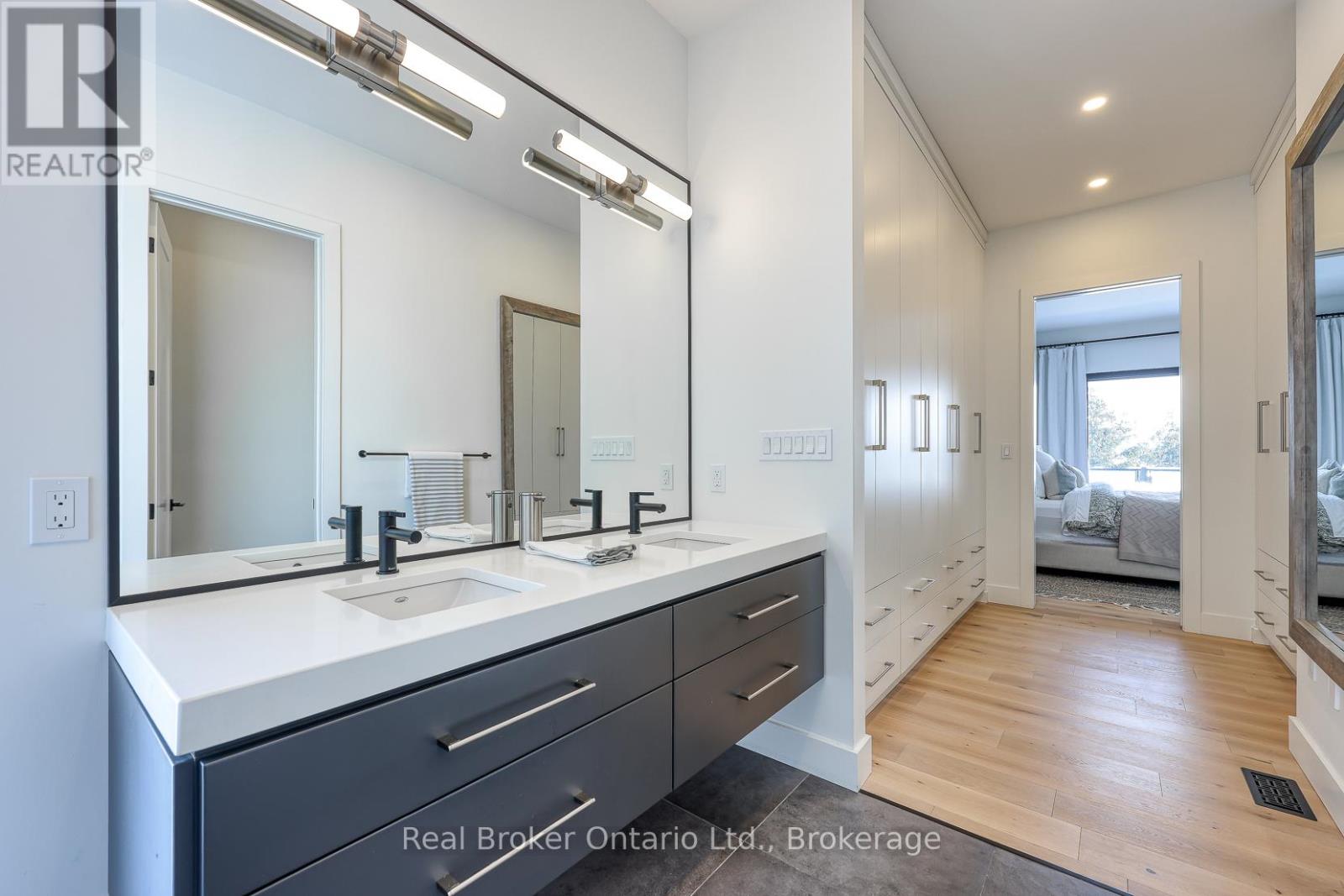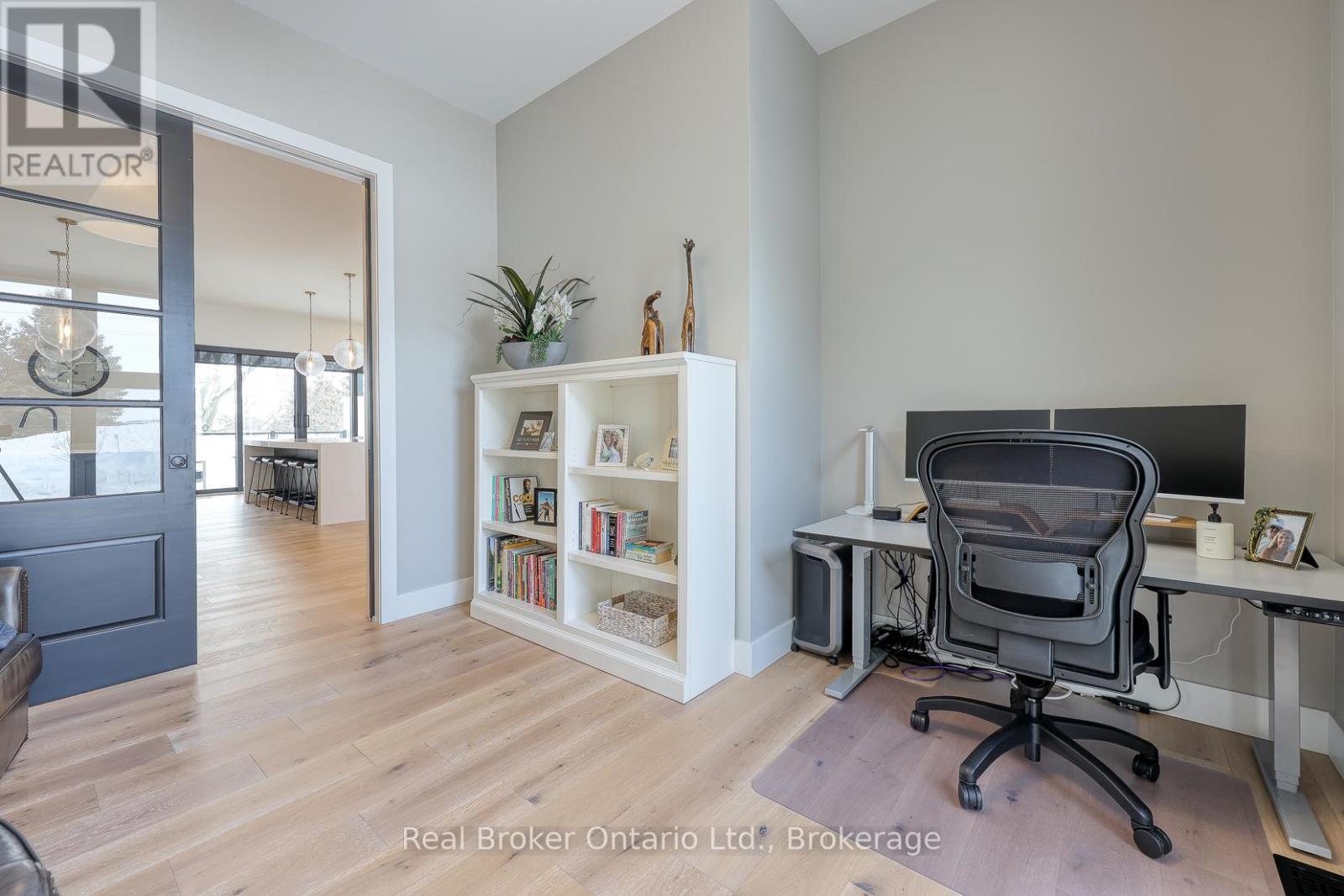 574246 Old School Line, Woodstock is a home of true distinction, built by Everest Estate Homes in 2023. Ideally located just 5 minutes from Highways 401 and 403, as well as major shopping and the hospital, this exceptional home offers luxury, convenience, and timeless design.Thoughtfully designed for modern yet highly functional living, this custom bungalow showcases exceptional craftsmanship and superior finishes throughout.The striking exterior features a blend of stone, brick, and stucco, complemented by a generous 67' x 14' deck, an oversized triple-car garage, and convenient basement walk-up access. Inside, the main floor offers an open-concept layout with 10-foot ceilings, oversized windows, and expansive sliding doors (12' and 9') that flood the home with natural light. Wide 7.5" white oak engineered hardwood flooring runs throughout, enhancing the home's contemporary elegance.The custom chef's kitchen is designed to impress, featuring two 10-foot islands, premium Fisher & Paykel appliances, quartz countertops, and a cleverly concealed walk-in pantry. The living room is anchored by a stunning floating three-sided Urbana tiled fireplace with built-in storage.The primary suite offers private access to the rear deck, a walk-through custom closet, and a luxurious spa-inspired ensuite. The fully finished lower level is ideal for extended family or an in-law suite complete with a full kitchen, dining area, living room, two bedrooms, two bathrooms, laundry, gym and both walk-out and walk-up access! (42066093)