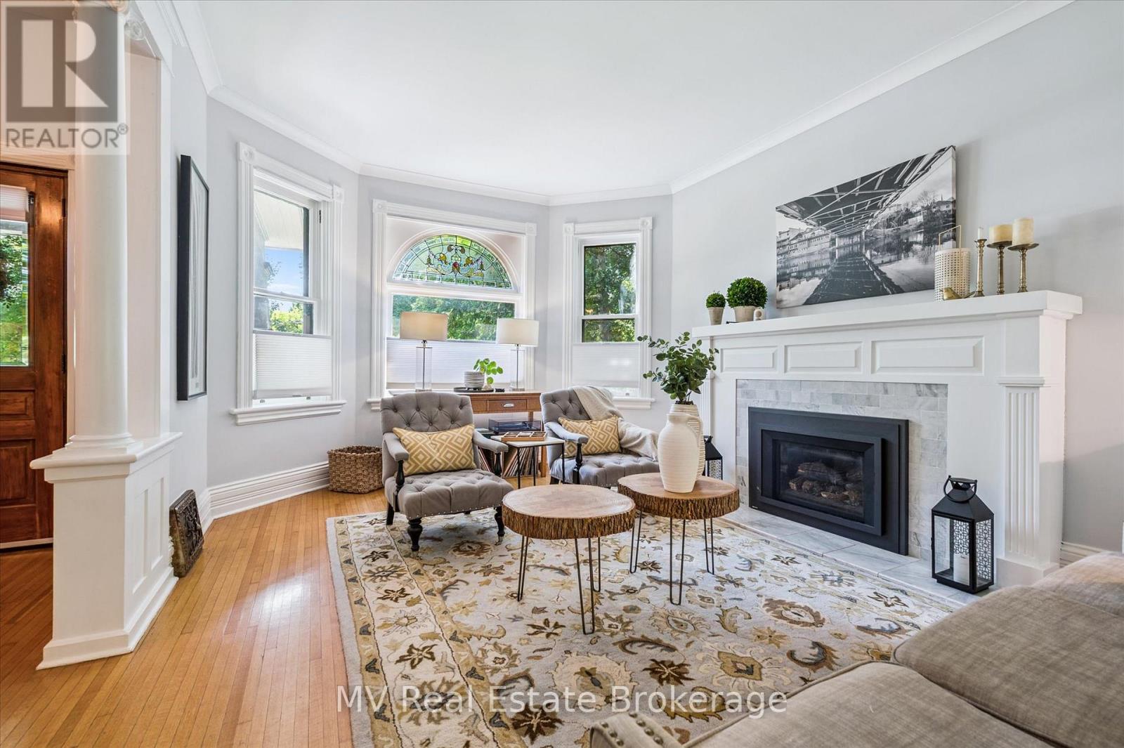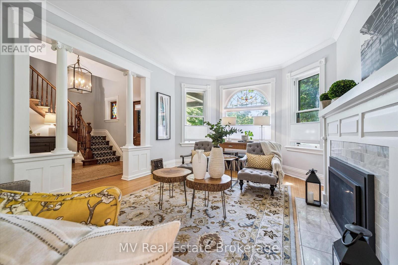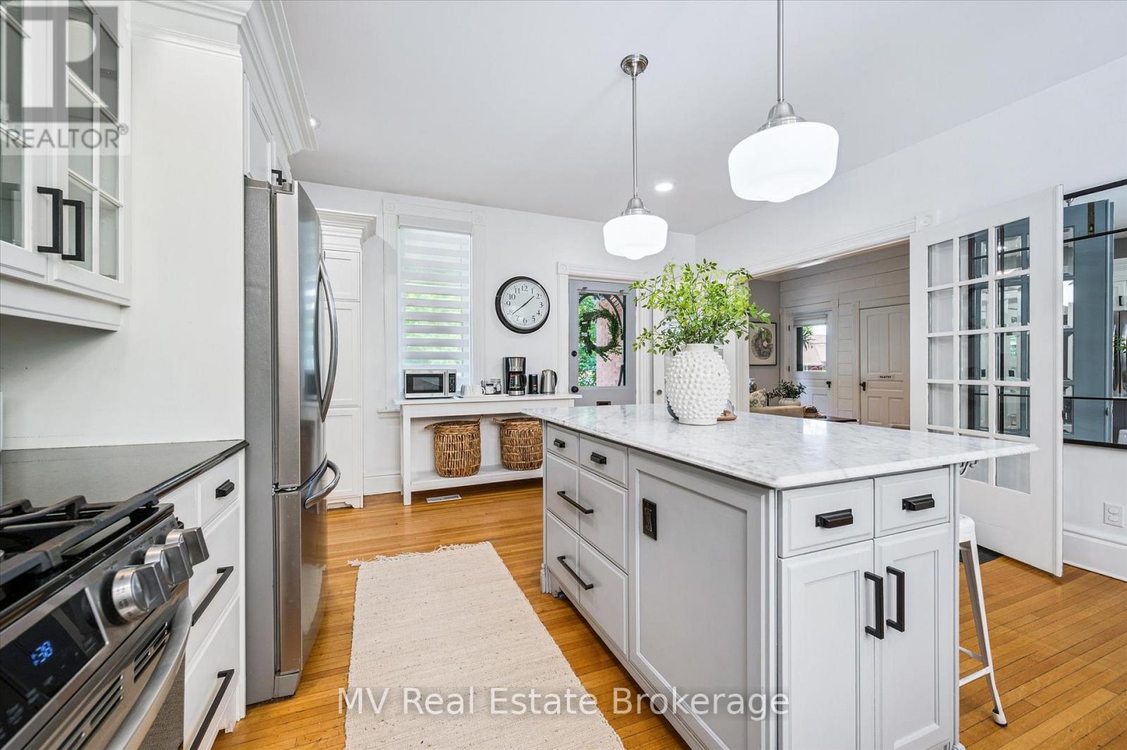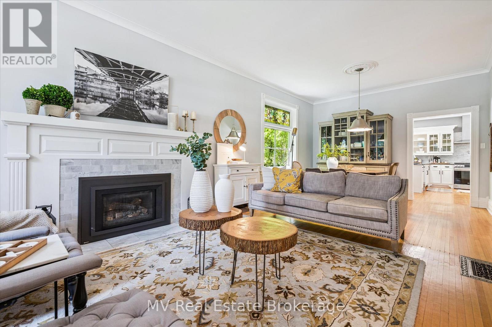 Escape to Elora and discover one of the village's most iconic homes. Built by the town's original mill owner around 1900, this nearly 3,500 sq ft heritage home blends timeless character with modern comfort - just steps from Downtown. With soaring ceilings, oversized principal rooms, and large windows, this home is flooded with natural light and an incredible sense of space. Solid hardwood floors, stained glass accents, and beautiful pocket doors highlight the craftsmanship of a bygone era, thoughtfully preserved throughout. The renovated kitchen features stone counters, premium finishes, and a generous island that flows effortlessly into both the formal and informal living areas. Upstairs, the timeless and luxurious primary suite offers a true retreat, complete with a stunning ensuite bathroom and a massive walk-in closet/dressing room. Two additional generous bedrooms offer comfort and privacy and as an added bonus - a third story loft adds even more space for guests, work, or play. Outside, imagine yourself enjoying a cup of tea on the wraparound front porch, perfect for peaceful mornings and neighbourly chats. The pool-sized backyard is beautifully landscaped with mature trees (one with a swing!), hardscaping, firepit, two decks, and a hot tub for year-round enjoyment. Deep historical roots, unbeatable curb appeal, and a walkable location just beyond the tourist path, this is a rare opportunity to own a piece of Elora's living history. (42066122)