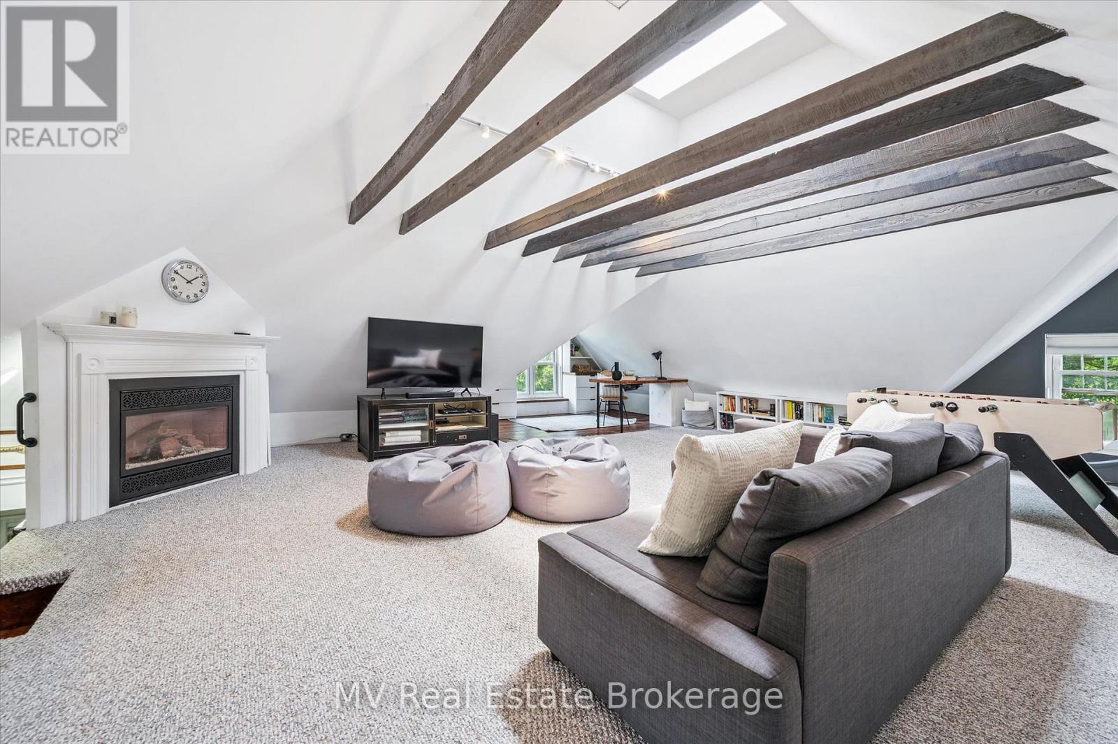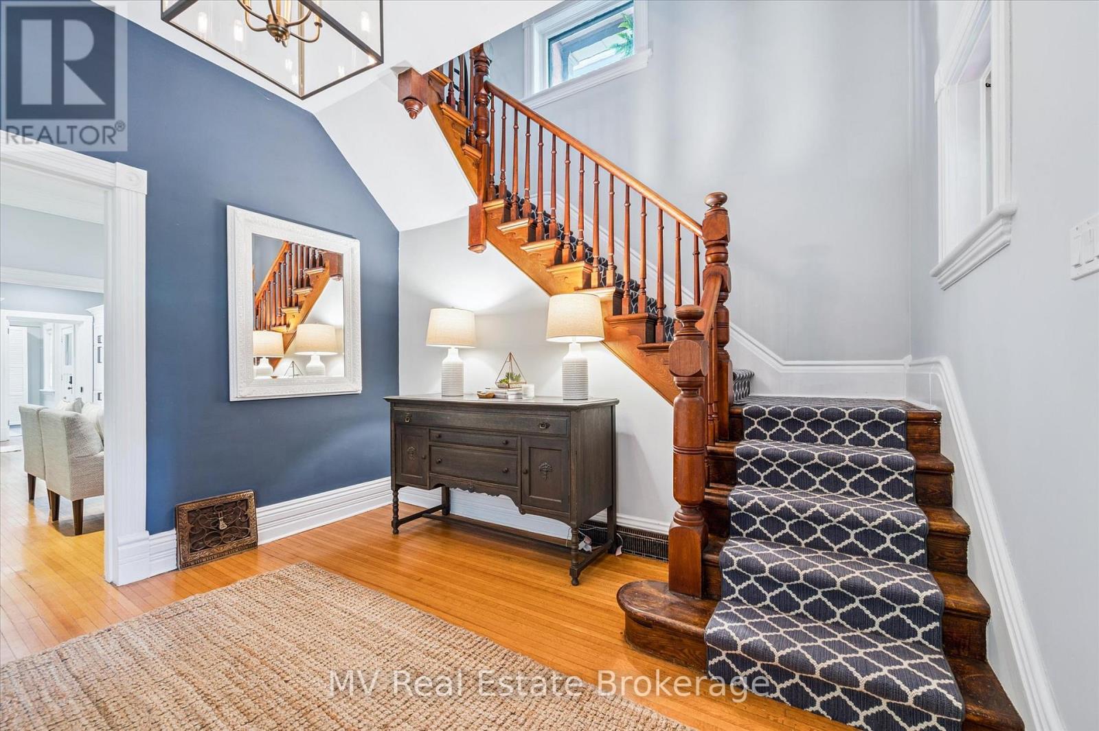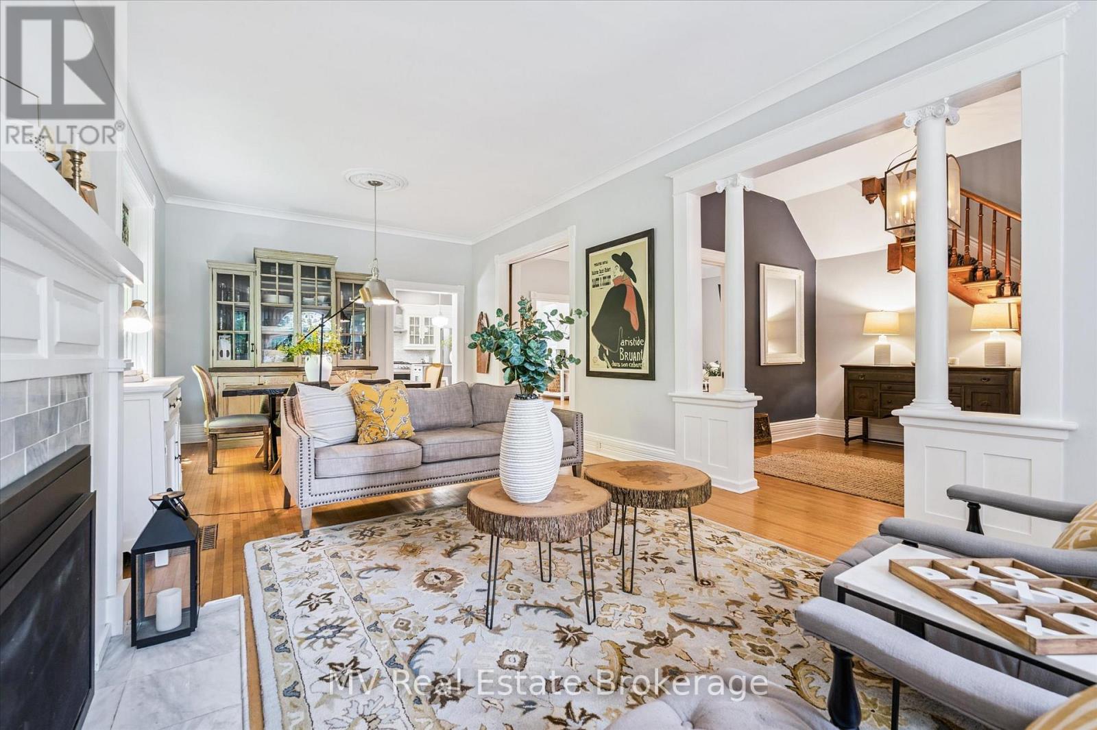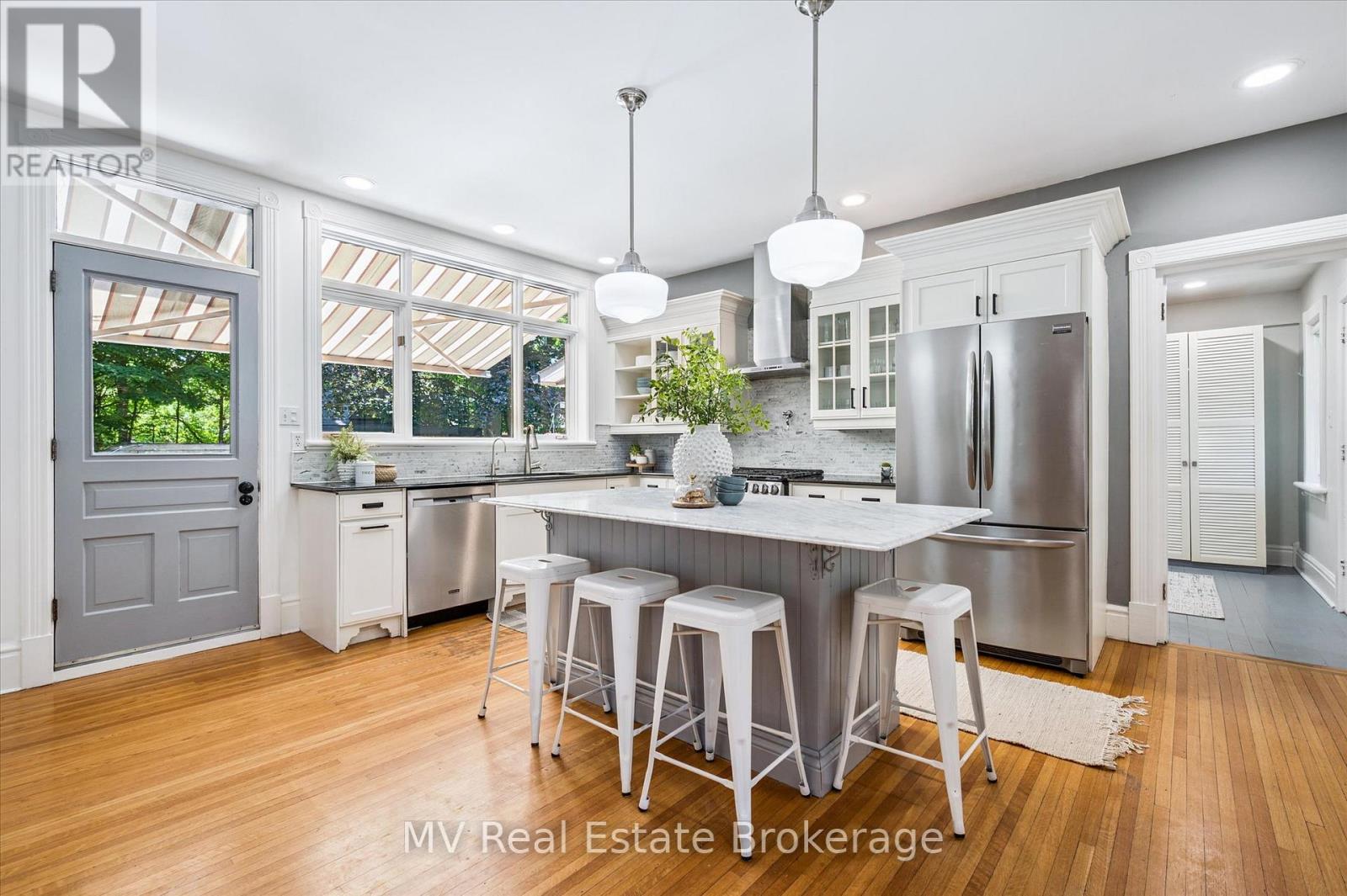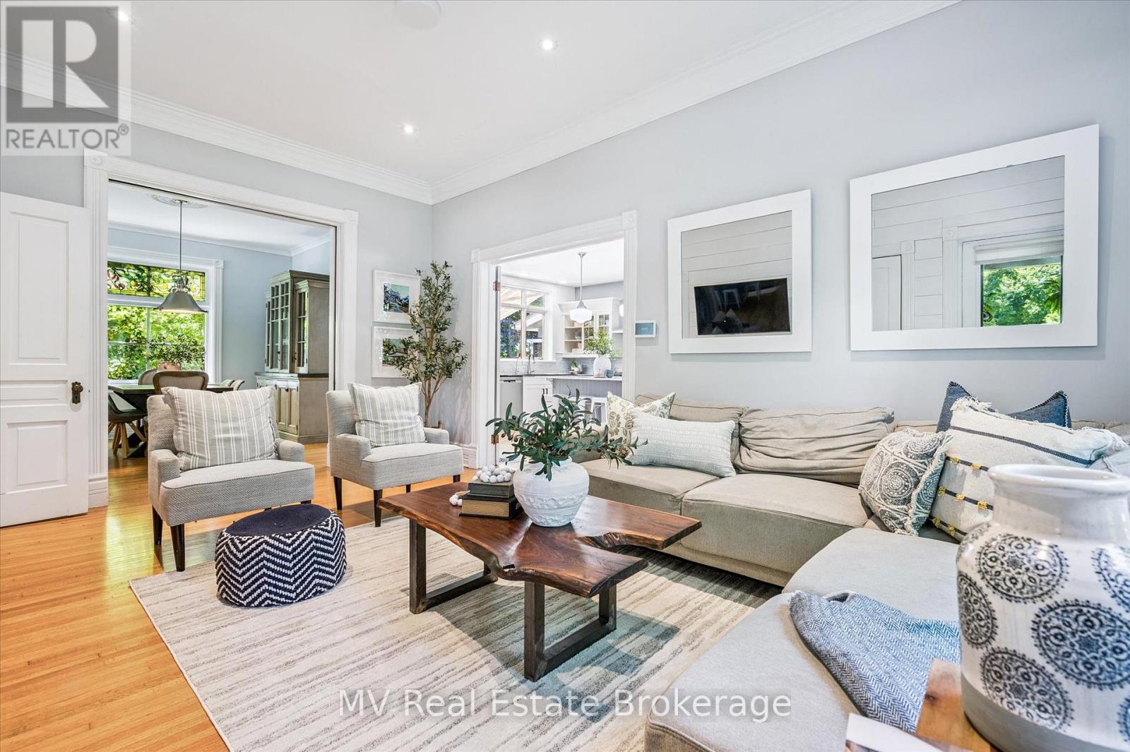 Escape to Elora and discover one of the village's most iconic homes. Built by the town's original mill owner around 1900, this nearly 3,500 sq ft heritage home blends timeless character with modern comfort - just steps from Downtown. With soaring ceilings, oversized principal rooms, and large windows, this home is flooded with natural light and an incredible sense of space. Solid hardwood floors, stained glass accents, and beautiful pocket doors highlight the craftsmanship of a bygone era, thoughtfully preserved throughout. The renovated kitchen features stone counters, premium finishes, and a generous island that flows effortlessly into both the formal and informal living areas. Upstairs, the timeless and luxurious primary suite offers a true retreat, complete with a stunning ensuite bathroom and a massive walk-in closet/dressing room. Two additional generous bedrooms offer comfort and privacy and as an added bonus - a third story loft adds even more space for guests, work, or play. Outside, imagine yourself enjoying a cup of tea on the wraparound front porch, perfect for peaceful mornings and neighbourly chats. The pool-sized backyard is beautifully landscaped with mature trees (one with a swing!), hardscaping, firepit, two decks, and a hot tub for year-round enjoyment. Deep historical roots, unbeatable curb appeal, and a walkable location just beyond the tourist path, this is a rare opportunity to own a piece of Elora's living history. (42066122)