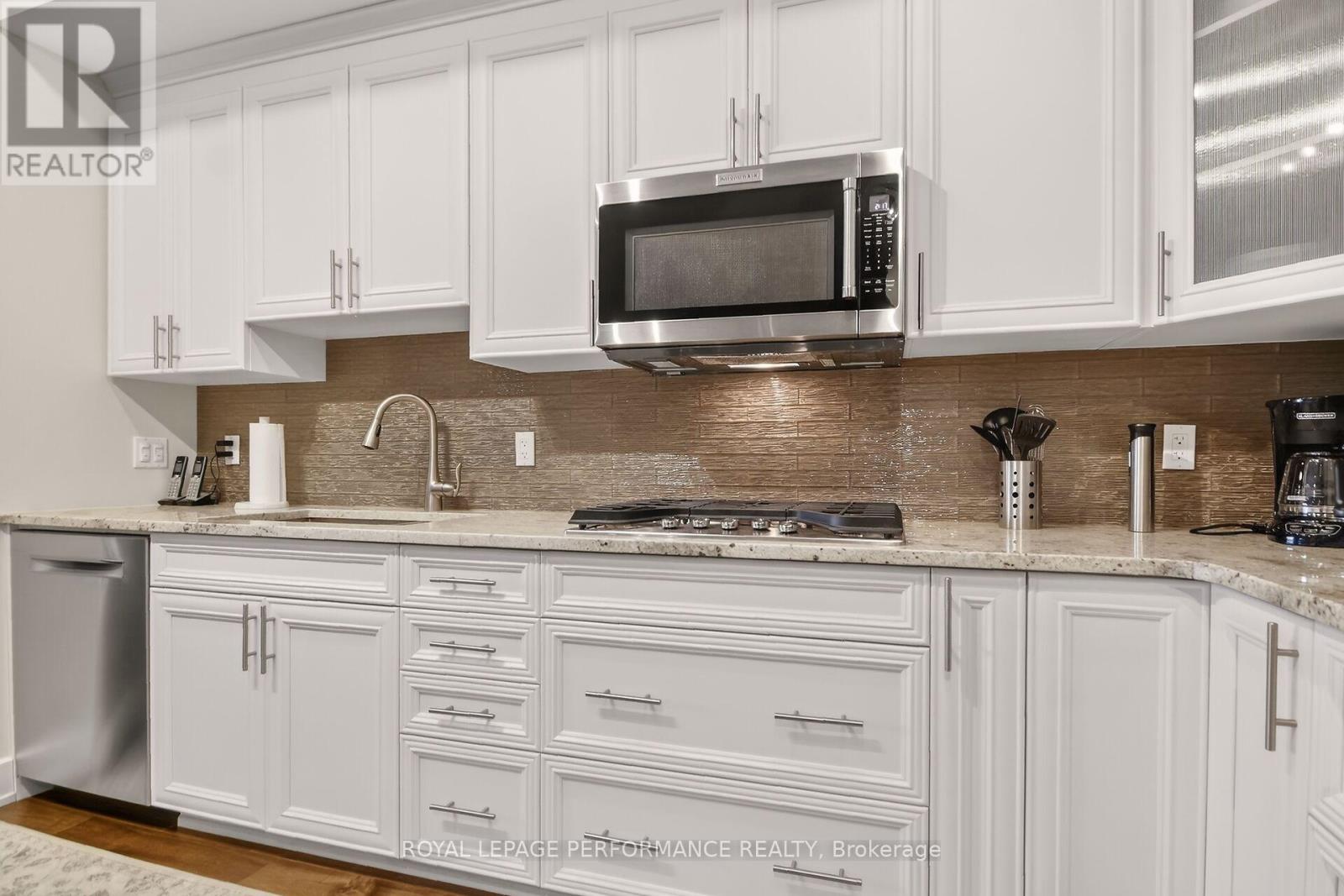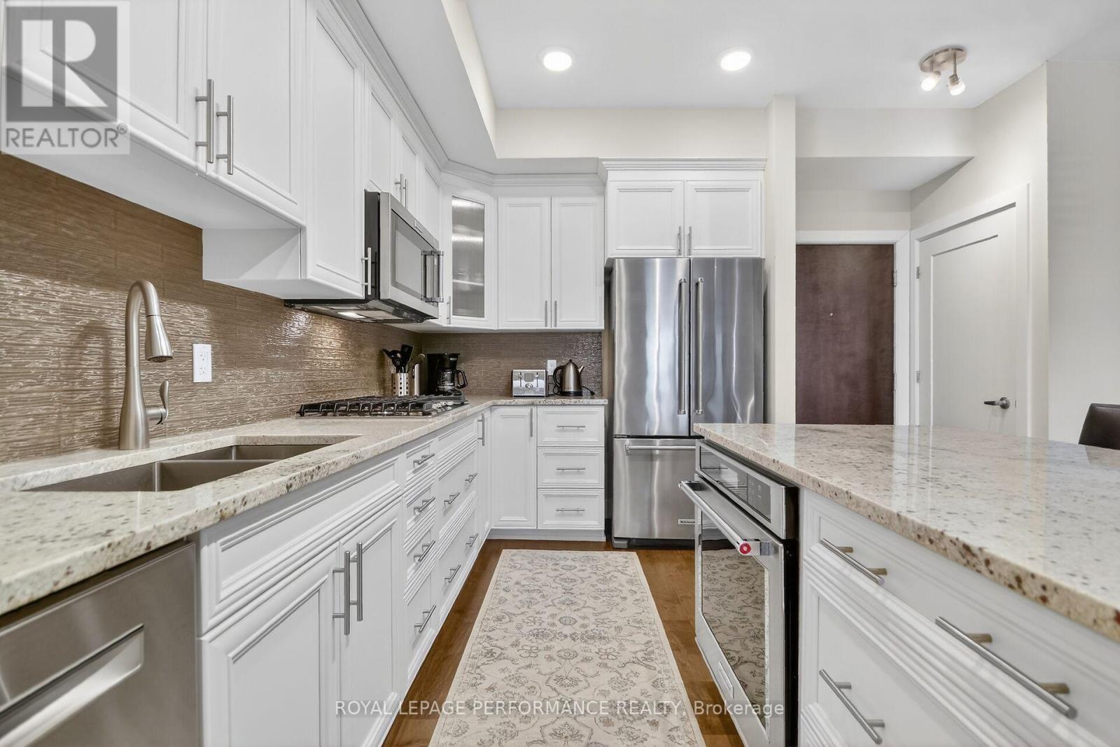 Beyond well kept, immaculate 2 bedroom, 2 full bathroom penthouse apartment with unobstructed east view overlooking Ken Ross Park from the balcony and bedrooms. This apartment offers nine foot ceilings and has been totally upgraded with quiality finishings throughout. Upgraded kitchen and bathroom cabinets, custom ensuite double shower. All wood flooring and doors have been upgraded. Ceramic floor in both bathrooms. Higher quality stainless steel applinances featuring under granite top built in oven, and gas cook top elements. Built in microwave oven. Custom window coverings along with upgraded light fixtures throughout. The spacious balcony off of the living room features a custom power balcony sunshine screen, with durable flooring. A gas hook up BBQ is also included. Bright, open concept layout features a breakfast bar sitting area, custom kitchen with granite counter tops with lots of counter space and twelve storage drawers, complete with glass ceramic backsplash. Large dining room is where the laundry and utility closets are located. The spacious, bright living room includes the wall mounted electric fireplace and TV. Large sliding door access the balcony east views of the park. From the hallway, access the second full bathroom and spacious bedroom/office offering a large double closet, includes the TV, and offers a secondary access to the balcony. The large primary bedroom offer a spacious walk through closet to the ensuite bathroom with custom double shower stall. The apartment incluses one, underground indoor parking spot, plus an outdoor surface parking spot. A storage locker is includes in the basement parking area accessed off of the elevator area. You will not be disappointed with this upgraded top floor apartment with the many custom features. Within a 10 minute drive you have access to all the Barrhaven shopping/professional services amenities, restaurants etc. Walk to parks and transit. Don't miss this one of a kind unique apartment. (42066321)