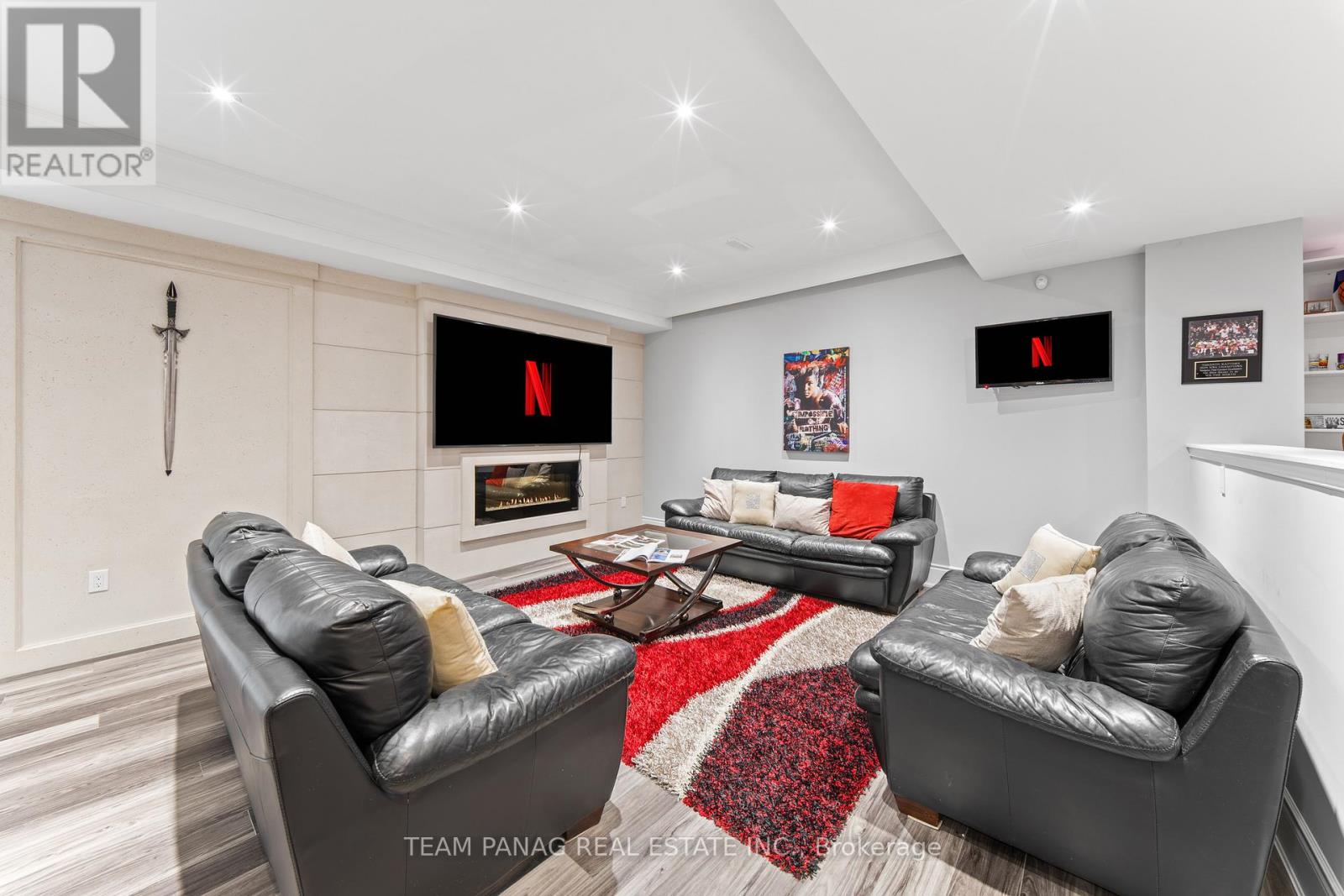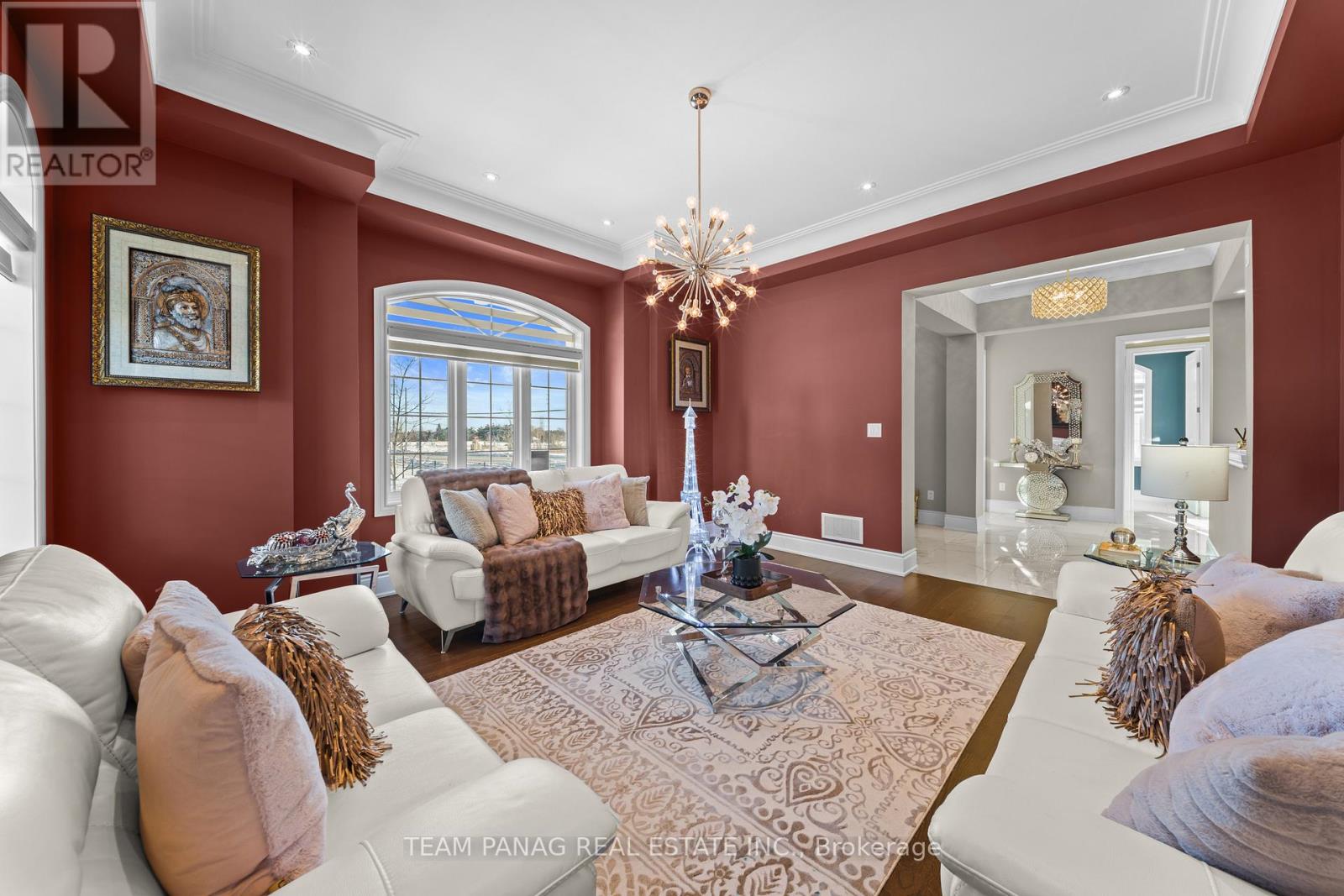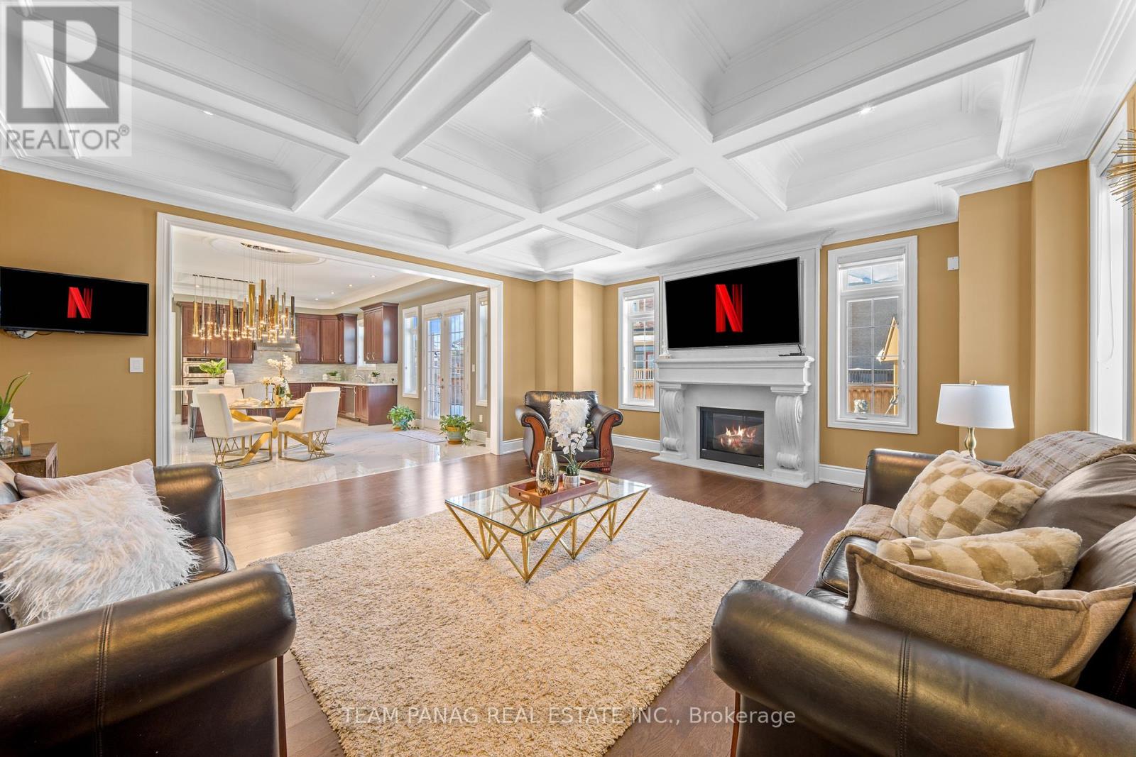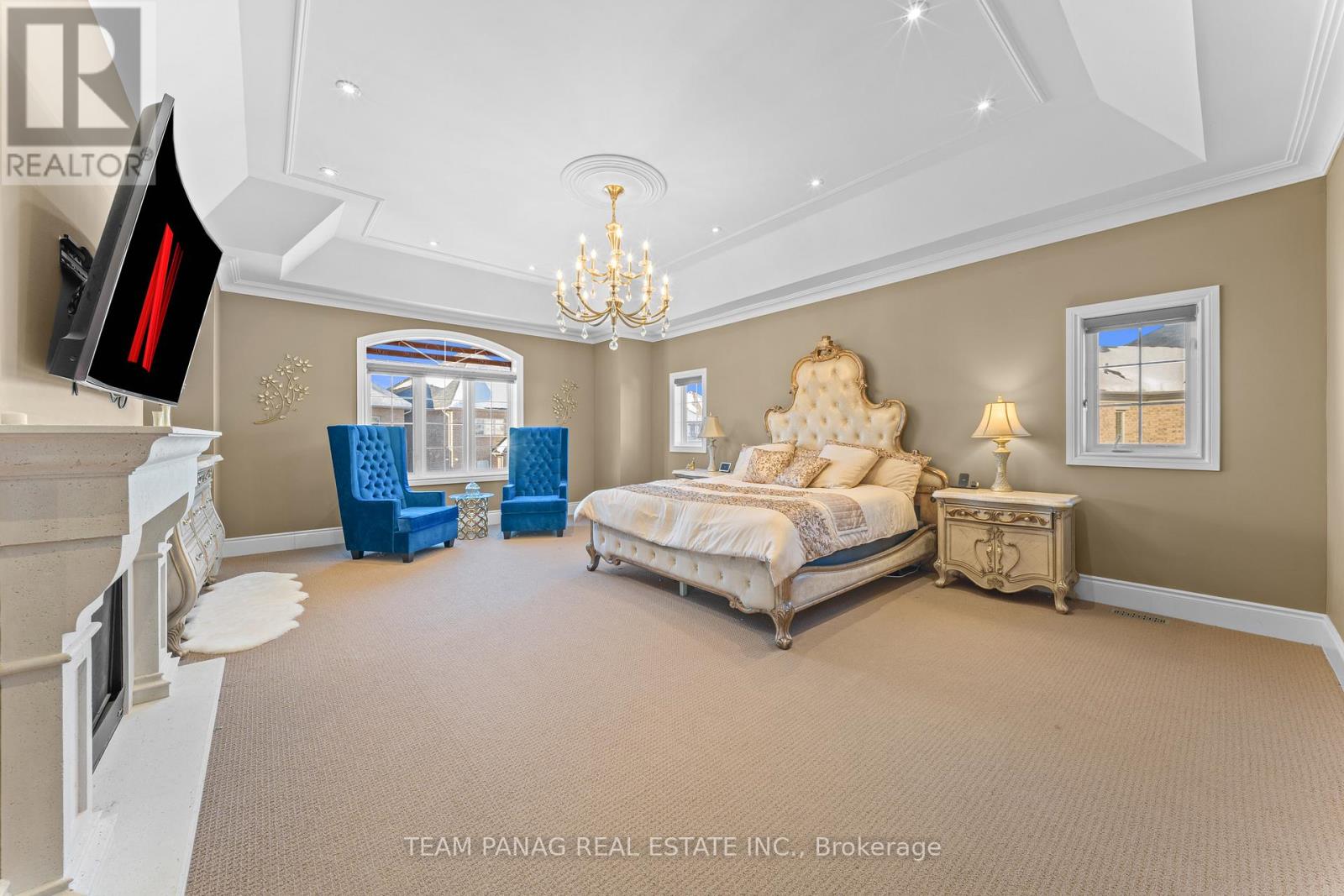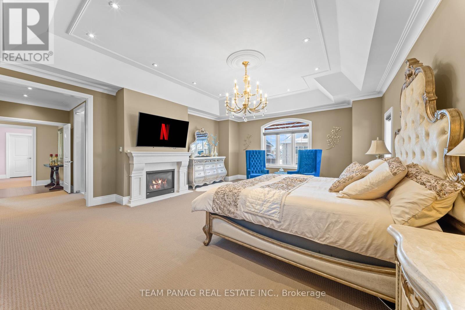 An exceptional offering in the prestigious Castlemore community, just minutes to Toronto and Vaughan. Built in 2017, this one-of-a-kind custom residence spans approximately 7,900+ sq. ft. of refined living space and showcases architectural elegance throughout. **Legal Finished Basement**. This **exclusive model-never replicated-**features a rare 4-car garage and over $400,000 in premium upgrades (see attached list).Set on a premium, private lot with only three residences at the end of the street, this stunning 6+1 bedroom detached home delivers both luxury and seclusion. The main level boasts soaring 10-foot ceilings, a grand welcoming foyer, a private formal living room, and a main-floor bedroom ideal for guests or multi-generational living. A wide central gallery leads to a breathtaking 22-foot double-height dining room, seamlessly flowing into the expansive open-concept chef's kitchen. The kitchen is appointed with built-in appliances, an oversized pantry with servery, and a sun-filled breakfast area, perfect for both everyday living and upscale entertaining. A fireplace anchors the main living space, enhancing warmth and sophistication. Crown molding and waffle ceilings elevate the craftsmanship throughout the home. The lavish primary suite offers a true retreat, complete with a custom-designed walk-in closet, bespoke cabinetry, and a private fireplace. A rare opportunity to own a statement residence in one of Brampton's most sought-after enclaves. All 5 Upstairs Bedrooms Has Its Own Private Ensuite. Stretch Ceiling In Basement Theatre Room And Games Room. Exotic Chandeliers In Most Rooms Of The House. Private Backyard With Hot Tub, Gazebo, Sprinkling System, And Interlocking Stones In The Backyard. Custom Gym In The Finished Basement. (42066383)