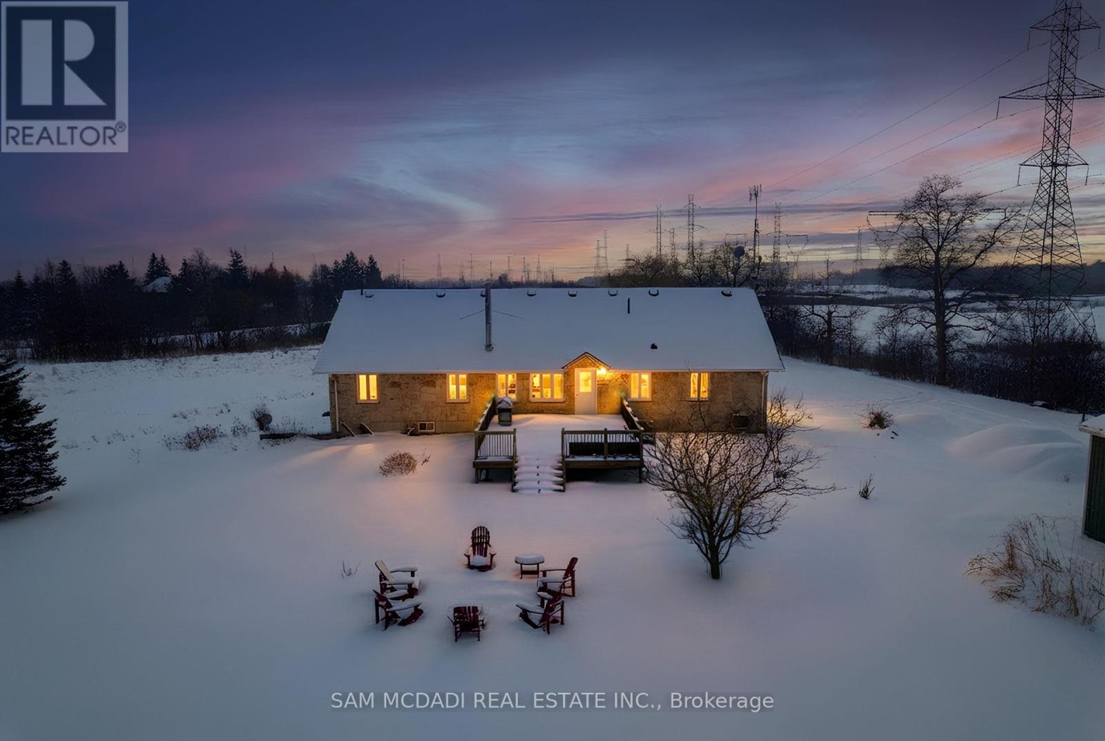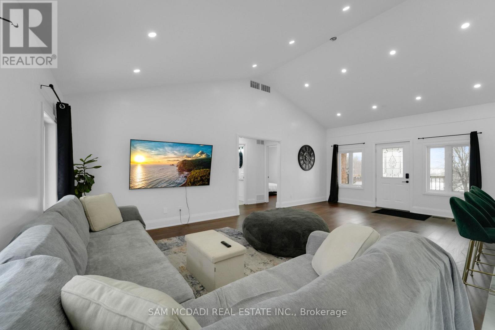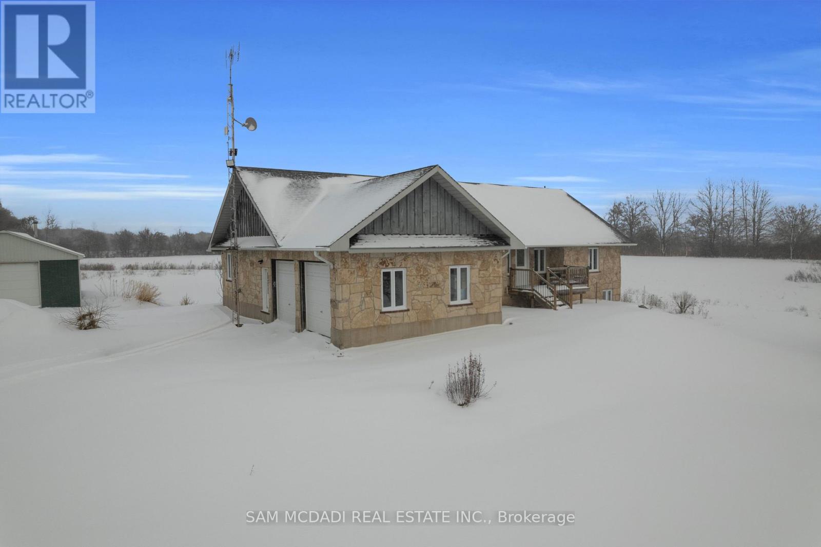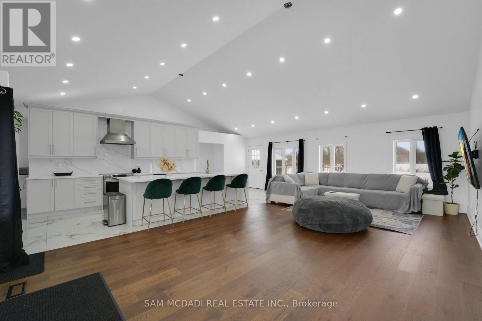 Set on an expansive 41-acre parcel, this beautiful bungalow features 3+1 bedrooms and 3 bathrooms with proven AirBnB income potential. Generating approximately $7,000 per month as a premium short-term rental during peak season, this residence presents a compelling opportunity for investors and lifestyle buyers alike. Upon entry, you'll be met by soaring 15-ft cathedral ceilings, extensive pot lighting, and curated finishes throughout, creating a bright and contemporary interior. The main level features an open-concept layout anchored by a striking chef's kitchen with an oversized island, large-format porcelain tile flooring, quartz countertops, custom cabinetry with refined hardware, and stainless steel appliances. Hardwood flooring defines the adjoining living space, while expansive windows bring in natural light and views of the surrounding countryside. The primary bedroom includes a walk-in closet and private 3-piece ensuite, complemented by two additional bedrooms and a full 5-piece bathroom. The finished lower level adds exceptional versatility with a separate entrance, offering a spacious recreation room, den, additional bedroom, 4-piece bath, and a servery with kitchenette capability, ideal for extended family use or supplementary income. Outside, the stone exterior, covered deck, and elevated setting provide year-round enjoyment, while the surrounding 41 acres offer a mix of open land and natural features, well suited to hobby farming or long-term land holding. The property's location further enhances its appeal, situated just 20 minutes to Hamilton, a short commute to the Grand River, known for kayaking, canoeing, fishing, and scenic trails, and close to local attractions, conservation areas, and charming small-town amenities. Do not miss this rare offering! (42066330)