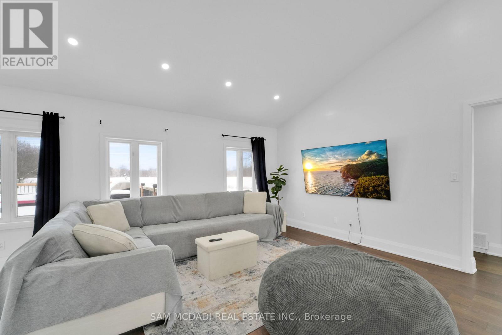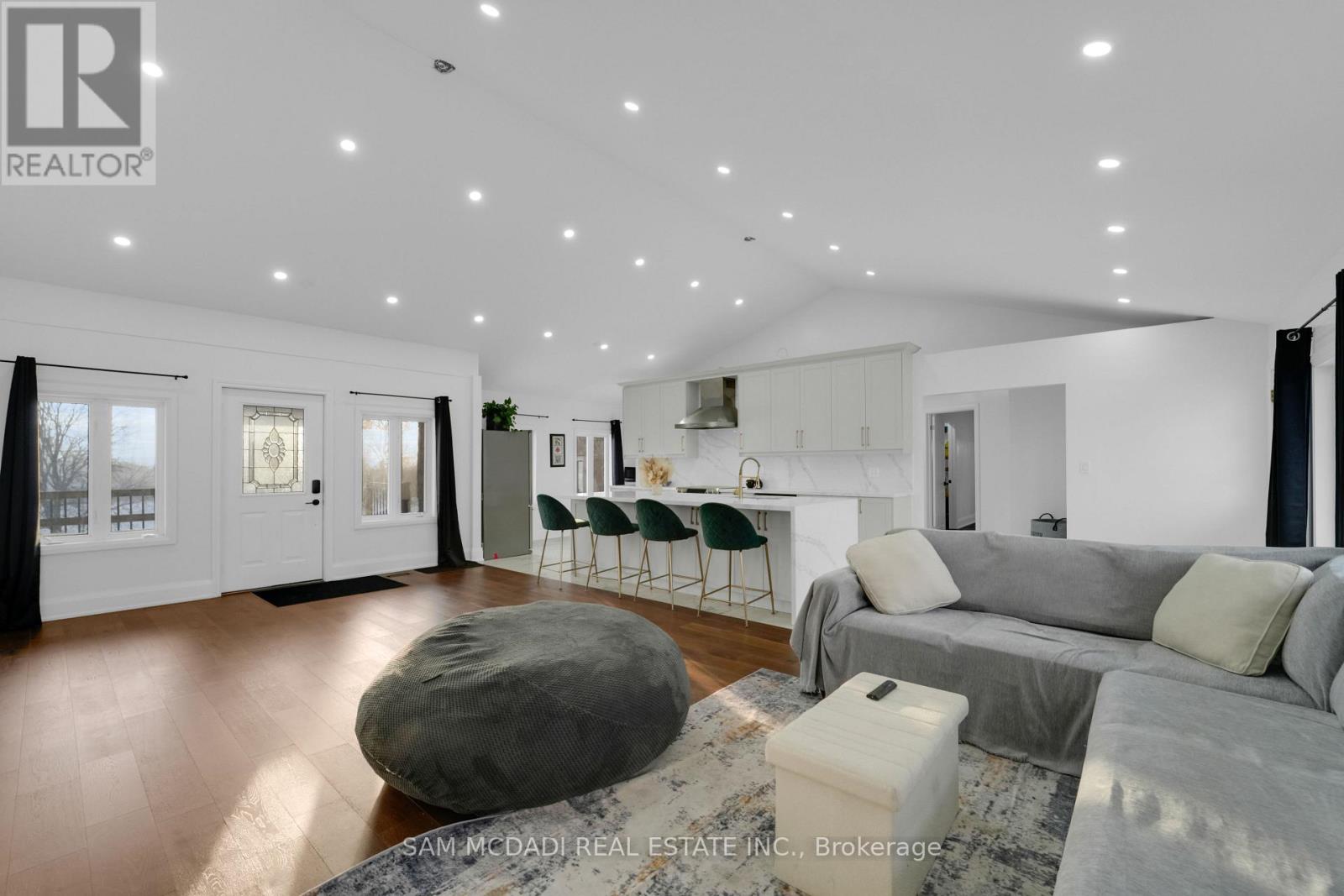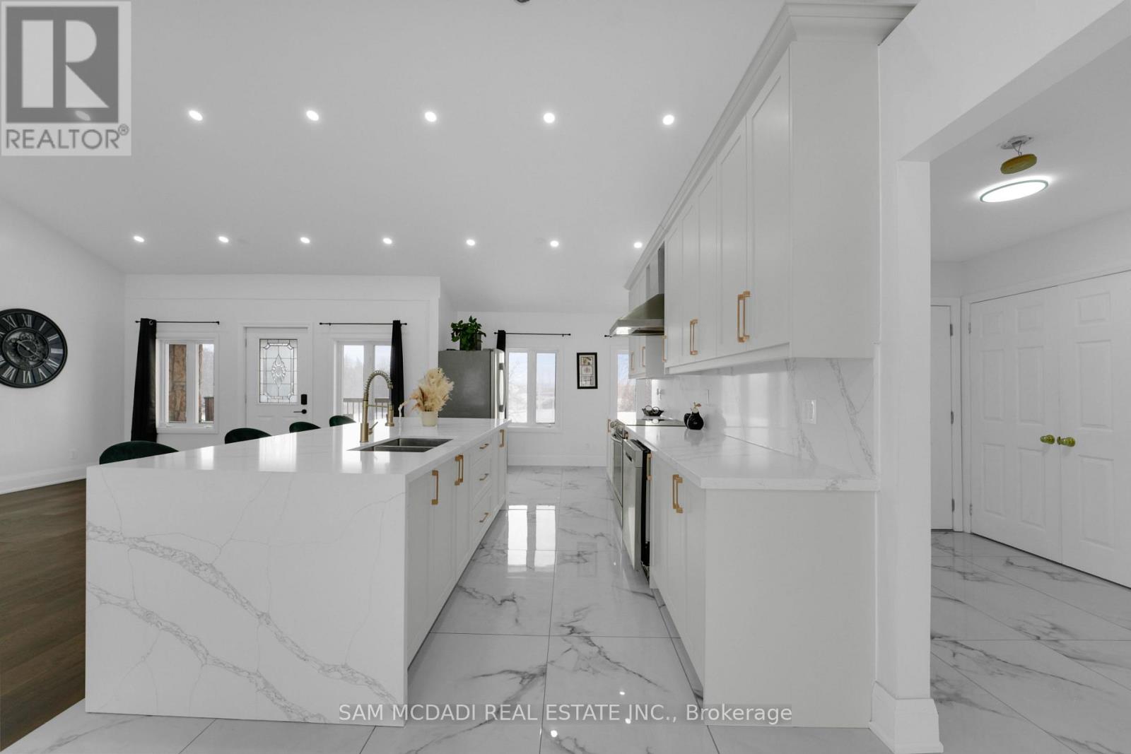 Set on an expansive 41-acre parcel, this beautiful bungalow features 3+1 bedrooms and 3 bathrooms with proven AirBnB income potential. Generating approximately $7,000 per month as a premium short-term rental during peak season, this residence presents a compelling opportunity for investors and lifestyle buyers alike. Upon entry, you'll be met by soaring 15-ft cathedral ceilings, extensive pot lighting, and curated finishes throughout, creating a bright and contemporary interior. The main level features an open-concept layout anchored by a striking chef's kitchen with an oversized island, large-format porcelain tile flooring, quartz countertops, custom cabinetry with refined hardware, and stainless steel appliances. Hardwood flooring defines the adjoining living space, while expansive windows bring in natural light and views of the surrounding countryside. The primary bedroom includes a walk-in closet and private 3-piece ensuite, complemented by two additional bedrooms and a full 5-piece bathroom. The finished lower level adds exceptional versatility with a separate entrance, offering a spacious recreation room, den, additional bedroom, 4-piece bath, and a servery with kitchenette capability, ideal for extended family use or supplementary income. Outside, the stone exterior, covered deck, and elevated setting provide year-round enjoyment, while the surrounding 41 acres offer a mix of open land and natural features, well suited to hobby farming or long-term land holding. The property's location further enhances its appeal, situated just 20 minutes to Hamilton, a short commute to the Grand River, known for kayaking, canoeing, fishing, and scenic trails, and close to local attractions, conservation areas, and charming small-town amenities. Do not miss this rare offering! (42066330)
