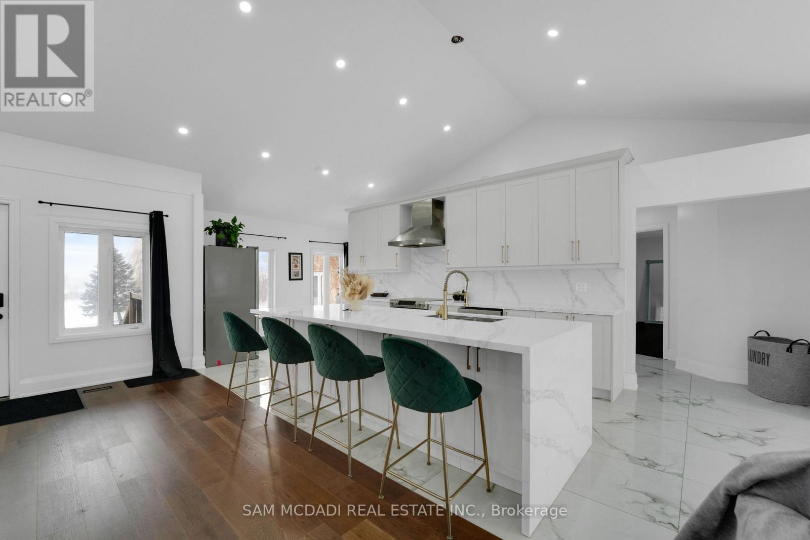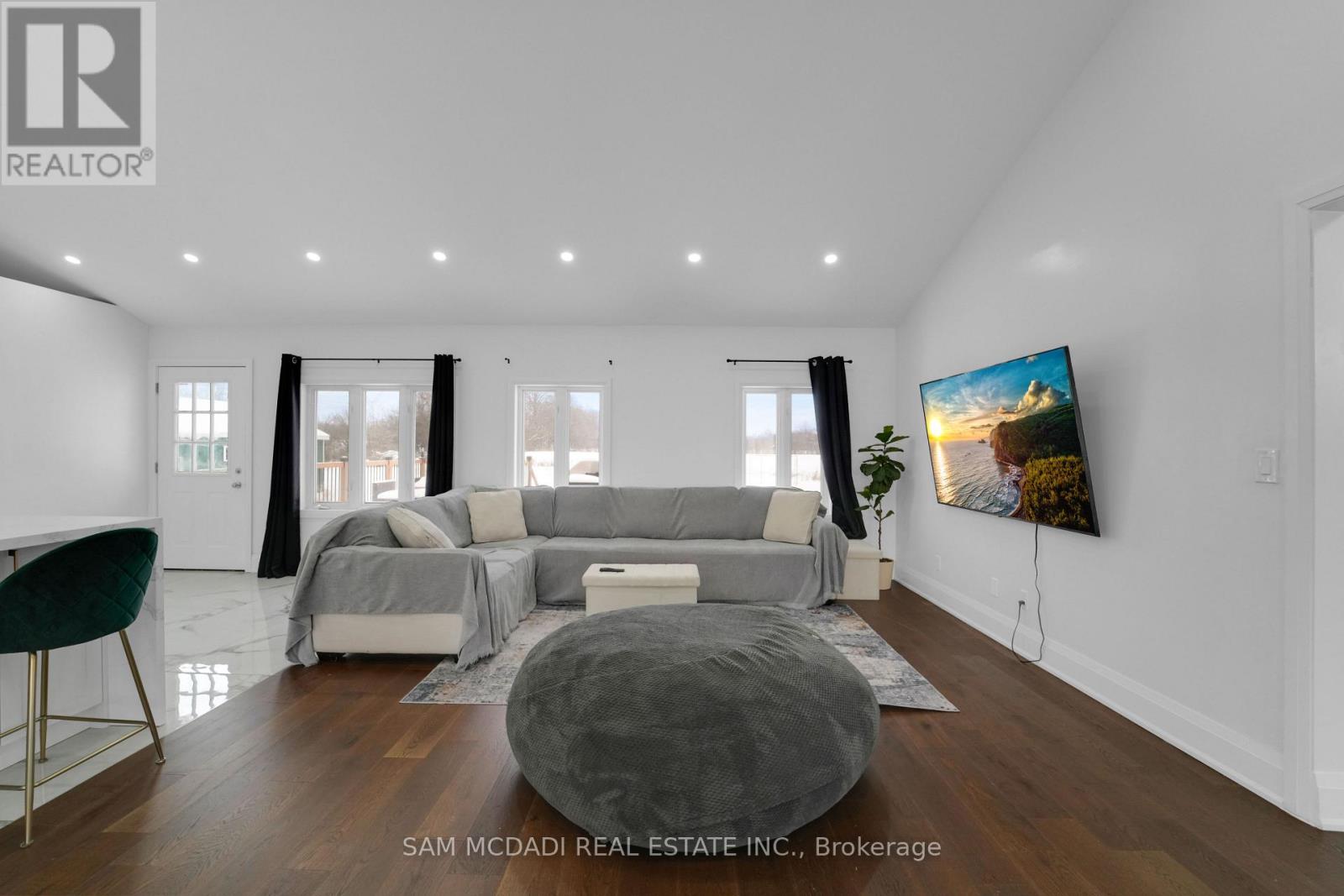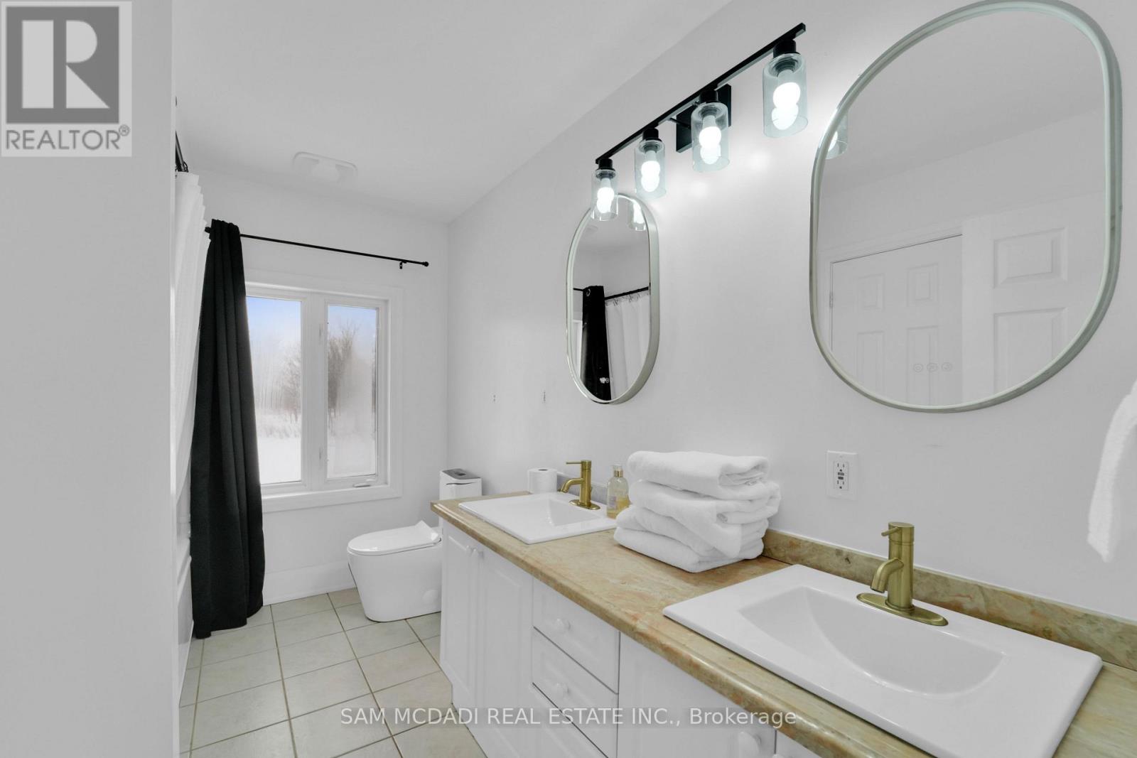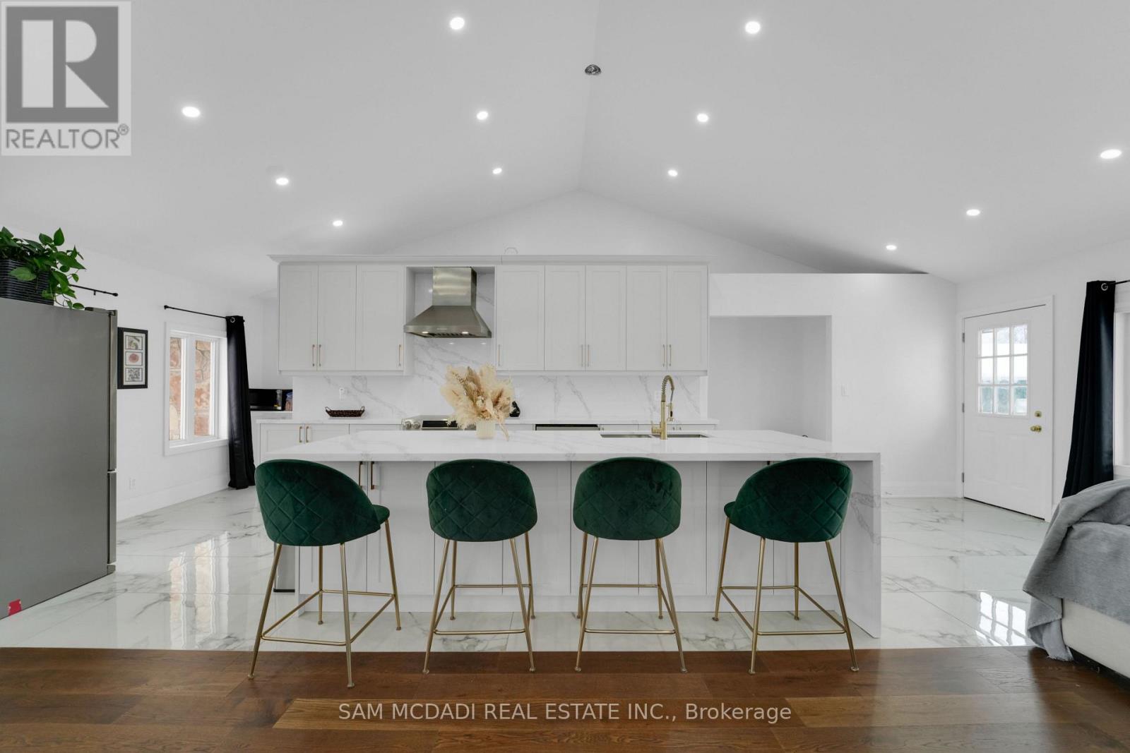 Set on an expansive 41-acre parcel, this beautiful bungalow features 3+1 bedrooms and 3 bathrooms with proven AirBnB income potential. Generating approximately $7,000 per month as a premium short-term rental during peak season, this residence presents a compelling opportunity for investors and lifestyle buyers alike. Upon entry, you'll be met by soaring 15-ft cathedral ceilings, extensive pot lighting, and curated finishes throughout, creating a bright and contemporary interior. The main level features an open-concept layout anchored by a striking chef's kitchen with an oversized island, large-format porcelain tile flooring, quartz countertops, custom cabinetry with refined hardware, and stainless steel appliances. Hardwood flooring defines the adjoining living space, while expansive windows bring in natural light and views of the surrounding countryside. The primary bedroom includes a walk-in closet and private 3-piece ensuite, complemented by two additional bedrooms and a full 5-piece bathroom. The finished lower level adds exceptional versatility with a separate entrance, offering a spacious recreation room, den, additional bedroom, 4-piece bath, and a servery with kitchenette capability, ideal for extended family use or supplementary income. Outside, the stone exterior, covered deck, and elevated setting provide year-round enjoyment, while the surrounding 41 acres offer a mix of open land and natural features, well suited to hobby farming or long-term land holding. The property's location further enhances its appeal, situated just 20 minutes to Hamilton, a short commute to the Grand River, known for kayaking, canoeing, fishing, and scenic trails, and close to local attractions, conservation areas, and charming small-town amenities. Do not miss this rare offering! (42066330)