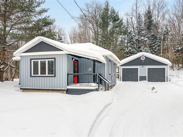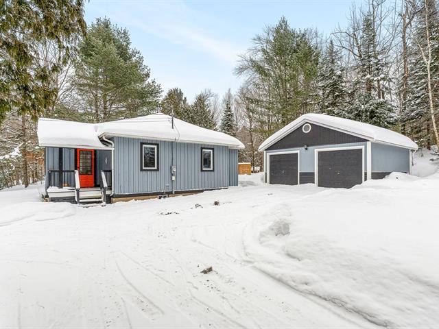 Charming country-style home, ideally located just minutes from Knowlton and Brome Lake, on a paved road. It features two bedrooms and a bright, open-concept living area combining the living room and kitchen, complete with a wood-burning stove that creates a warm and inviting atmosphere. The outdoor living spaces, including the patio and backyard, are thoughtfully designed to fully enjoy the tranquility of the property. A double garage completes the home, offering versatile space for parking or a workshop. (45505267)