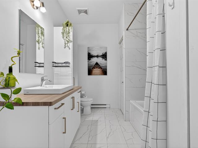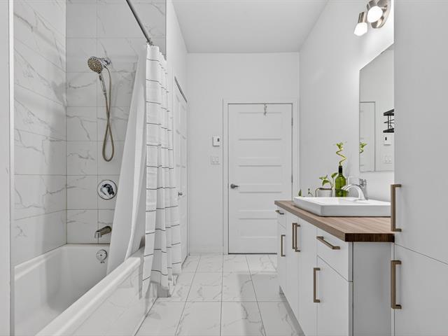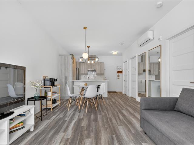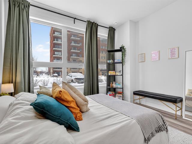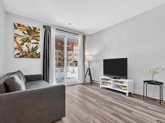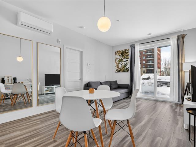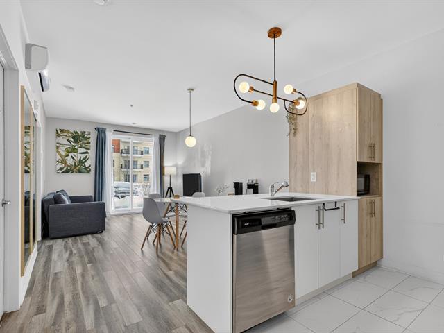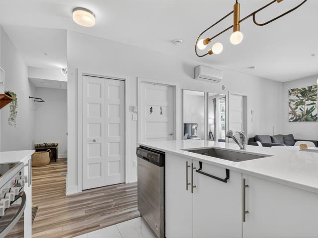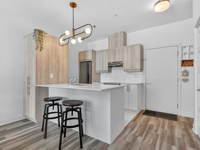 Beautiful one-bedroom + den condo built in 2019, offering a modern and well-designed living space. The smart kitchen layout maximizes storage and functionality. Outdoor parking included. Ideally located within walking distance of Quartier Dix/30, public transportation, the future REM, La Rose-des-Vents Elementary School, parks, and bike paths. A convenient and enjoyable lifestyle. (58149697)
