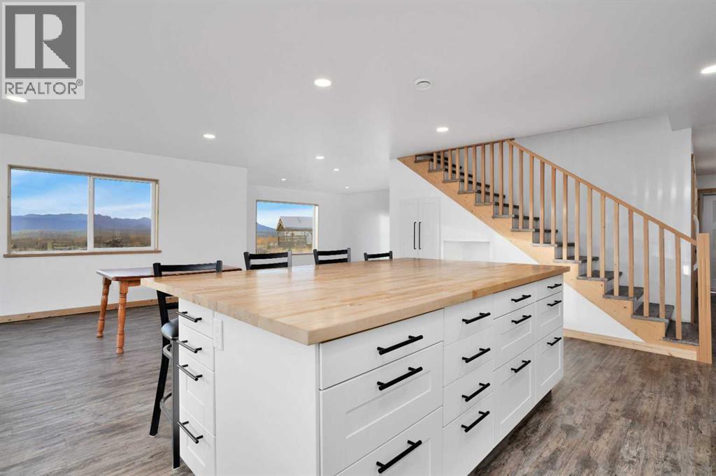 Welcome to the Nordegg Industrial Subdivision! 4.27 acres this property is ideally setup to live and operate a business from. There is space for your family to live full-time in addition there is a 5-bedroom, 2 bathroom + Kitchen staff bunkie and 2 standalone seasonal cabins (Cabin 1 is a 1 bedroom, 1 bathroom, Cabin 2 – 2-bedroom, 1 bathroom). The parcel is perimeter fenced with plenty of room for yard storage and equipment to maneuver around. The primary residence is designed in a modern farmhouse style, it is clean, simple and welcoming with classic rustic farmhouse elements. This home allows for an open concept living, dining and kitchen experience, the house is positioned to capture the breathtaking panoramic mountain views, some of the best views in the area! On the main floor you will find an expansive kitchen, dining room, living room, a 3-piece bathroom, access to the garage and a bonus area that is rough-ed in for a 2nd kitchen or alternatively another bathroom this room is accessible from the outside. (the intent was to develop a small commercial kitchen in this area). The upper level has 2 defined bedrooms a beautiful 5-piece bathroom, spacious laundry room and walk-in closet, a sitting area and a flex room that could easily be a 3rd bedroom. The property is serviced with 2 septic systems the main house has a tank and field system and the bunkie has a holding tank. The water system for the main house is a rain collection system (not potable but could modified) this system is connect to the 2 cabins. The bunkie has a potable water tank cistern. This is the prime opportunity to invest in Nordegg’s future and be a part of an up-and-coming mountain community that has so many untapped resources. (31599228)
