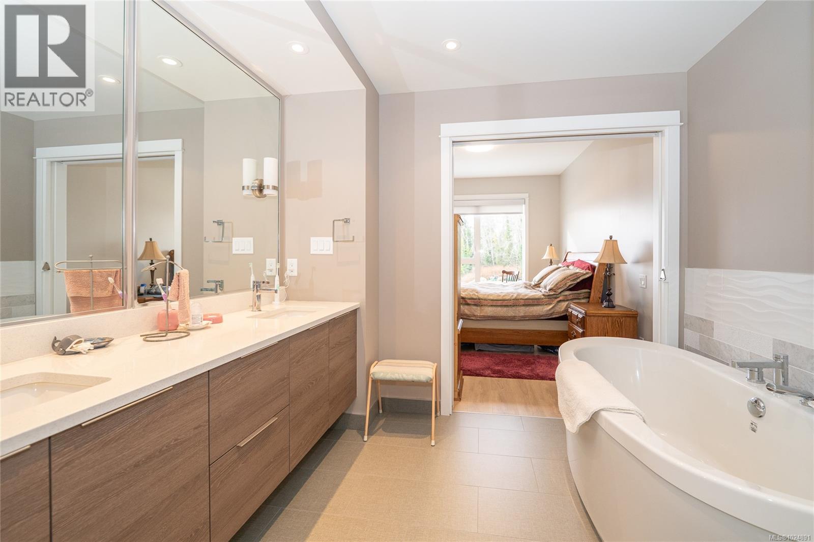 Enjoy refined oceanfront living in this oversized 1-bed, 1.5-bath residence offering just under 900 sq. ft. of thoughtfully designed space. The open-concept layout features a stylish kitchen with stainless KitchenAid appliances, gas range, quartz countertops, and seamless flow to the dining and living areas. Step outside to an expansive 263 sq. ft. patio with gas BBQ hookup—ideal for entertaining while taking in ocean and mountain views. Quality finishes include oak hardwood flooring, 9-ft ceilings, and oversized windows that flood the home with natural light. The king-size primary bedroom connects to a spa-inspired ensuite with dual vanities, soaker tub, glass shower, heated floors, and private water closet. A separate powder room, secured underground parking, and storage locker complete the home. Located in the exclusive Residences on Sooke Harbour, a boutique collection of just 27 oceanfront homes offering a private fitness studio, kayak storage with ocean access, and secured entry. (30340741)