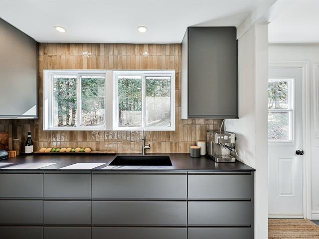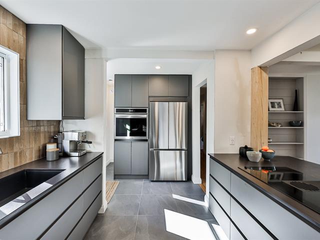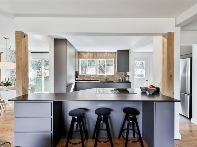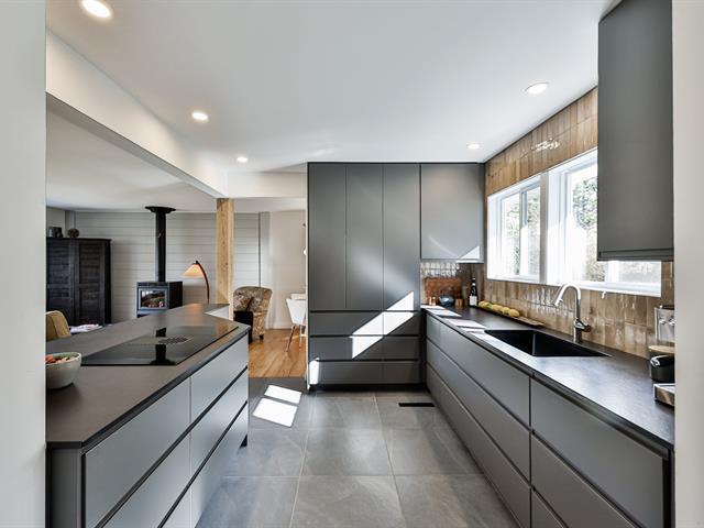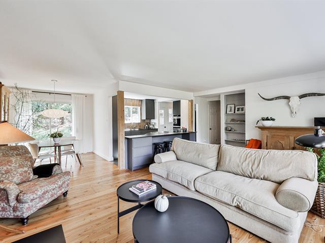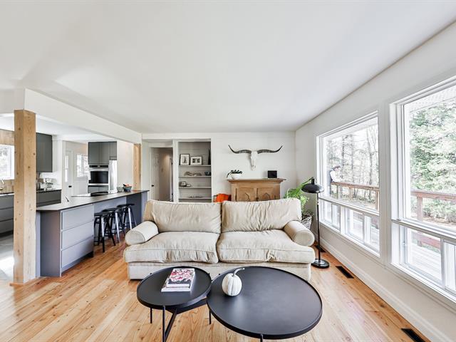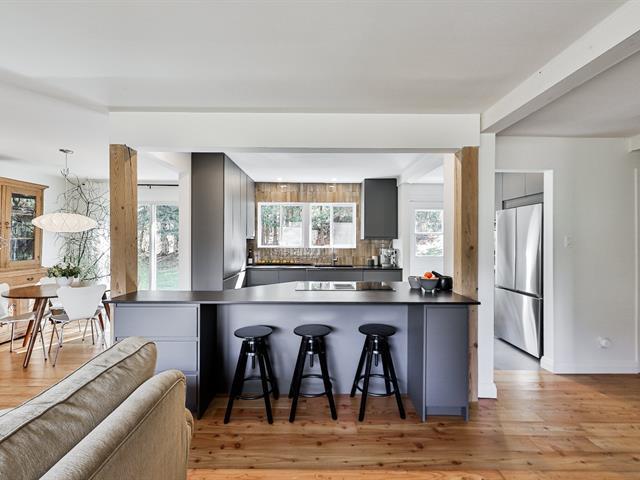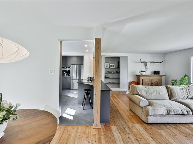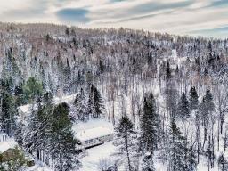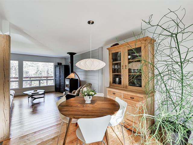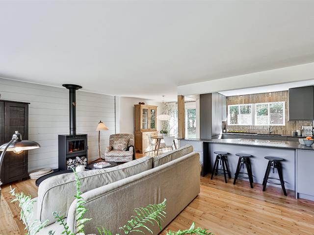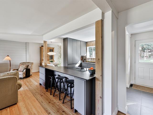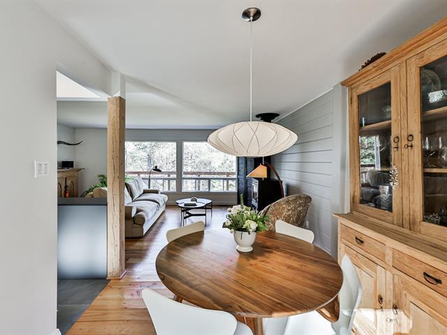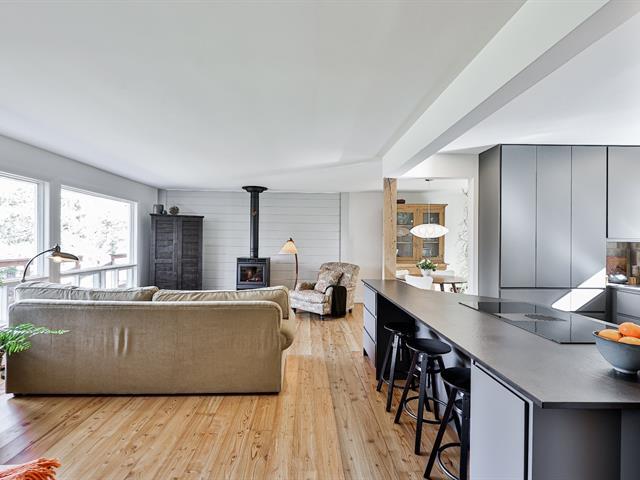 Open-concept living room and kitchen offering a warm and inviting living space, enhanced by a cozy fireplace and beautiful hardwood floors -- all nestled on a stunning, private lot with a view of Mount Maribou, just steps from the village and all amenities. Your dream home awaits! Schedule your visit today! (46508358)