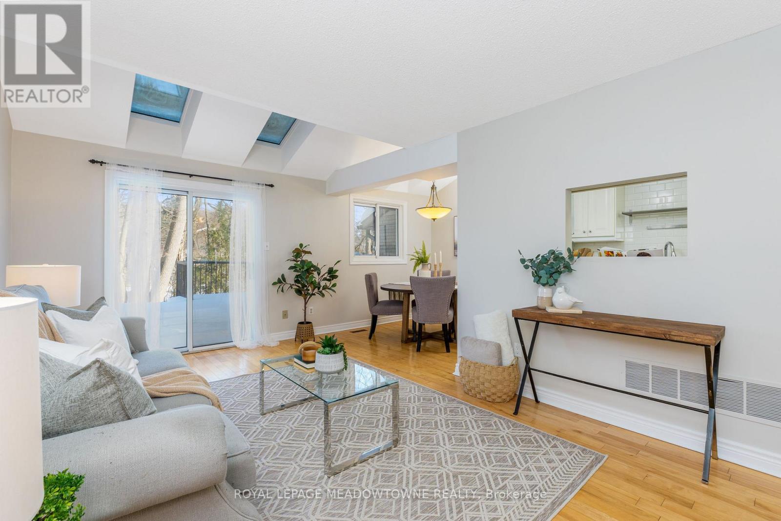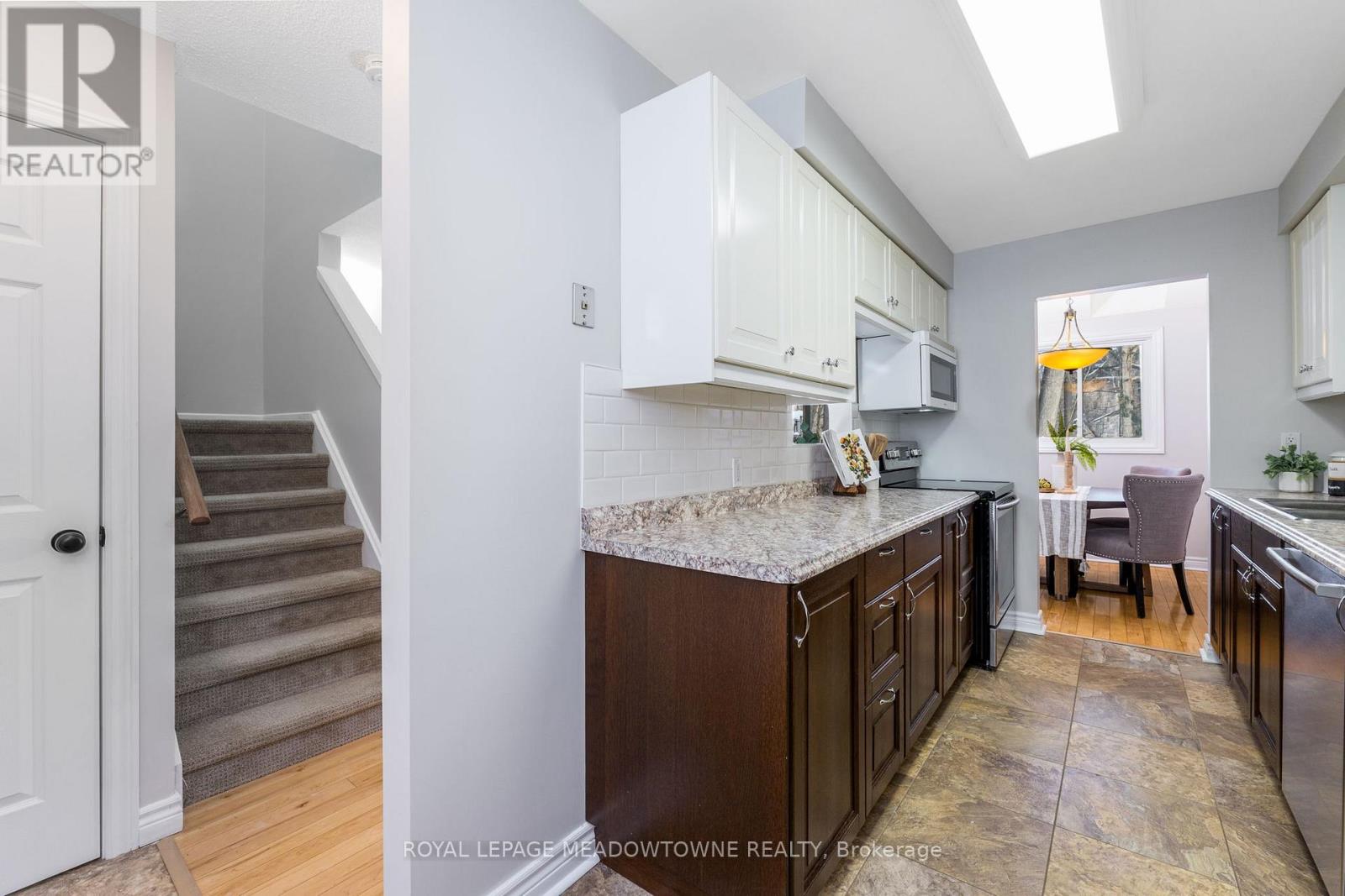 Move-in Ready 3 bedroom, 2 bathroom townhouse overlooking the serenity of the Credit River. Before stepping inside, take a moment to appreciate the stone porch and the curb appeal of the etched glass insert in the front door casting light into foyer. The living room with hardwood floors opens to a large deck guaranteed to provide a happy place for meals and gatherings. The updated kitchen with a pass-thru, glass cupboards, white tile backsplash and stainless steel appliances leads to the dining area which is illuminated by skylights. Upstairs there are three freshly painted bedrooms and a semi-ensuite 4-piece bathroom adjacent to the large primary bedroom with wall-to-wall closets. The finished rec room provides additional space to relax and play. (42067355)