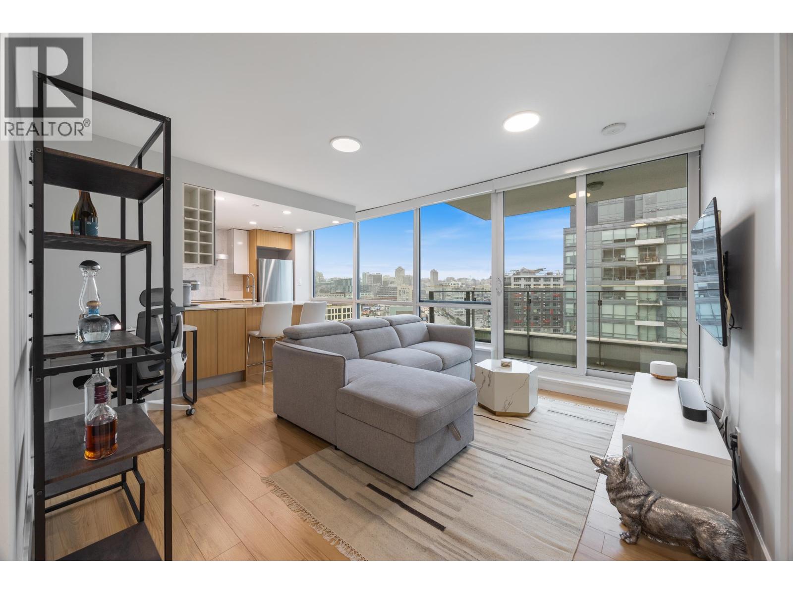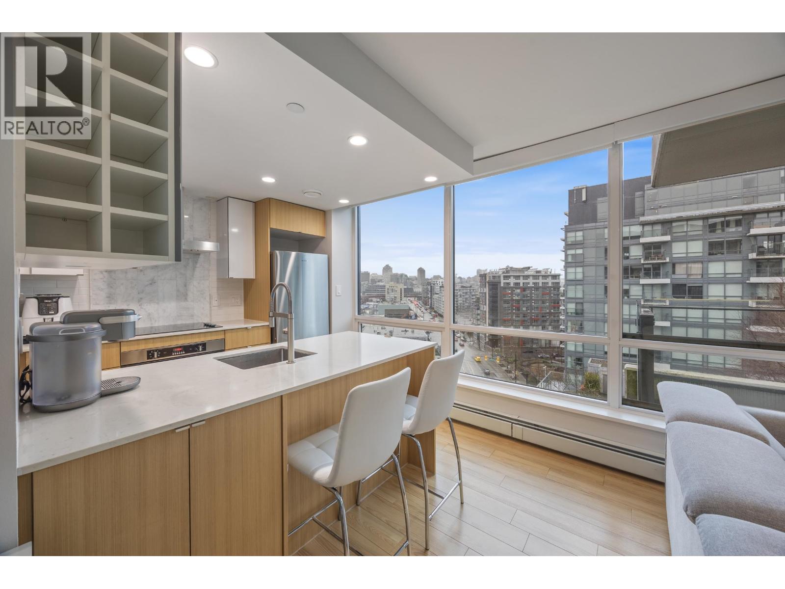 A standout south-west facing corner 1 bedroom + den at Tower Green, perfectly positioned in Vancouver´s sought-after False Creek neighbourhood. This bright home offers unobstructed City Hall views, 8'4 ceilings, and a smart, efficient layout that feels larger than expected. The U-shaped kitchen features full-size appliances and generous in-suite storage with no wasted space. Updates include Lutron electric curtains with wall panels and app control, new fridge, LED ceiling lights, updated bathroom fixtures, magnetic kitchen faucet, and a new bedroom rug. Portable AC included. Enjoy the seawall steps from your door and easy access to both the Canada and Expo Lines. Includes 1 parking, 1 bike locker. (32401966)
