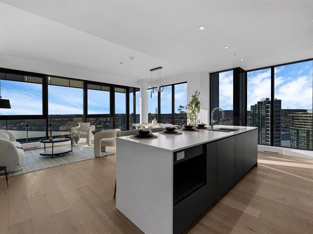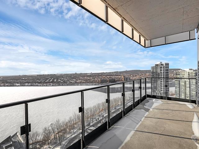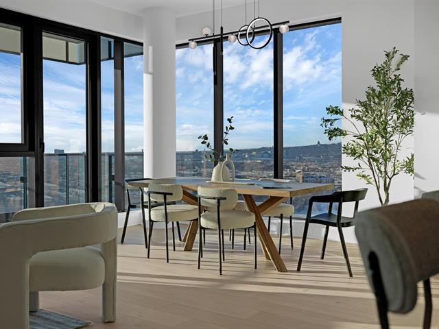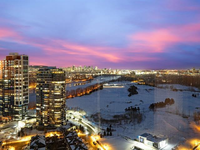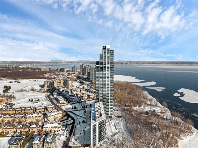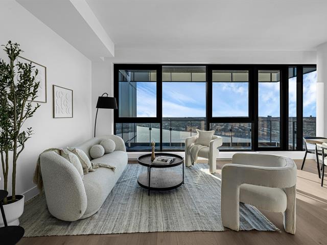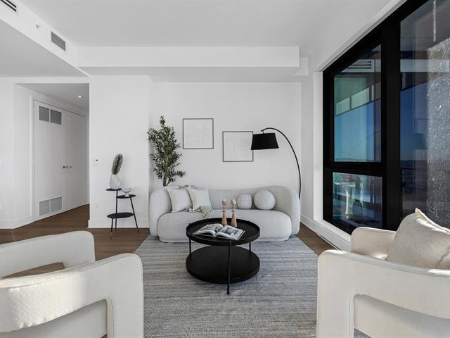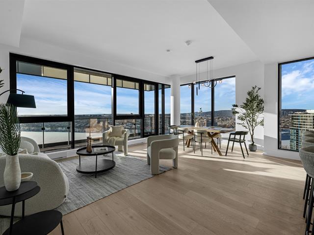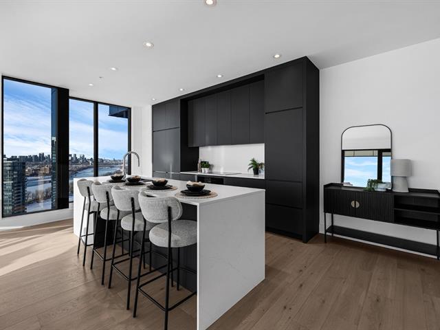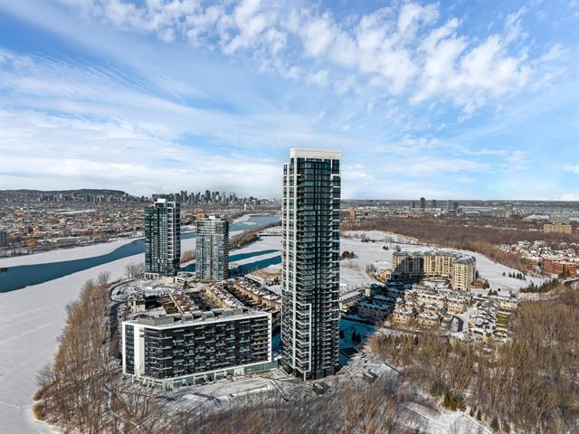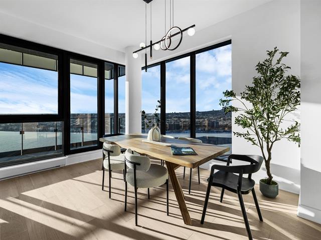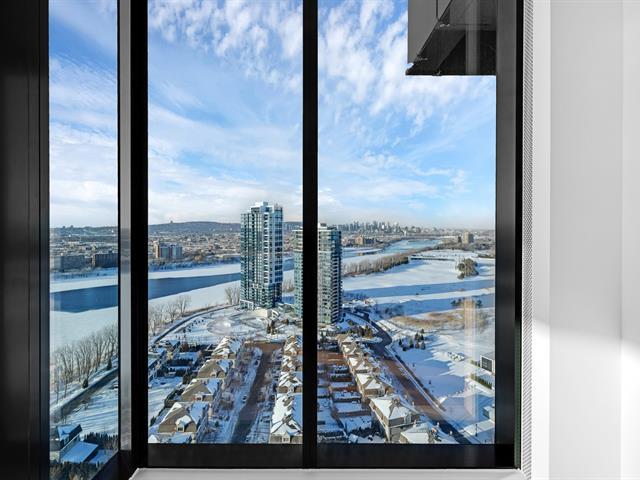 this exceptional high-floor residence at Symphonia VIU commands breathtaking, uninterrupted panoramic views of the St. Lawrence River, the golf course, and the Montréal skyline. Showcasing 10-foot ceilings and refined, penthouse-caliber finishes throughout, the residence has been thoughtfully enhanced with elegant contemporary staging, creating a sophisticated interplay of scale, natural light, and privacy. This presentation captures the true essence of the residence as it can be experienced in real life, while embodying the refined lifestyle and architectural distinction of one of Nuns' Island's most prestigious addresses. (45035892)
