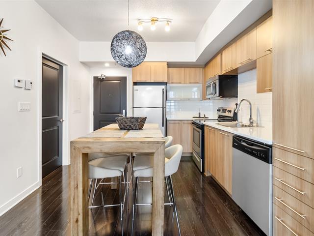 Charming turnkey condo in the heart of Downtown, steps away from the Quartier des Spectacles. Spacious bedroom, bright living area, and modern kitchen, this condo offers both comfort and style. Enjoy a spacious living space with a dedicated office area, contemporary finishes, and a balcony perfect for relaxation. Conveniently located near public transit, restaurants, shops, and universities, this location is ideal for professionals, students, or urban lifestyle enthusiasts. The building also features private basement storage, a gym, and a shared terrace. Everything you need is here! Don't miss this opportunity ! (55273330)