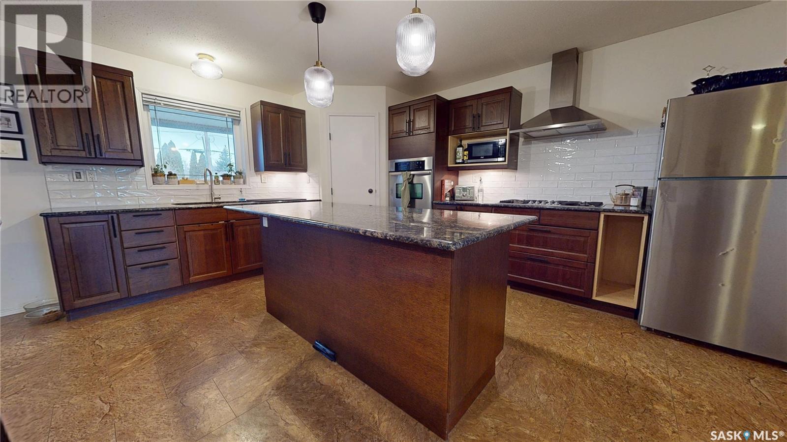 Welcome to 211 Lonsdale Street in Maple Creek. This custom-built, raised bungalow is located in a newer residential area close to schools, recreation, shopping, and a new daycare currently under construction. Tidy and move-in ready, the home features a split-entry foyer and an open-concept main floor with kitchen, dining, and living space offering room for a large table plus island seating, a corner pantry, quartz countertops, countertop range with hood, built-in oven, and a double sink overlooking the covered deck and backyard. The bright living room features engineered hardwood flooring. The primary bedroom includes a walk-in closet and 4-piece ensuite. There are two additional main-floor bedrooms and a 5-piece main bath with double sinks for those busy family mornings. The fully developed basement offers a family room, rec/games area with wet bar and cabinetry—perfect for guests, teens, crafting or hobbies—two more bedrooms, a 3-piece bathroom, and a utility room with designated laundry area, storage, furnace, air exchanger, central vac, and sump pump. Outside, enjoy a large fenced yard ideal for kids and pets, a gravel fire pit area, storage shed, RV or extra vehicle parking, and both a front concrete drive and rear gravel drive. The icing on the cake is the fully insulated, heated garage with plenty of room for vehicles, a workshop, or man cave. Priced to sell, this is a home you won’t want to miss. (29344370)