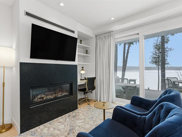 Lake Massawippi! Magnificent condo with refined design, located in the prestigious Ripplecove environment and offering a distinctive hotel-style experience. Turnkey unit ideal as a residence or investment, offering privileged access to an exceptional natural setting and the amenities of the Ripplecove Hotel & Spa. The condo can be rented through the Hotel, excellent profitability. Contemporary interior bathed in light, with king-size bed, modern fireplace, kitchen, built-in office area, and high-end bathroom. Superb covered terrace with breathtaking views of the lake, for special moments of relaxation in any season. Peace and quiet! GST/QST must be added to the asking price (53947813)