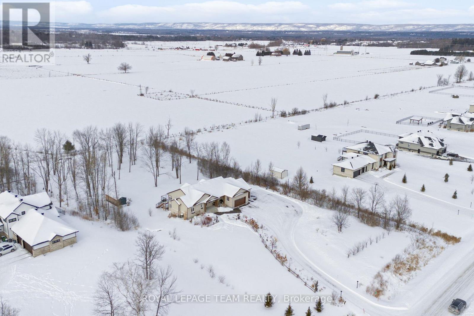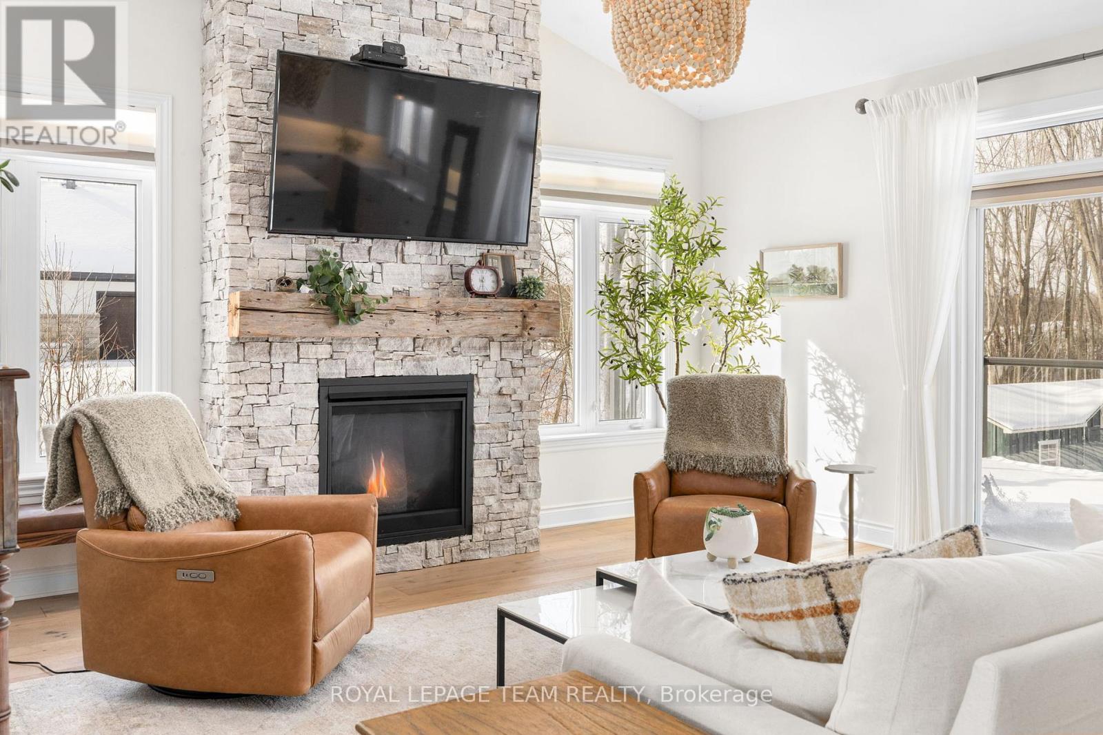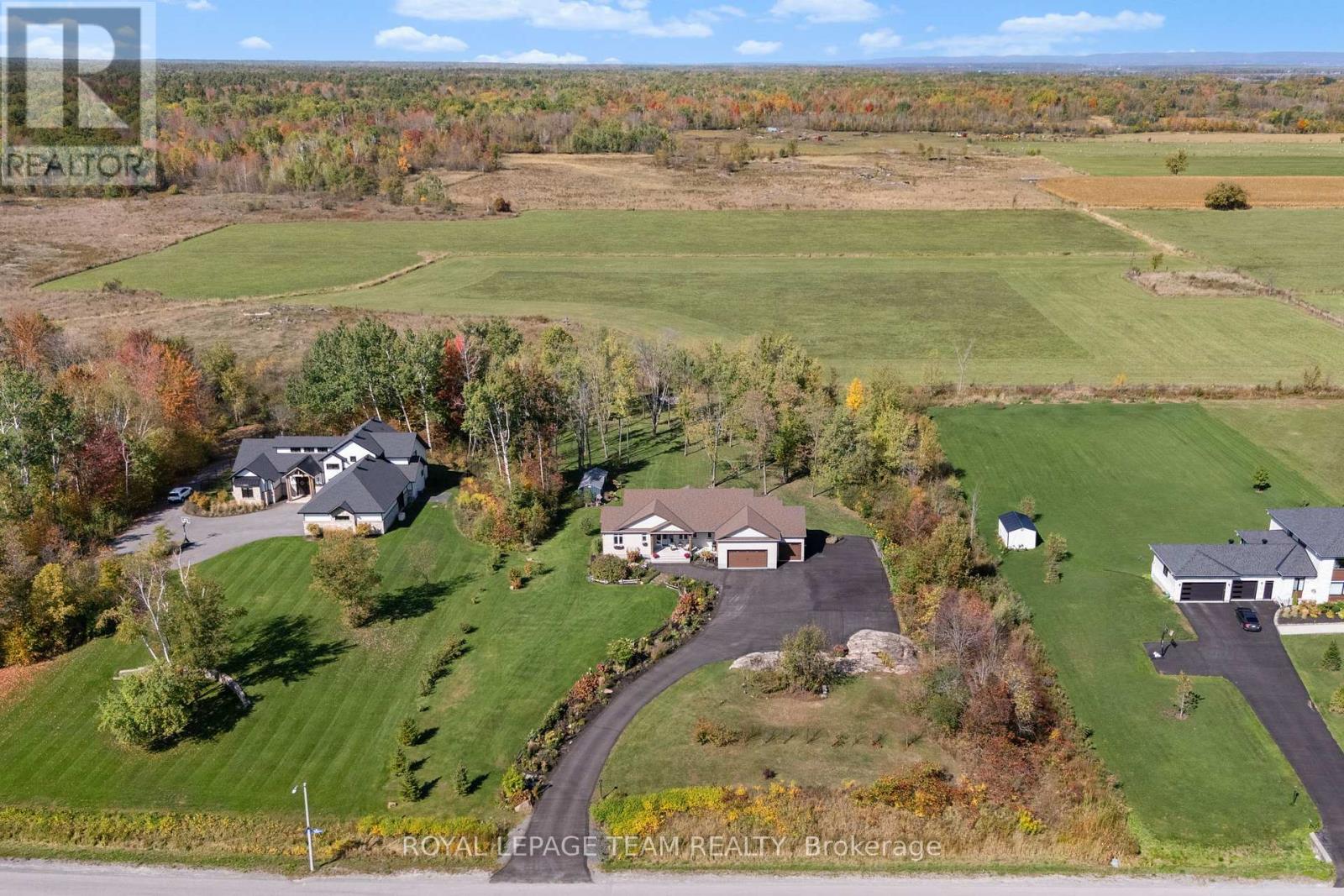 Welcome to 26 Synergy Way, an exceptional custom-built residence located in prestigious March Crest Estates. Nestled on over 2 private, treed acres in rural Kanata and backing onto open farmland, this property offers peaceful surroundings, and sweeping views of the Gatineau Hills. Built in 2018 by Grizzly Homes, this meticulously crafted home blends refined design, thoughtful functionality, and outstanding craftsmanship throughout. The main level features a bright, open-concept layout ideal for both everyday living and entertaining. A chef-inspired kitchen showcases quartz counters & backsplash, extra-tall stacked cabinetry, built-in microwave, pot filler, stainless steel appliances, and an impressive 10' x 5' island with extensive storage and seating. The dining area & vaulted great room offers designer lighting, pot lights, and a striking 12' real stone gas fireplace with reclaimed barn beam mantle. Sliding doors lead to a two-storey TREX composite deck with glass railings, perfect for enjoying panoramic views. Three bedrooms on the main level, including a stunning primary suite with vaulted ceilings, walk-in closet, and award-winning 5-piece ensuite with heated floors. A spacious mudroom/laundry area with built-ins offers convenient access to the heated triple-car garage. Wide-plank brushed white oak hardwood flooring throughout main level. The walk-out lower level includes a fully self-contained 1,600 sq.ft. in-law or nanny suite with two bedrooms, full kitchen, living room with electric fireplace, in-suite laundry, private garage entrance, access to a lower deck & park-like backyard. Additional unfinished space provides excellent storage. Extensive upgrades include an oversized paved driveway, Generlink 12,000W generator, irrigation system, landscaped gardens with mature trees & fruit plantings, firepit, shed, and meticulous ongoing maintenance. Stylish, versatile, and impeccably cared for, this one-of-a-kind home offers an extraordinary lifestyle opportunity. (42068864)