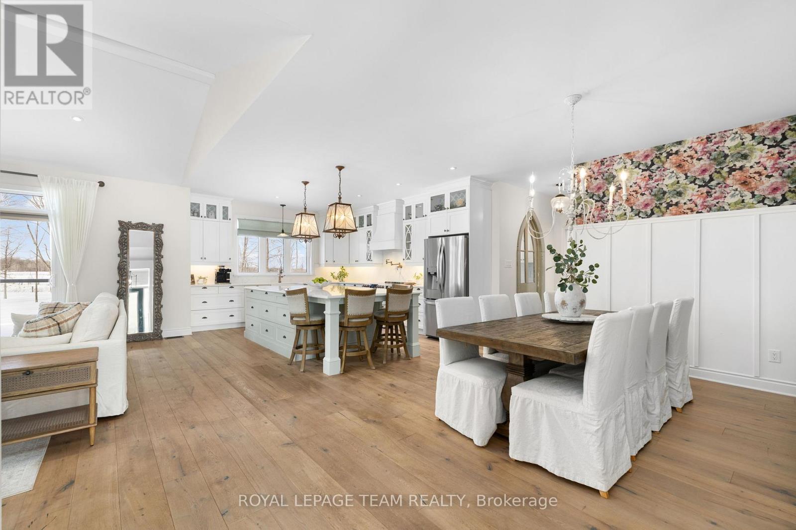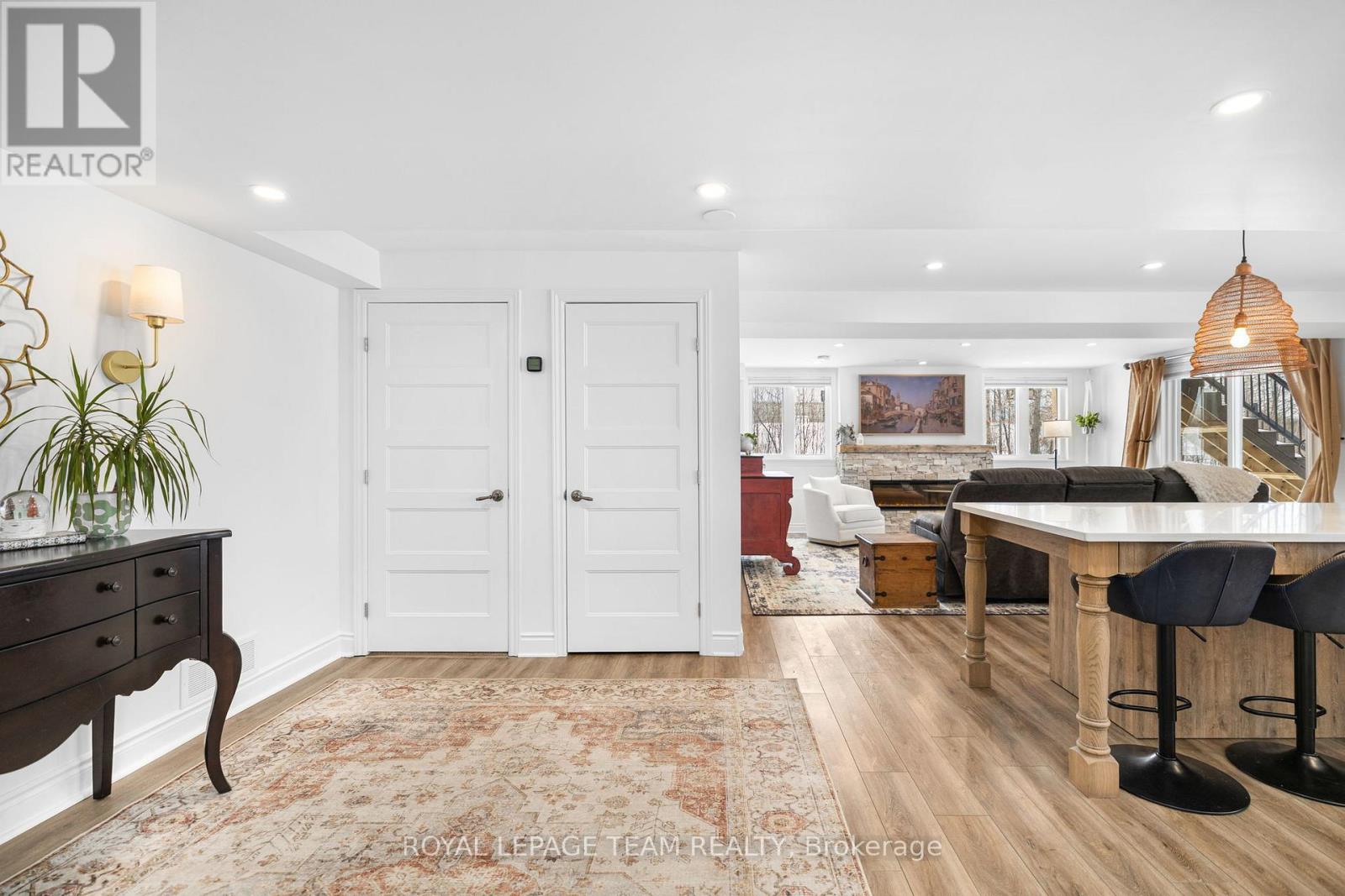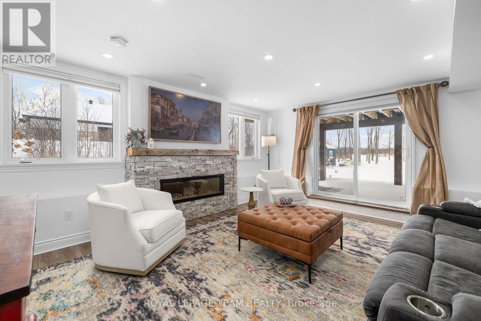 Welcome to 26 Synergy Way, an exceptional custom-built residence located in prestigious March Crest Estates. Nestled on over 2 private, treed acres in rural Kanata and backing onto open farmland, this property offers peaceful surroundings, and sweeping views of the Gatineau Hills. Built in 2018 by Grizzly Homes, this meticulously crafted home blends refined design, thoughtful functionality, and outstanding craftsmanship throughout. The main level features a bright, open-concept layout ideal for both everyday living and entertaining. A chef-inspired kitchen showcases quartz counters & backsplash, extra-tall stacked cabinetry, built-in microwave, pot filler, stainless steel appliances, and an impressive 10' x 5' island with extensive storage and seating. The dining area & vaulted great room offers designer lighting, pot lights, and a striking 12' real stone gas fireplace with reclaimed barn beam mantle. Sliding doors lead to a two-storey TREX composite deck with glass railings, perfect for enjoying panoramic views. Three bedrooms on the main level, including a stunning primary suite with vaulted ceilings, walk-in closet, and award-winning 5-piece ensuite with heated floors. A spacious mudroom/laundry area with built-ins offers convenient access to the heated triple-car garage. Wide-plank brushed white oak hardwood flooring throughout main level. The walk-out lower level includes a fully self-contained 1,600 sq.ft. in-law or nanny suite with two bedrooms, full kitchen, living room with electric fireplace, in-suite laundry, private garage entrance, access to a lower deck & park-like backyard. Additional unfinished space provides excellent storage. Extensive upgrades include an oversized paved driveway, Generlink 12,000W generator, irrigation system, landscaped gardens with mature trees & fruit plantings, firepit, shed, and meticulous ongoing maintenance. Stylish, versatile, and impeccably cared for, this one-of-a-kind home offers an extraordinary lifestyle opportunity. (42068864)