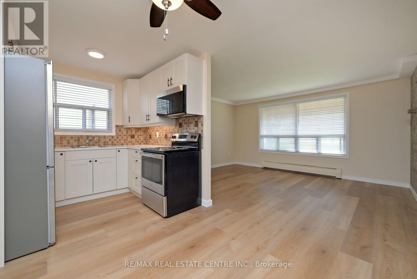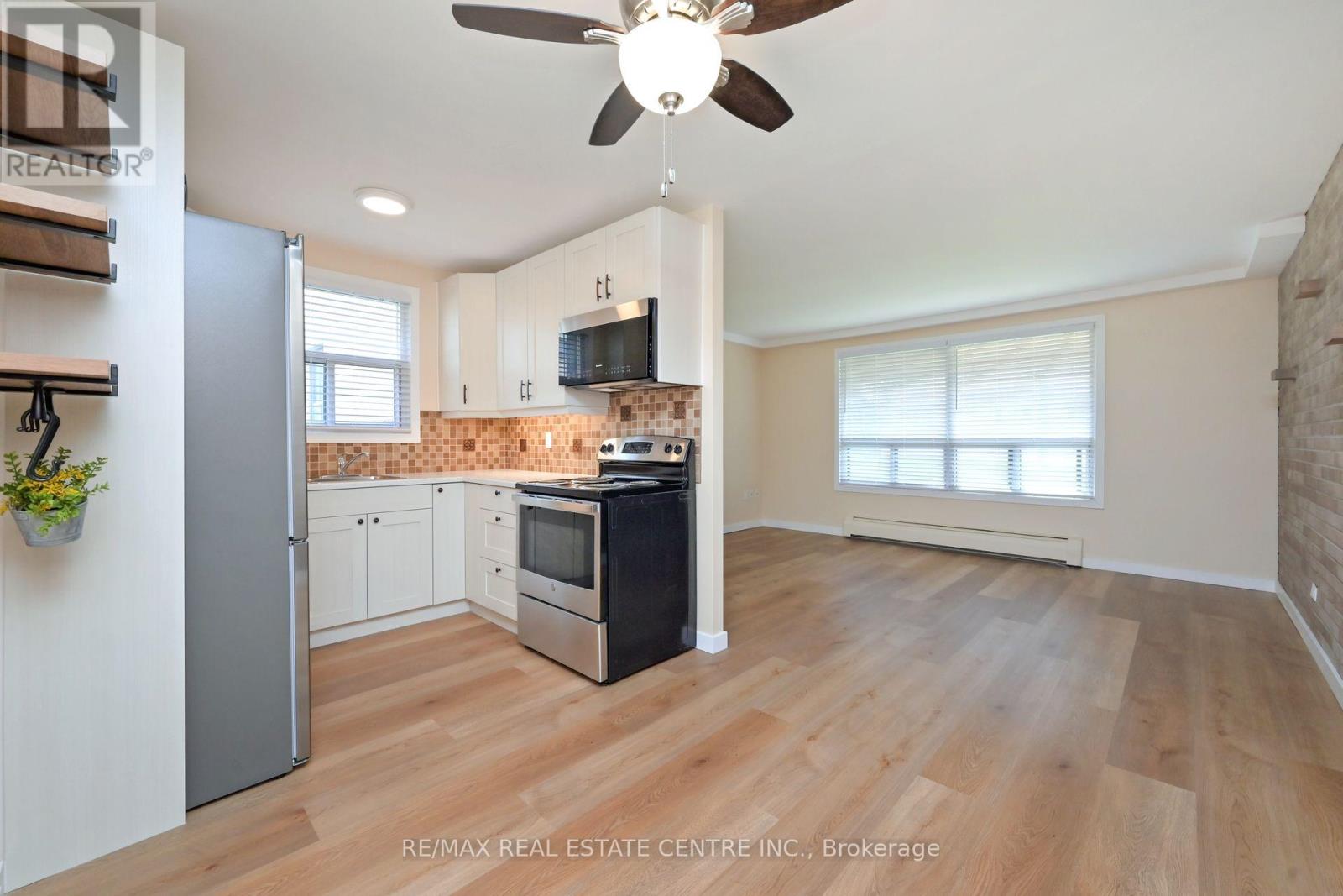 Gorgeous main level condo apartment in convenient location to all amenities Orangeville has to offer. Trails, Shopping, Dining, Theatre, library, parks and more. Renovated throughout with unique brick wall feature. Fridge, Stove and Microwave (all brand new) included. Amazingly spacious with quick and easy access to front street level. Laundry facilities in building (#63). Exclusive use parking space and guest parking available.Condo maintenance fees include: heat, water, maintenance of common areas, and building taxes and insurance. (42068925)