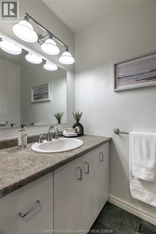 Move-In Ready Family Home. This two-storey home has what growing families actually need. Three bedrooms upstairs. Two full bathrooms. Main floor laundry, so you're not hauling baskets up and down stairs with a toddler on your hip. The kitchen and main bath have been recently and nicely updated. The whole house is painted and decorated in neutrals, which means you can move in without repainting everything to match your stuff. Downstairs, the basement is finished with a family room and den. Real living space, not just storage. The den works as a home office, playroom, or whatever your family needs right now. The furnace and air conditioner were updated in 2020. Outside, you've got a fenced yard and deck. Safe space for kids and dogs to run around. The kind of backyard where you can let them out and not worry. Double attached garage with a concrete driveway. No more shuffling cars around or scraping ice in winter! The covered front porch is one of those features you don't think about until you have it. Sit out there with your coffee. Watch the neighbourhood go by. Wave at the dog walkers. It's the kind of thing that makes a house feel like home. Location-wise, you're walking distance to the elementary school, the senior centre and Thamesview Plaza. This isn't a fixer-upper. It's not a project. It's a house where a family can move in, unpack, and start living. If you need space that actually works for real life, this one checks the boxes. (55318871)