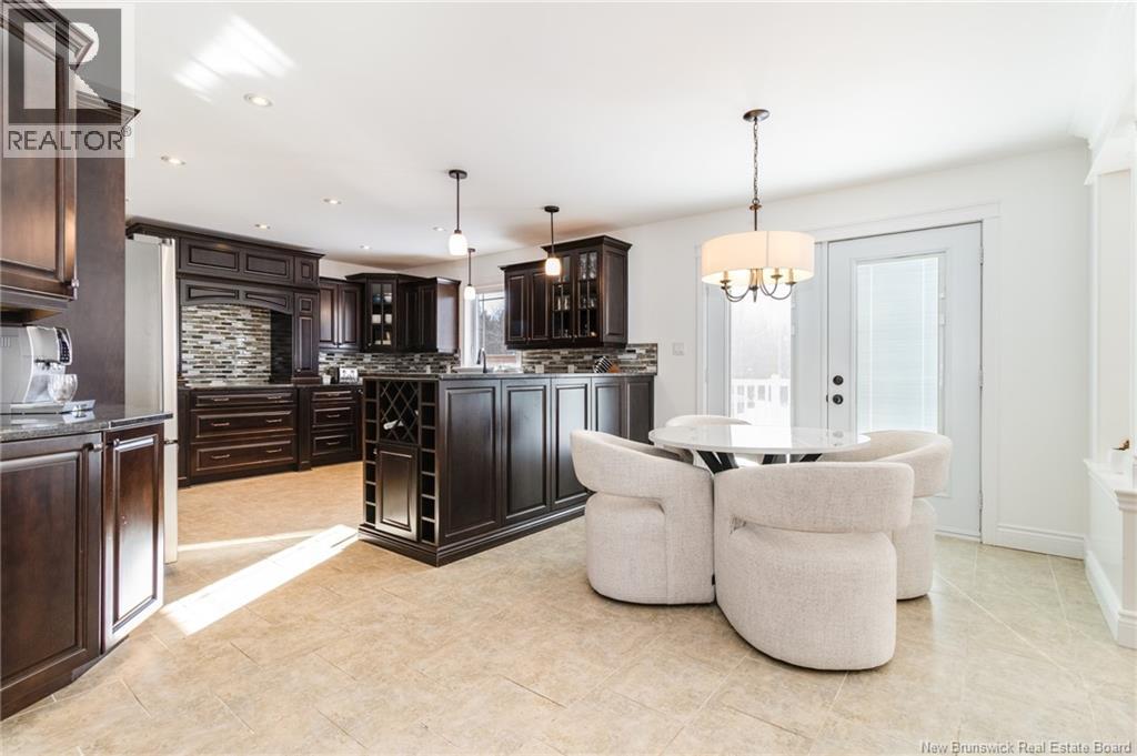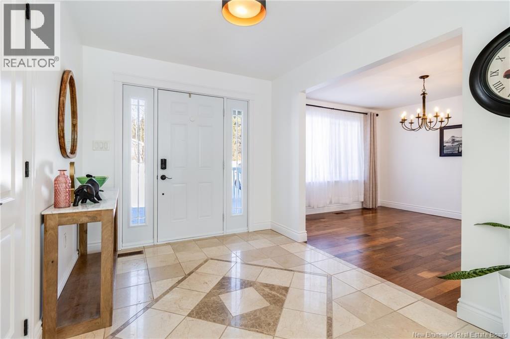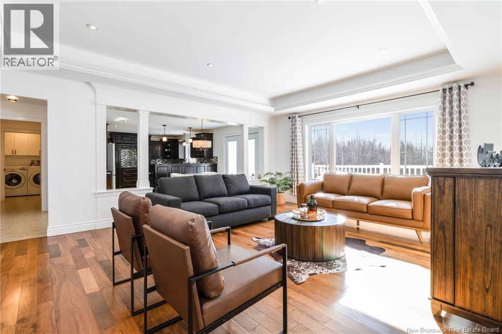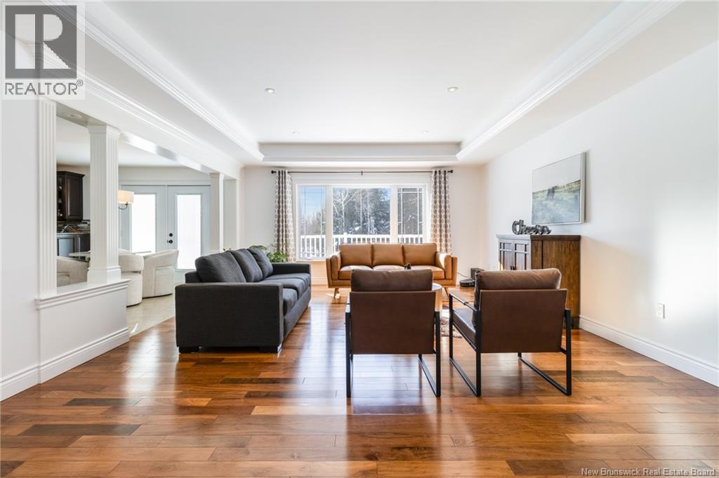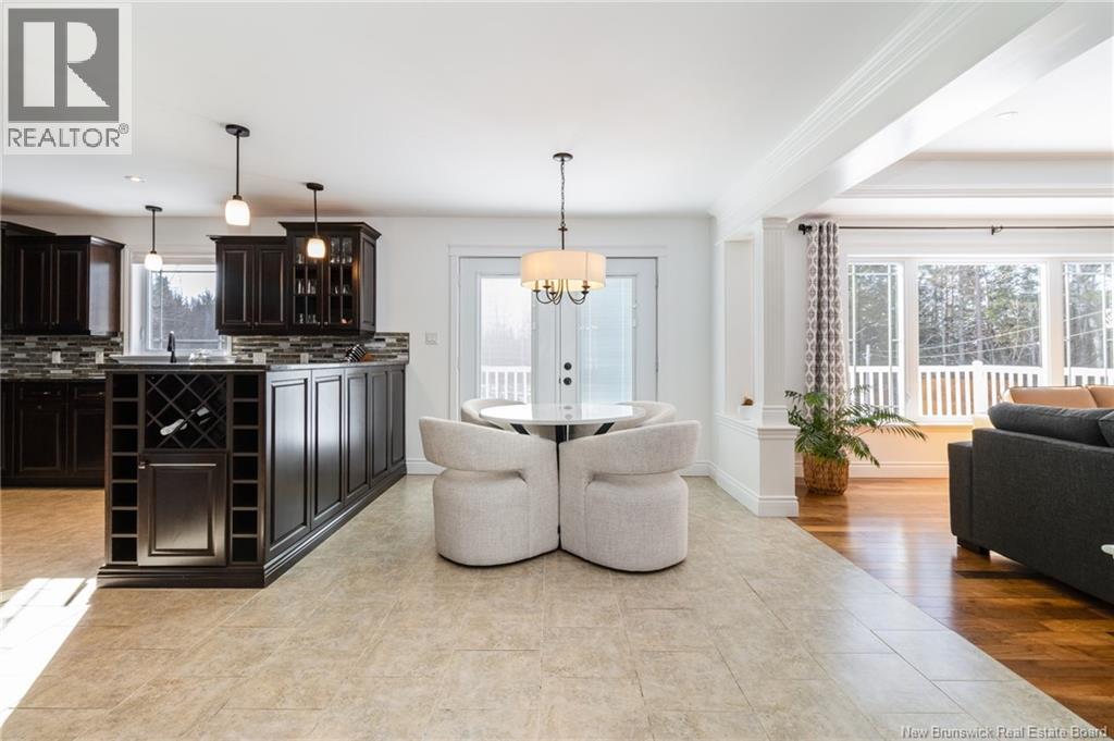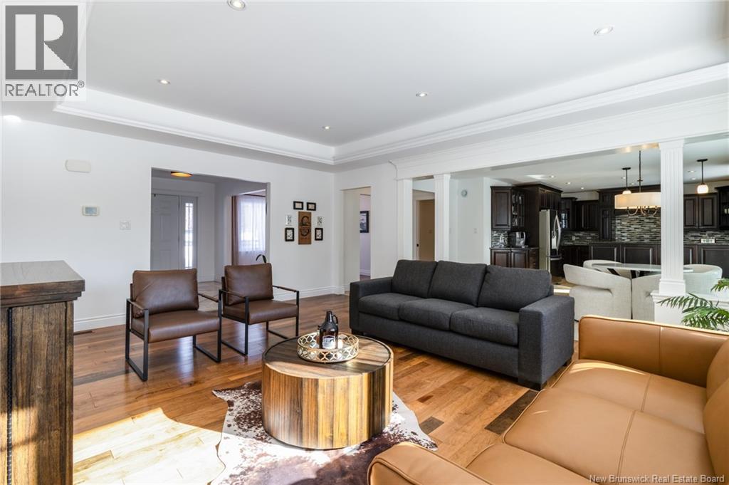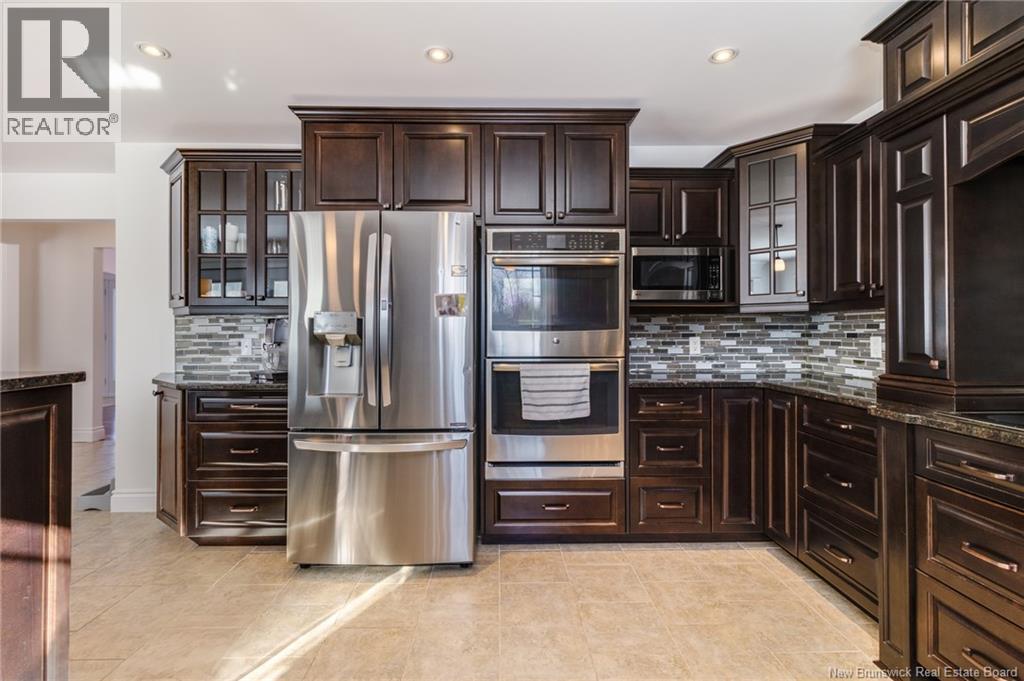 Stunning 5-bedroom, 3-bath bungalow with an oversized double garage, ideally situated in Rusagonis just minutes from both Oromocto and Fredericton. Step inside to a large front foyer with marble floors. The bright living room features gleaming hardwood floors accented by elegant white columns. The chef-inspired kitchen offers granite countertops, rich dark cabinetry, double wall ovens, stainless steel appliances, and direct access to the back deckperfect for entertaining. Adjacent is a formal dining room designed for memorable family gatherings. A generous mudroom with laundry area and interior access to the garage is just off the kitchen. The main level is completed by a spacious primary bedroom with walk-in closet and ensuite featuring a tiled walk-in shower, two additional bedrooms, and a full bathroom. Downstairs, youll find an expansive rec room with walkout access, a theatre room with projector, two more bedrooms, a full bath, and a dedicated office space. Additional highlights include ample storage throughout, an efficient heat pump, and a rear garage door ideal for storing recreational equipment. Above ground pool with large deck and privacy fence. (29449964)