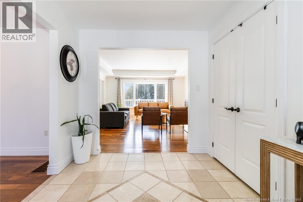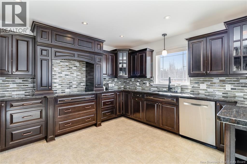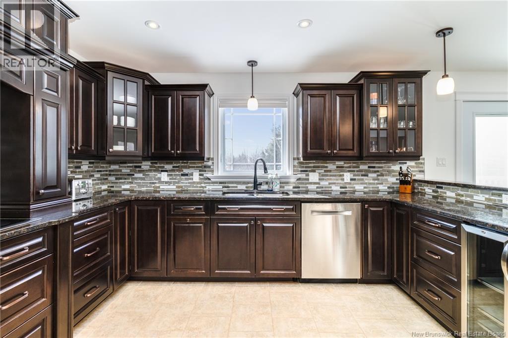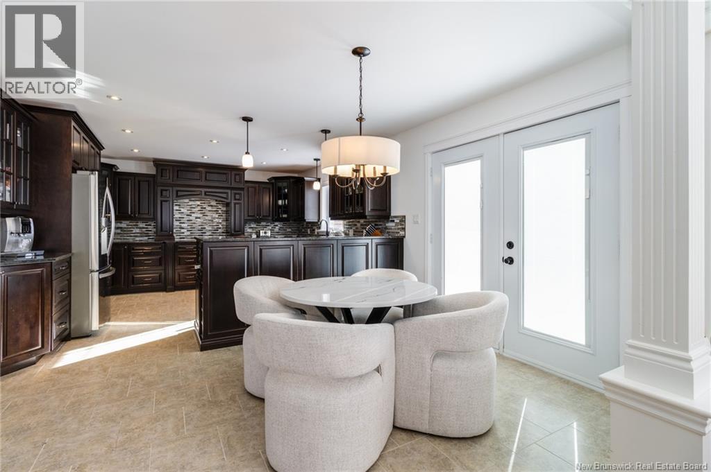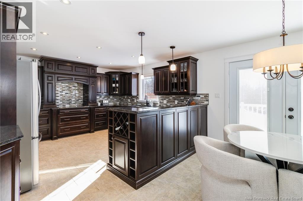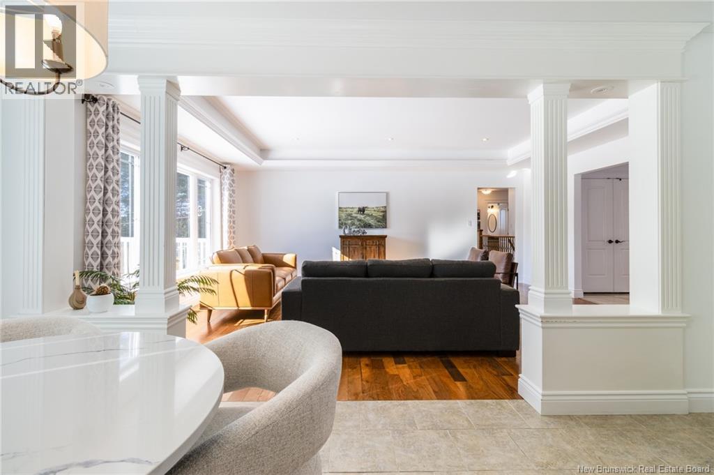 Stunning 5-bedroom, 3-bath bungalow with an oversized double garage, ideally situated in Rusagonis just minutes from both Oromocto and Fredericton. Step inside to a large front foyer with marble floors. The bright living room features gleaming hardwood floors accented by elegant white columns. The chef-inspired kitchen offers granite countertops, rich dark cabinetry, double wall ovens, stainless steel appliances, and direct access to the back deckperfect for entertaining. Adjacent is a formal dining room designed for memorable family gatherings. A generous mudroom with laundry area and interior access to the garage is just off the kitchen. The main level is completed by a spacious primary bedroom with walk-in closet and ensuite featuring a tiled walk-in shower, two additional bedrooms, and a full bathroom. Downstairs, youll find an expansive rec room with walkout access, a theatre room with projector, two more bedrooms, a full bath, and a dedicated office space. Additional highlights include ample storage throughout, an efficient heat pump, and a rear garage door ideal for storing recreational equipment. Above ground pool with large deck and privacy fence. (29449964)