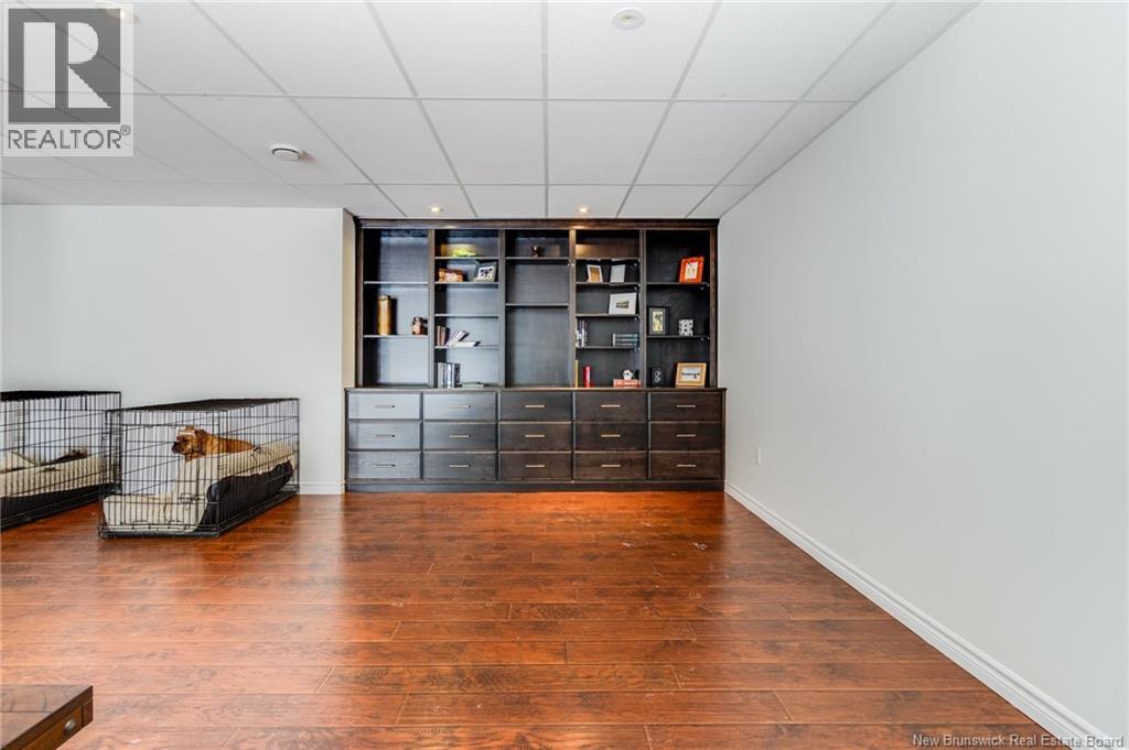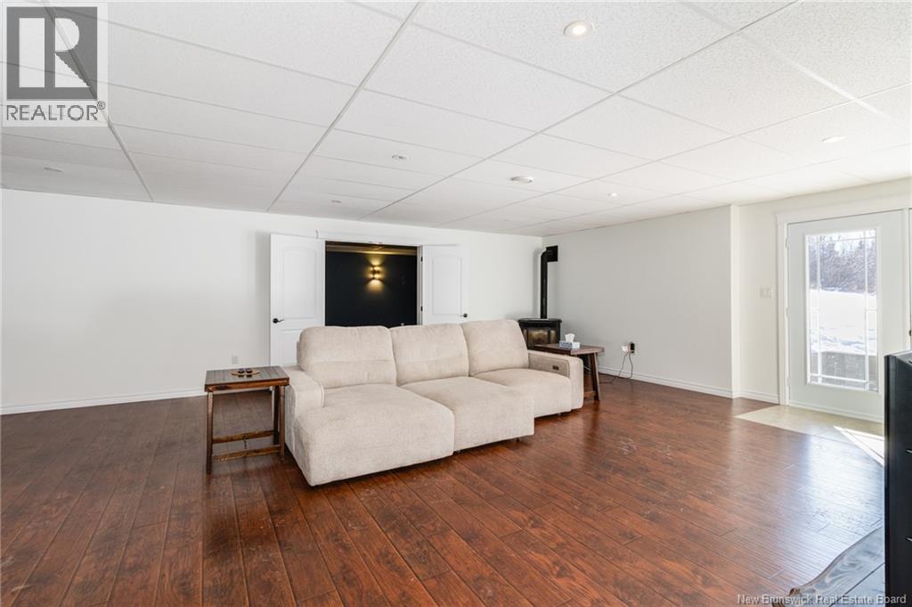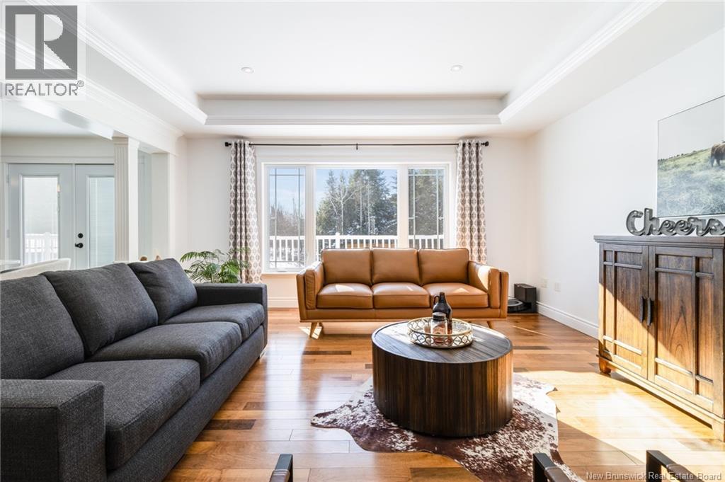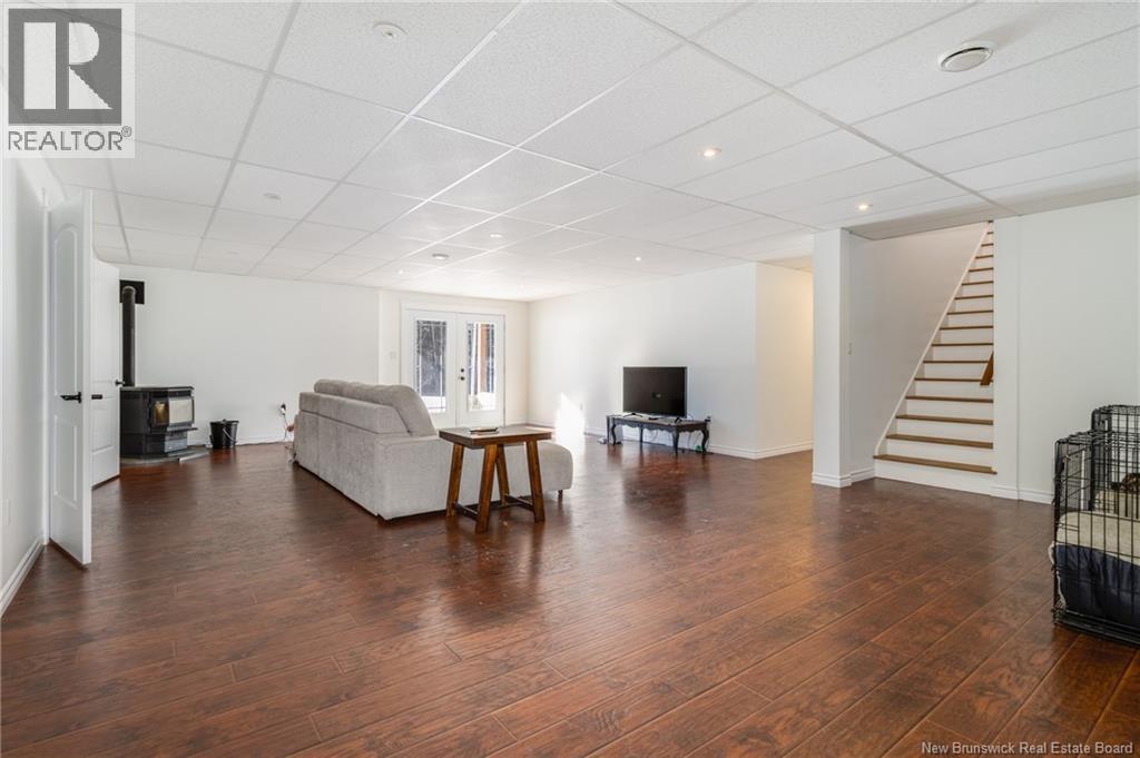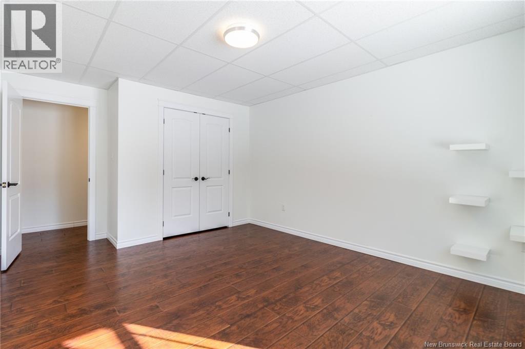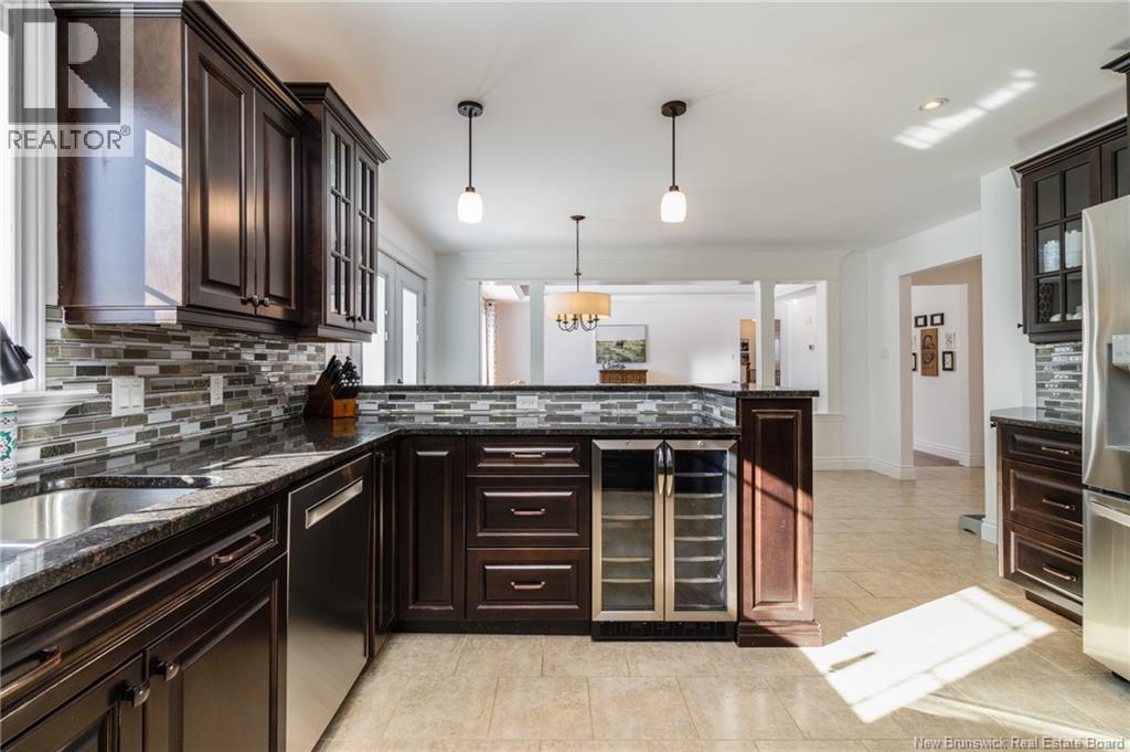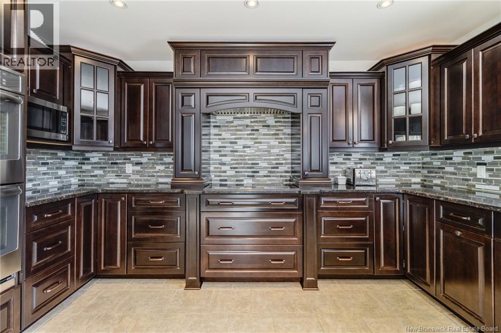 Stunning 5-bedroom, 3-bath bungalow with an oversized double garage, ideally situated in Rusagonis just minutes from both Oromocto and Fredericton. Step inside to a large front foyer with marble floors. The bright living room features gleaming hardwood floors accented by elegant white columns. The chef-inspired kitchen offers granite countertops, rich dark cabinetry, double wall ovens, stainless steel appliances, and direct access to the back deckperfect for entertaining. Adjacent is a formal dining room designed for memorable family gatherings. A generous mudroom with laundry area and interior access to the garage is just off the kitchen. The main level is completed by a spacious primary bedroom with walk-in closet and ensuite featuring a tiled walk-in shower, two additional bedrooms, and a full bathroom. Downstairs, youll find an expansive rec room with walkout access, a theatre room with projector, two more bedrooms, a full bath, and a dedicated office space. Additional highlights include ample storage throughout, an efficient heat pump, and a rear garage door ideal for storing recreational equipment. Above ground pool with large deck and privacy fence. (29449964)