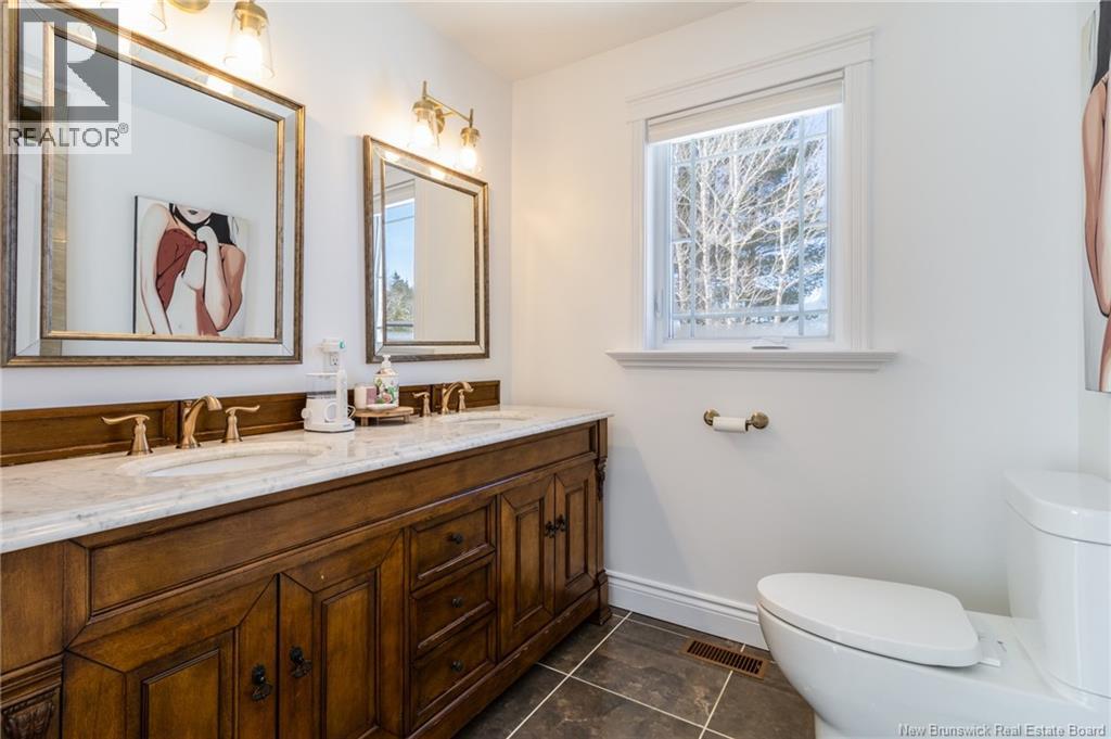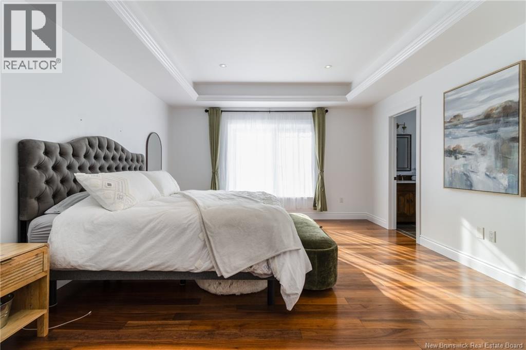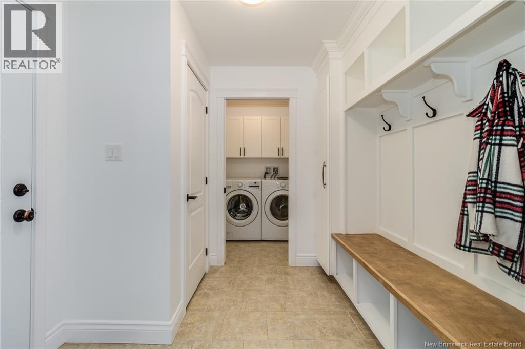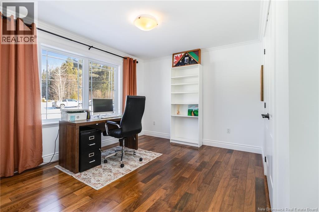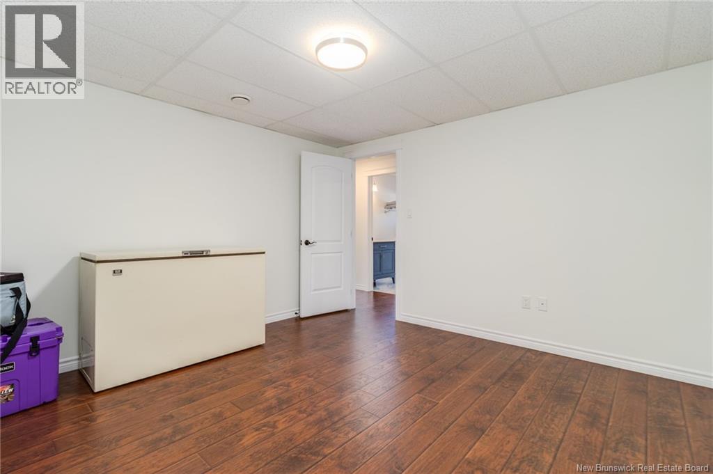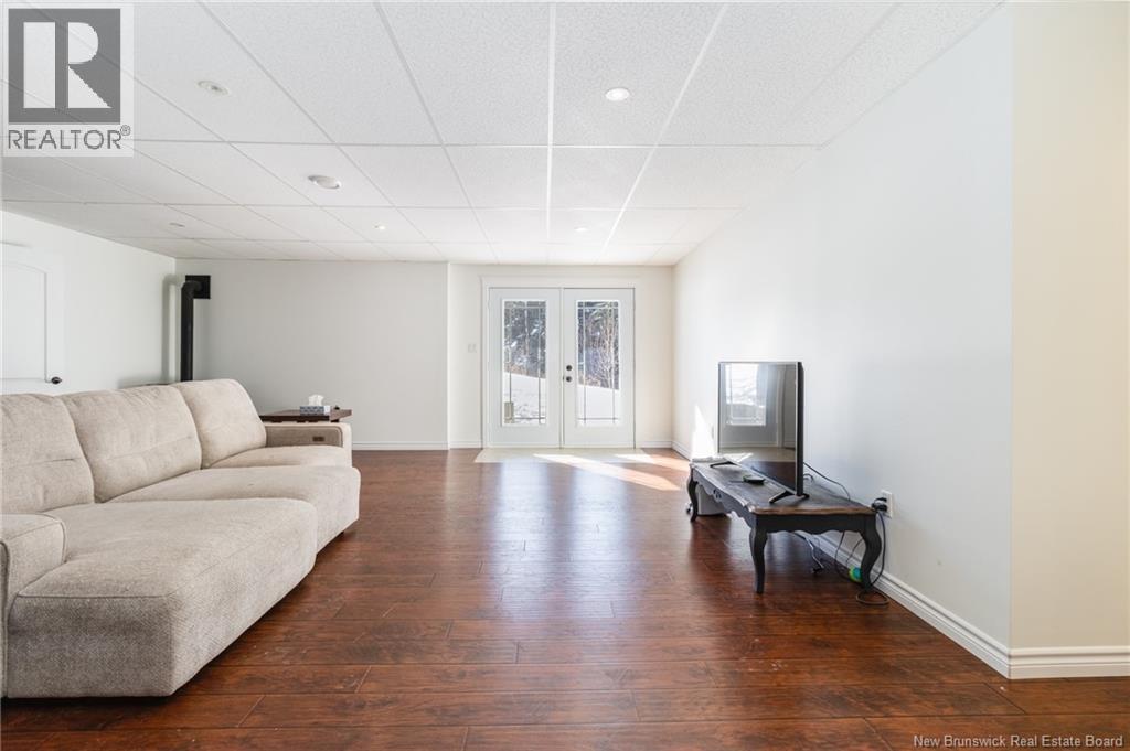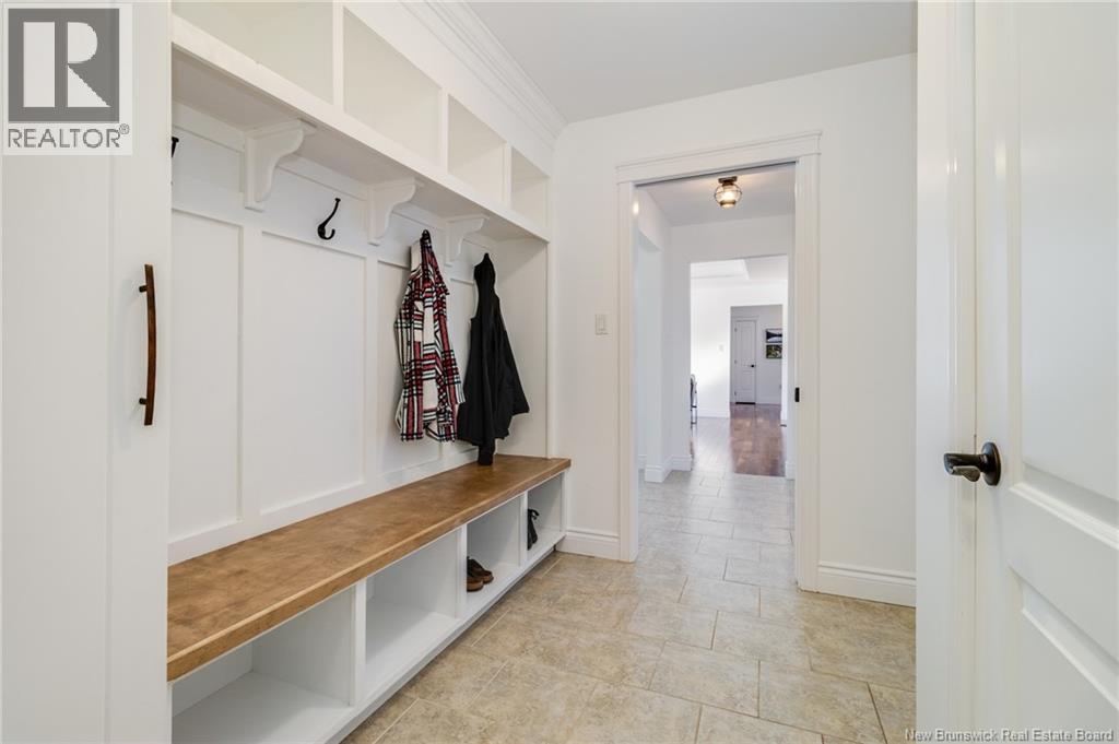 Stunning 5-bedroom, 3-bath bungalow with an oversized double garage, ideally situated in Rusagonis just minutes from both Oromocto and Fredericton. Step inside to a large front foyer with marble floors. The bright living room features gleaming hardwood floors accented by elegant white columns. The chef-inspired kitchen offers granite countertops, rich dark cabinetry, double wall ovens, stainless steel appliances, and direct access to the back deckperfect for entertaining. Adjacent is a formal dining room designed for memorable family gatherings. A generous mudroom with laundry area and interior access to the garage is just off the kitchen. The main level is completed by a spacious primary bedroom with walk-in closet and ensuite featuring a tiled walk-in shower, two additional bedrooms, and a full bathroom. Downstairs, youll find an expansive rec room with walkout access, a theatre room with projector, two more bedrooms, a full bath, and a dedicated office space. Additional highlights include ample storage throughout, an efficient heat pump, and a rear garage door ideal for storing recreational equipment. Above ground pool with large deck and privacy fence. (29449964)