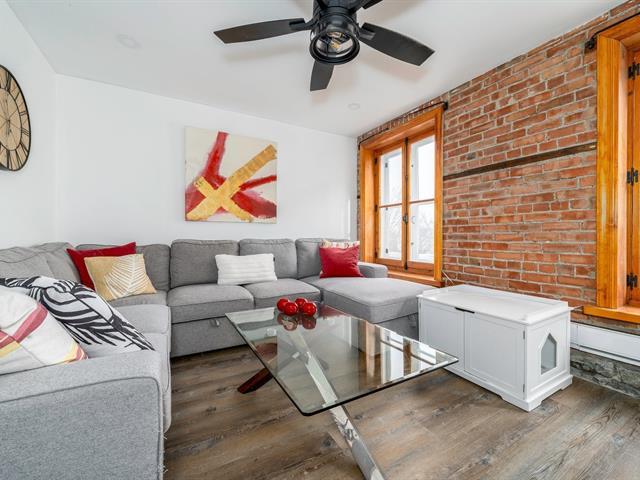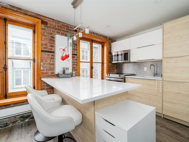 Live in the heart of history and enjoy a unique living environment in the sought-after Latin Quarter. This charming 3 ½-room condo will seduce you with its unique cachet, exposed brick and stone walls and exceptional location. On the top floor (3rd), this one-bedroom condo offers plenty of natural light thanks to its many windows. The kitchen and bathroom have been tastefully renovated. Last but not least, a private terrace with a breathtaking view over the neighborhood rooftops. Windows and main entrance door have been replaced. On-site laundry facilities. Vignette or paid parking nearby. Rental of 31 days or more and pets allowed. (52371060)