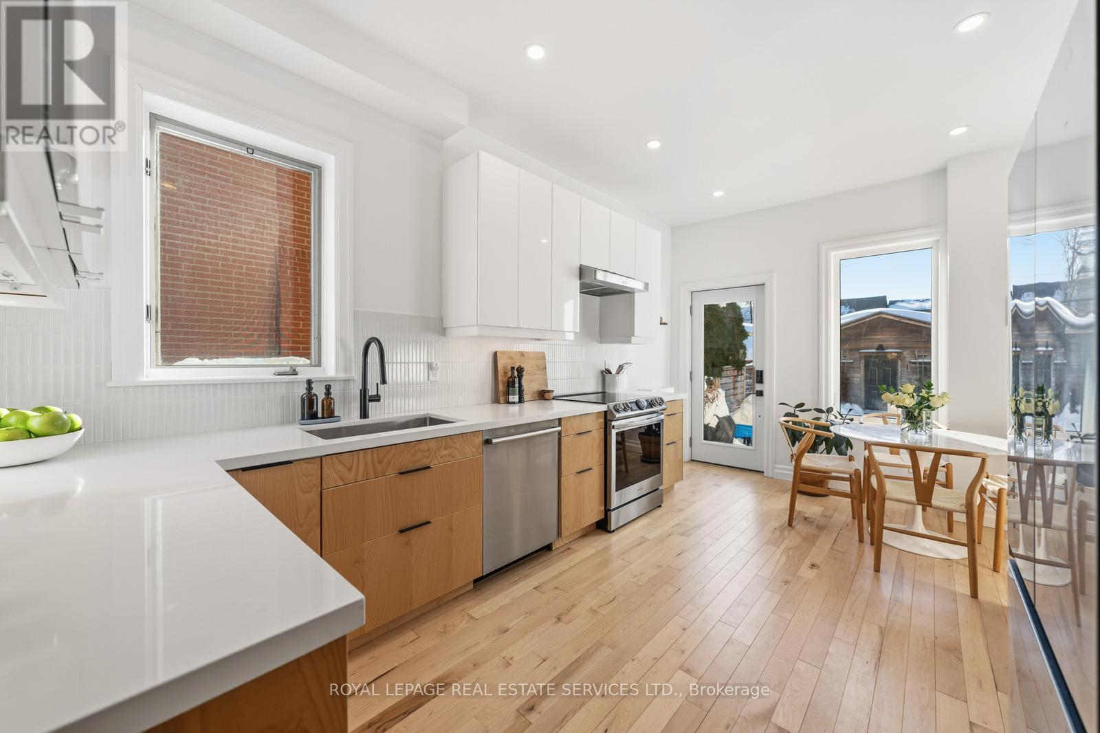 Welcome to 266 Delaware Avenue - a beautifully renovated red brick end of row house (like a semi-detached) set on a 14 x 127 ft lot in the heart of Dovercourt Village, offering over 2000sqft of living space. Built in 1898, this character-rich home seamlessly blends timeless charm with thoughtful modern upgrades - all in a location that truly delivers. From the moment you arrive, the large, private front porch, framed by a mature Japanese maple, sets the tone. It's a peaceful, sun-dappled spot to relax, unwind, and enjoy the rhythm of the neighbourhood. Inside, soaring ceilings, and abundant natural light create an airy, welcoming feel. The living room is anchored by a stunning window, decorative fireplace, and new hardwood floors, flowing effortlessly into a generous open-concept dining area - perfect for hosting family and friends. The newly remodeled west-facing kitchen is bright, sleek, and highly functional, featuring an eat-in nook, ample cabinetry, and expansive counter space. Walk out to the beautifully landscaped backyard and new deck for seamless indoor-outdoor living, and enjoy the rare convenience of a private garage off the rear lane for parking and additional storage. The second floor offers three spacious, light-filled bedrooms, including a front-facing primary with three large windows and a double closet. A finished loft adds exceptional bonus space - ideal for a home office, playroom, or workout area. The basement features separate front and rear entrances and offers flexible space for a rec room, gym, or playroom, complete with a second bathroom, dedicated laundry room, and ample storage. There is also excellent potential to create a self-contained apartment for added income. All of this in an unbeatable, walk-everywhere location. Steps to neighbourhood favourites like Mac's Pizza, The Common, Paradise Grapevine, and Fiesta Farms, with easy access to Bloor St W, Dundas West and Geary Avenue. (42069294)