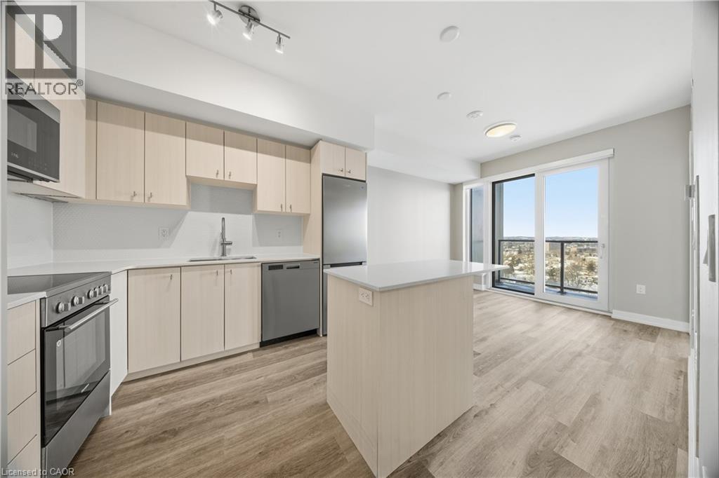 Located in the heart of Kitchener's Innovation District, this modern 1 bedroom plus den suite offers an ideal blend of urban convenience and upscale living. The home features a smart, carpet-free layout highlighted by upgraded vinyl plank flooring throughout, creating a clean and contemporary feel. The kitchen is outfitted with brand-new stainless steel appliances, a stylish breakfast island, and plenty of functional space, while a stackable washer and dryer are included for everyday ease. Step outside to enjoy your own private 45 sq. ft. balcony-perfect for relaxing or entertaining. Transit access couldn't be easier, with the LRT right outside the building, connecting you seamlessly to both Kitchener and Waterloo. The University of Waterloo and McMaster's School of Medicine are each reachable in approximately 15 minutes by transit, and major tech employers such as Google are just moments away, making this an exceptional location for both professionals and students. As an added bonus, this unit comes with an AIRBNB licence! Residents of Union Towers at Station Park enjoy access to an impressive collection of resort-style amenities rarely found in local developments. These include a two-lane bowling alley with lounge seating, an elegant social lounge complete with bar, pool table, and foosball, a private hydropool swim spa with hot tub, and multiple fitness spaces featuring gym equipment, yoga and Pilates studios, and a dedicated Peloton room. Additional conveniences include a dog wash and pet spa, a beautifully landscaped outdoor terrace with cabana seating, and high-speed BELL internet included for residents. (70119368)