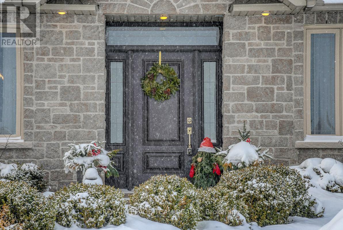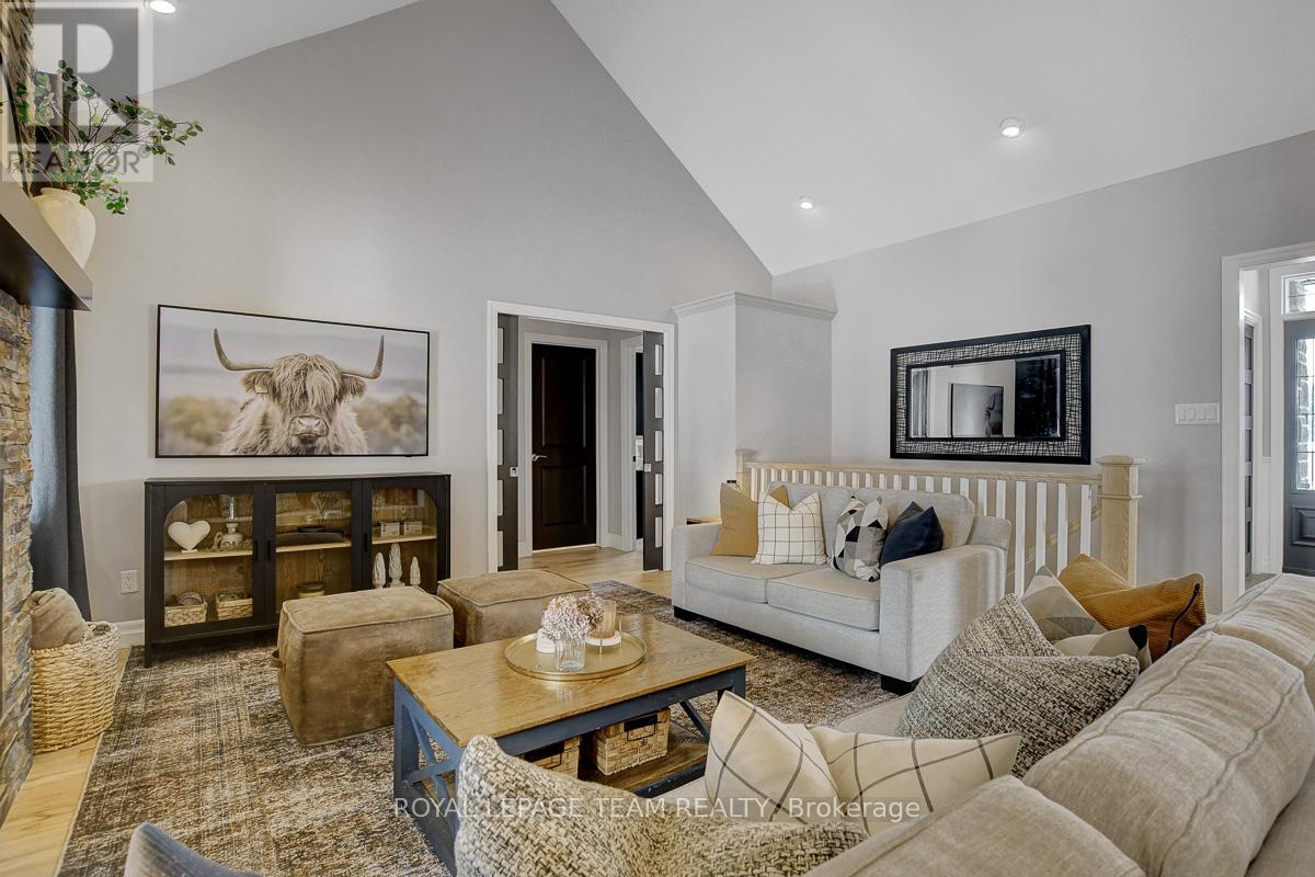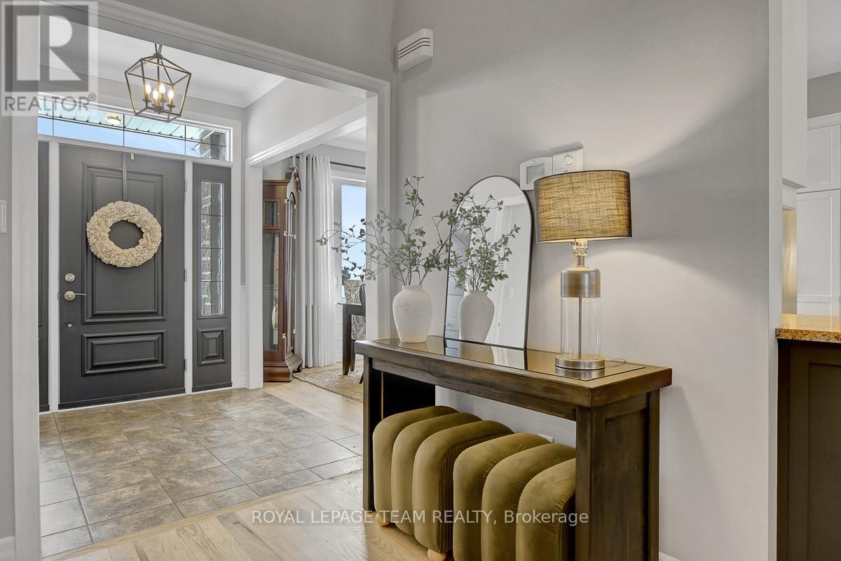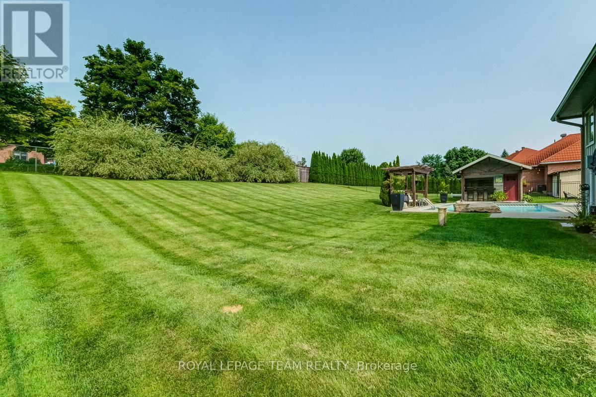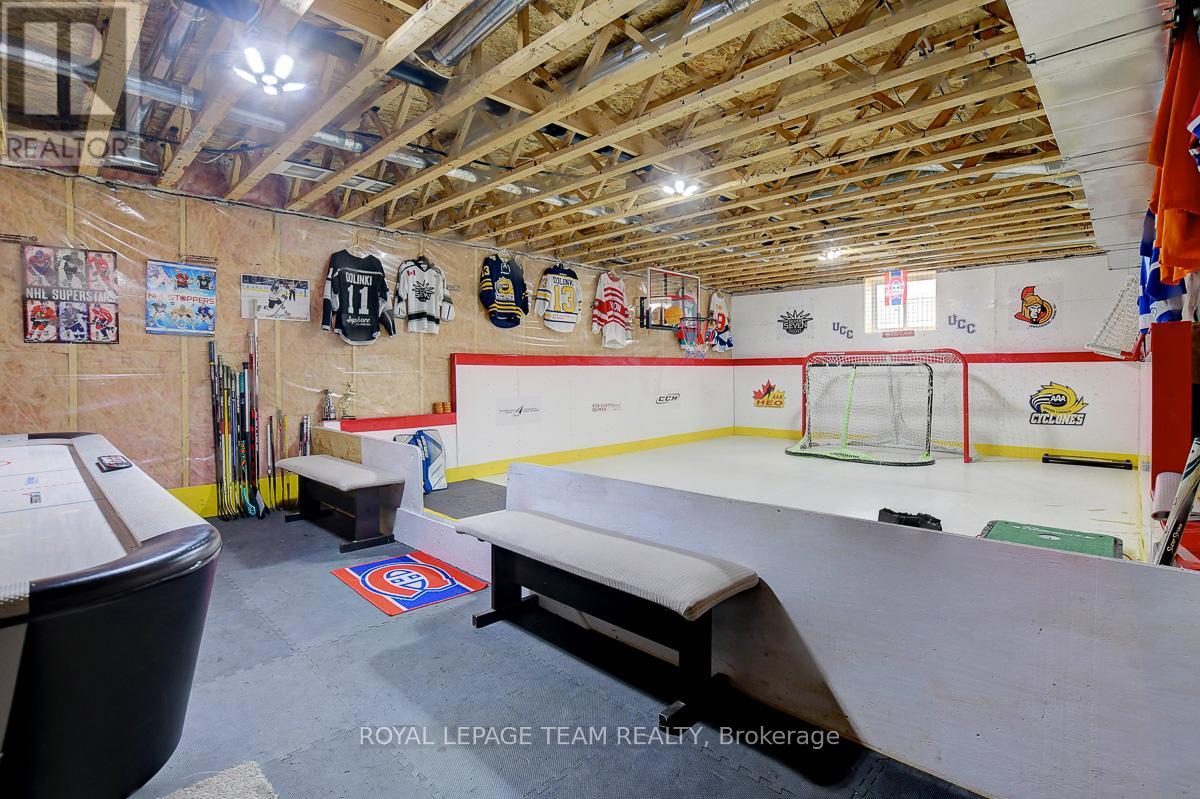 Remarkable custom bungalow makes a striking first impression with outstanding curb appeal & timeless design. Expertly crafted with quality workmanship to balance sophistication and everyday comfort. The home has been refreshed with newly refinished floors and fresh paint, giving it a bright feel throughout. Thoughtfully designed layout filled with premium features creates an atmosphere well suited to daily family life & entertaining. Central foyer connects spaces together, adjacent a front bedroom or den/office accented by custom millwork, a refined formal dining area, and an impressive great room boasting 16-foot vaulted ceilings and a cozy gas fireplace. Open concept kitchen fit for a chef offers quartz countertops, high-end cabinetry and appliances, a large peninsula with seating, and a generous eat-in area.Tucked privately away from the main living spaces, the primary suite is a peaceful retreat with a spa-inspired ensuite bath. Two additional bedrooms are located in their own wing, sharing a full bath and creating a functional, family-friendly layout. Finished laundry and mudroom off the double garage adds everyday practicality with plenty of storage & organization space. Fully finished basement elevates this home's versatility, offering a dynamic recreation area complete with a dry bar, games zone, home gym, and a unique mini rink with skateable tiles. With room for potential additional bedrooms and a bathroom already roughed in, the lower level is ready to adapt to changing family needs. Outdoors, the backyard is nothing short of a private resort. Designed for year-round enjoyment, it features a 16x32 heated saltwater pool with pool house & bar, a relaxing hot tub, fire pit, a large partially covered deck, and an expansive lawn ideal for children and pets. Set in the family-friendly community of North Gower, home is surrounded by parks, golf courses, excellent schools, with shopping and dining minutes away. Quick access to Highway 416, Kemptville & Barrhaven. (42069479)