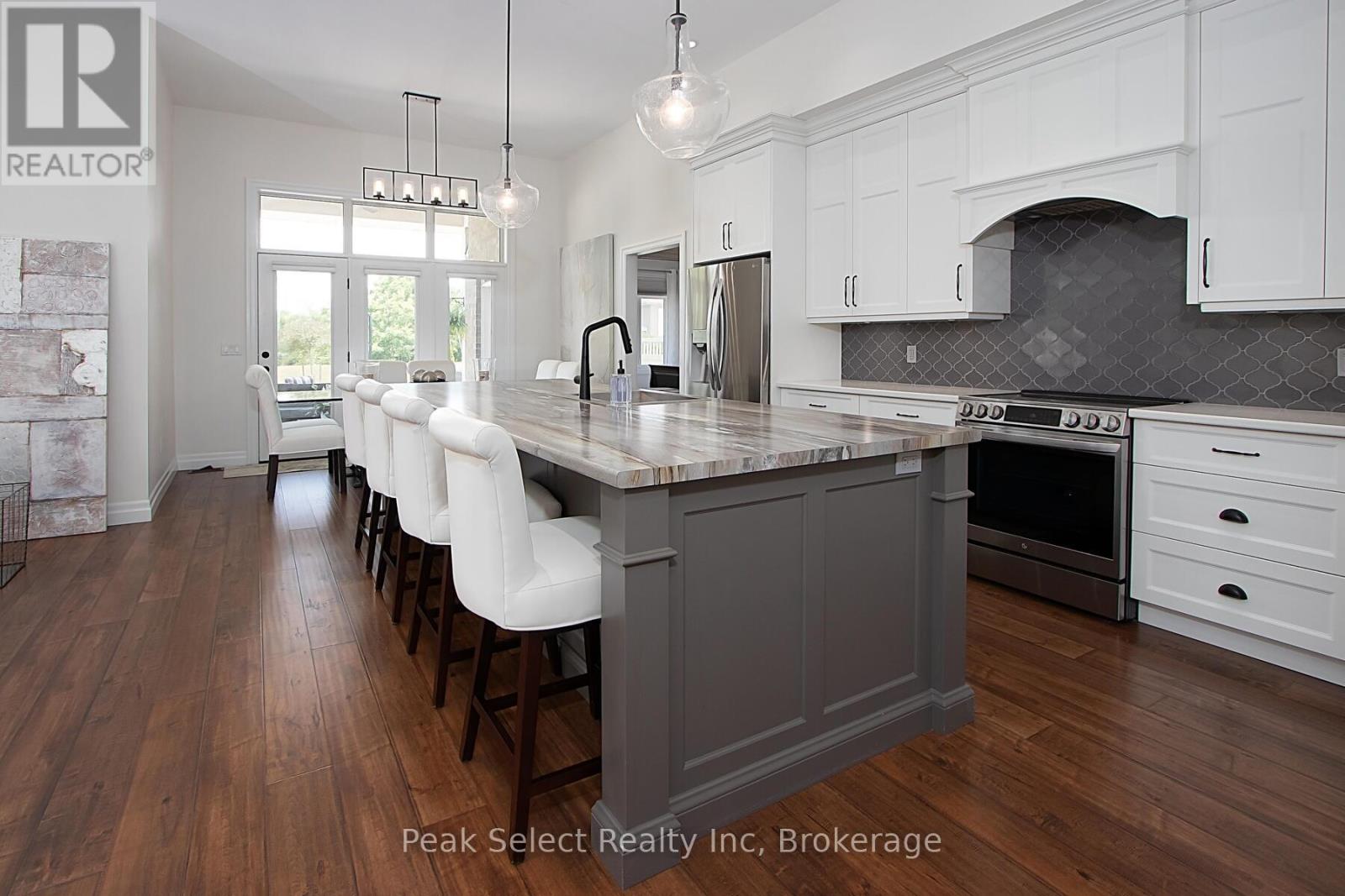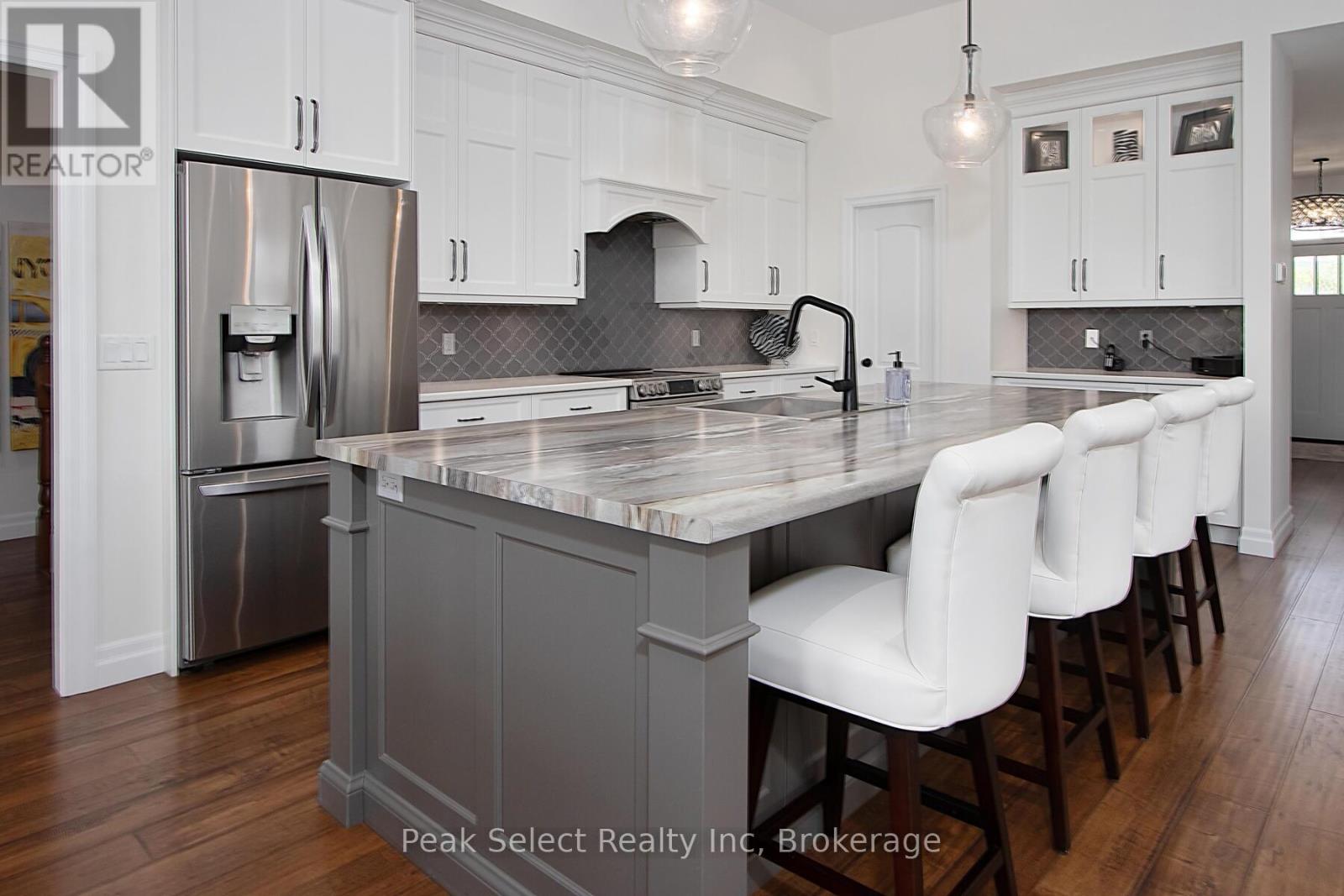 Nestled in a tranquil cul-de-sac, this exceptional bungalow truly stands out. Built in 2018, it boasts an impressive pie-shaped lot of just under half an acre and offers a remarkable 4,519 square feet of finished living space 2,411 square feet on the main floor and a fully finished lower level of 2,108 square feet, with potential for an in-law suite. Thoughtfully designed for both daily living and entertaining, the open-concept main level features smooth ceilings, recessed lighting, and gleaming hardwood floors throughout. The chef-inspired kitchen serves as the heart of the home, equipped with an oversized island, abundant cabinetry, a walk-in pantry, and generous counter space. This space flows seamlessly into the dining area and a welcoming living room, complete with a gas fireplace. Oversized windows frame serene views of the beautifully landscaped backyard, filling the home with natural light. The private primary retreat is a true sanctuary, featuring a spa-like ensuite with a Coni marble shower base, a frameless glass door, and a walk-in closet, along with its own access to the backyard, perfect for morning coffee or evening relaxation. Two additional bedrooms and a stylish 4-piece bathroom are conveniently located at the front of the home. The finished lower level continues to impress, showcasing oversized lookout windows, a spacious family room with a gas fireplace, a wet-bar-ready area, two additional bedrooms, a full bathroom, and ample storage-ideal for teens, guests, or multigenerational living. Step outside to enjoy your private backyard oasis, featuring a newly constructed expansive patio, professionally landscaped grounds, and a hot tub for year-round relaxation. With 5 bedrooms, 3.5 bathrooms, and endless space to live, gather, and grow, this remarkable home offers the lifestyle you've been waiting for-just steps away from schools, parks, trails, the recreation centre, and downtown St. Marys! (42069430)