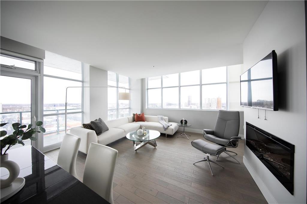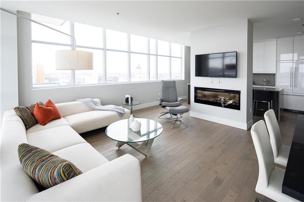 9A//Winnipeg/390 Assiniboine - the most impressive new address in the city center. Discover upscale living in Winnipeg s vibrant downtown, just steps away from the Assiniboine River Walk, Canada Life Centre and so much more. Enjoy views of the sunset, river and Legislative Building from the balcony, and the sophistication of hardwood floors, ceramic tile and smooth walls/ceilings. Connoisseurs will love the quartz counter-tops, modern cabinets, under-mount sinks and integrated Jenn-Air/Fisher Paykel appliances. Party room with a 2,364 sqft landscaped terrace with beautiful river views, contemporary dining/lounge area with fireplace and pool table, and fitness studio with premium equipment. This distinctive new building also features a 2-storey lobby, unique above-grade parkade and guest suite. A private path lights your way to Winnipeg s favorite river walk. MEASUREMENTS ARE +/- JOGS. (231918820)