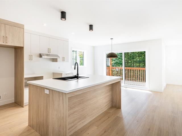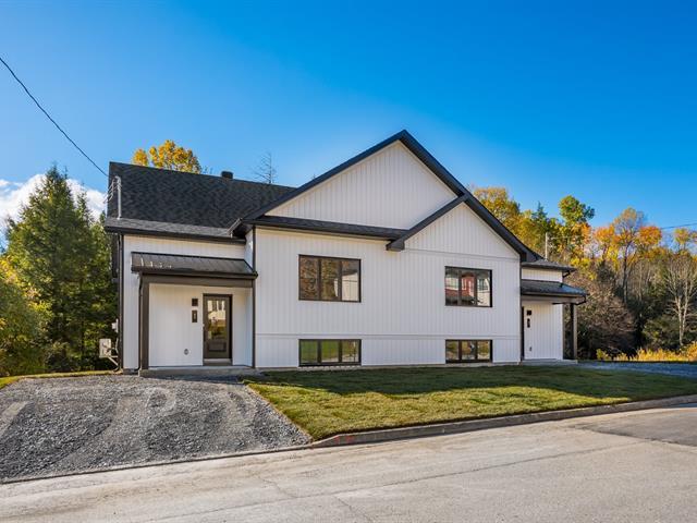 Semi-detached bungalow located in a residential area of Lennoxville, on a wooded lot crossed by a stream. This unit on the left has 3 bedrooms and 2 bathrooms. The open-concept ground floor consists of a kitchen with ceiling-to-ceiling cabinets, an island with a lunch counter and double sink, a dining room with a patio door and a living room. The master bedroom has a walk-in closet and the bathroom has a bathtub and a glass/ceramic shower. Its basement/garden level has 2 bedrooms, 1 bathroom and 1 laundry room. At the rear, 2 covered balconies with a view of a stream. Close to all services! GST/QST must be added to the asking price (56706282)