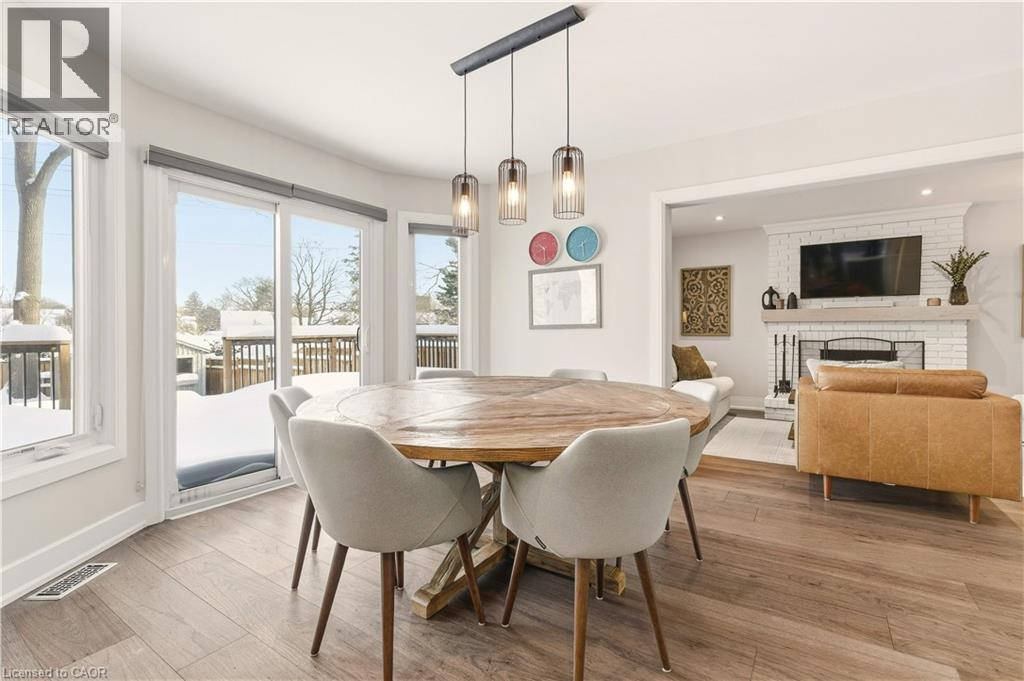 Welcome to this beautifully redesigned 4+1 bedroom detached home that perfectly blends modern elegance with cozy charm. This meticulously updated home invites you to experience the best of Downtown Burlington living. As you enter, a spacious foyer leads to a versatile family room, ideal for relaxation or as a stylish office. Large windows with California shutters bathe the room in natural light, complemented by a custom bench featuring convenient storage drawers. Step into the entertainer's dream kitchen, showcasing custom sage colored cabinetry, gold hardware, and stunning white quartz countertops. With a suite of six appliances, a custom shiplap range hood, & crown molding, this kitchen is both functional & beautiful. And a hidden walk-in pantry includes a stand-up freezer & bar fridge, perfect for all your culinary needs. The inviting living room is complete with a brick wood-burning fireplace & custom floating shelves, creating a warm atmosphere for gatherings. Also on the main floor, an updated 2p powder room & an impressive laundry center with custom cabinetry, a laundry sink, & doggy spa! Venture upstairs to discover a luxurious primary retreat featuring a spacious bedroom & an oversized, custom walk-in closet. The updated 4pc ensuite offers 2 sinks & walk-in glass shower, plus a makeup centre. 3 additional bedrooms, all w/double closets, provide ample space for family or guests. The fully finished lower lvl is a blank canvas w/ a beautifully updated 3pc bath to add versatility to this level. Step outside to your private oasis—situated on a 141 ft deep lot that opens onto green space. Enjoy a large custom deck, perfect for entertaining or unwinding with no rear neighbours. Double garage, double driveway. Remoderization completed in 2021 including; Furnace, A/C, Windows. Prime location just steps to downtown, walking paths, schools & shopping, this home is a unique gem in Burlington. Embrace the vibrant lifestyle & make this stunning property your new home! (70118473)