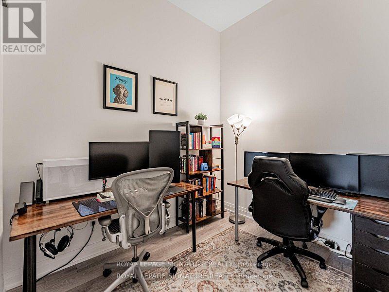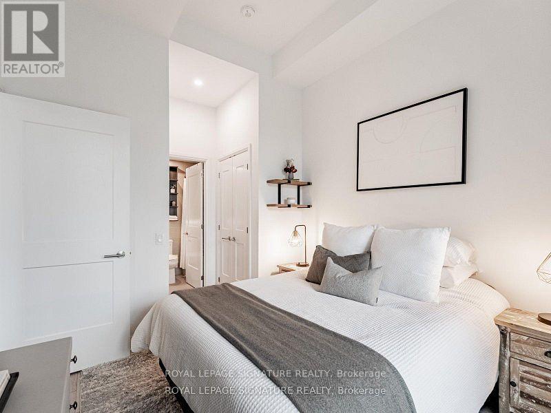 A thoughtfully designed 1-bedroom + enclosed den offering the flexibility to live as a 2-bedroom in the heart of Port Credit. This 688 sq. ft. suite at Edenshaw's TANU Condos features a fully enclosed den with sliding doors, large enough to comfortably function as a second bedroom or a spacious home office (see floor plan). Combined with exclusive 11-ft ceilings (ground-floor only) and large windows, the space feels open, bright, and more expansive than typical 1+den layouts. The modern kitchen includes integrated appliances, sleek cabinetry, and a functional open-concept layout ideal for everyday living. Smart-home technology, keyless entry, and premium amenities include a fitness centre, co-working space, party room, media room, and more. One underground parking space and one locker included. Rogers cable and unlimited internet are conveniently included in the condo fees. Well-suited to a variety of lifestyles, with a pet-friendly building and easy access to greenspace, trails, and the waterfront. Located just steps to Port Credit GO, minutes to the QEW, marina, restaurants, cafes, and boutique shops-this is walkable lakeside living with strong long-term value and rental appeal. Ideal for buyers seeking the flexibility of a second room without paying a full two-bedroom price. (42069564)