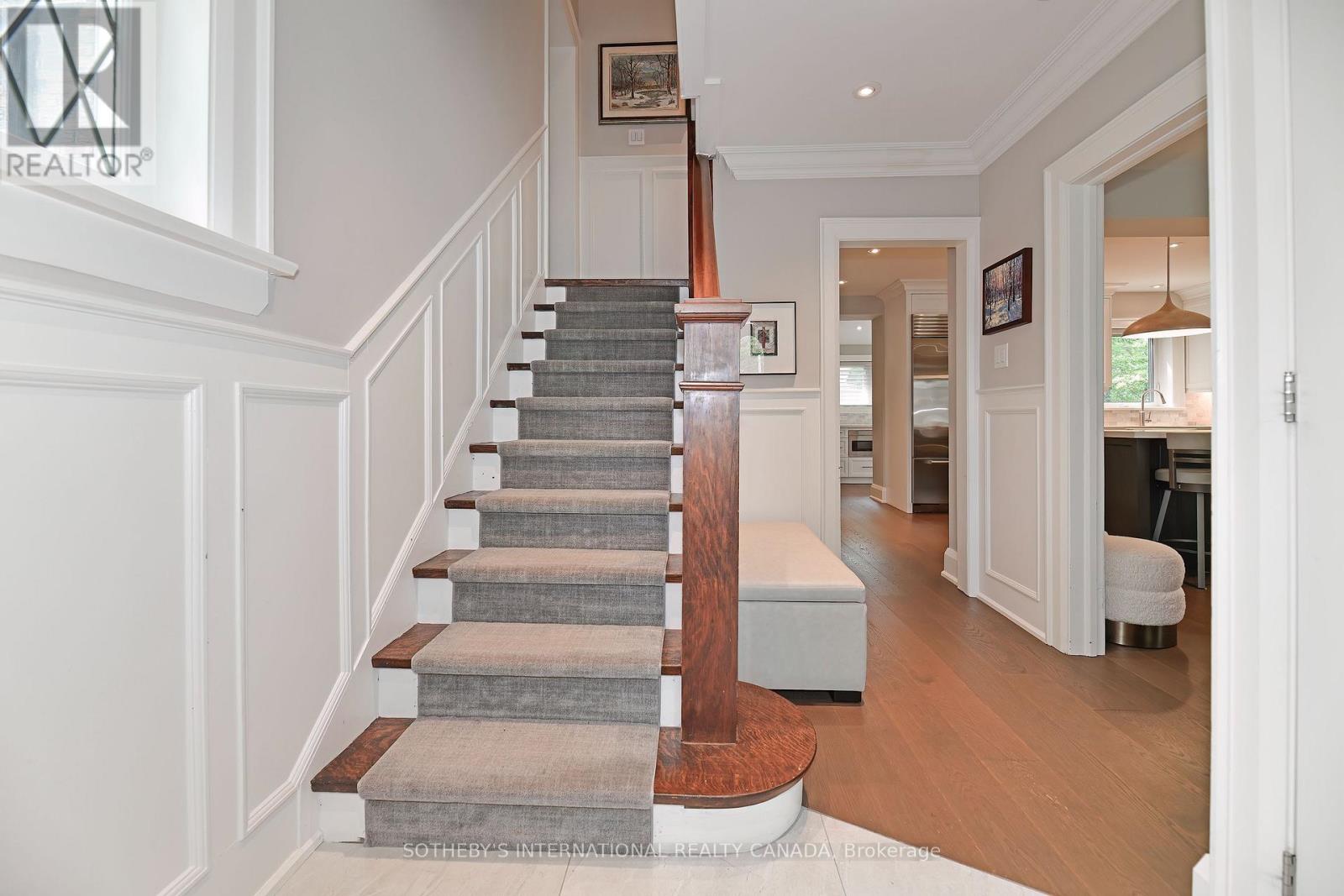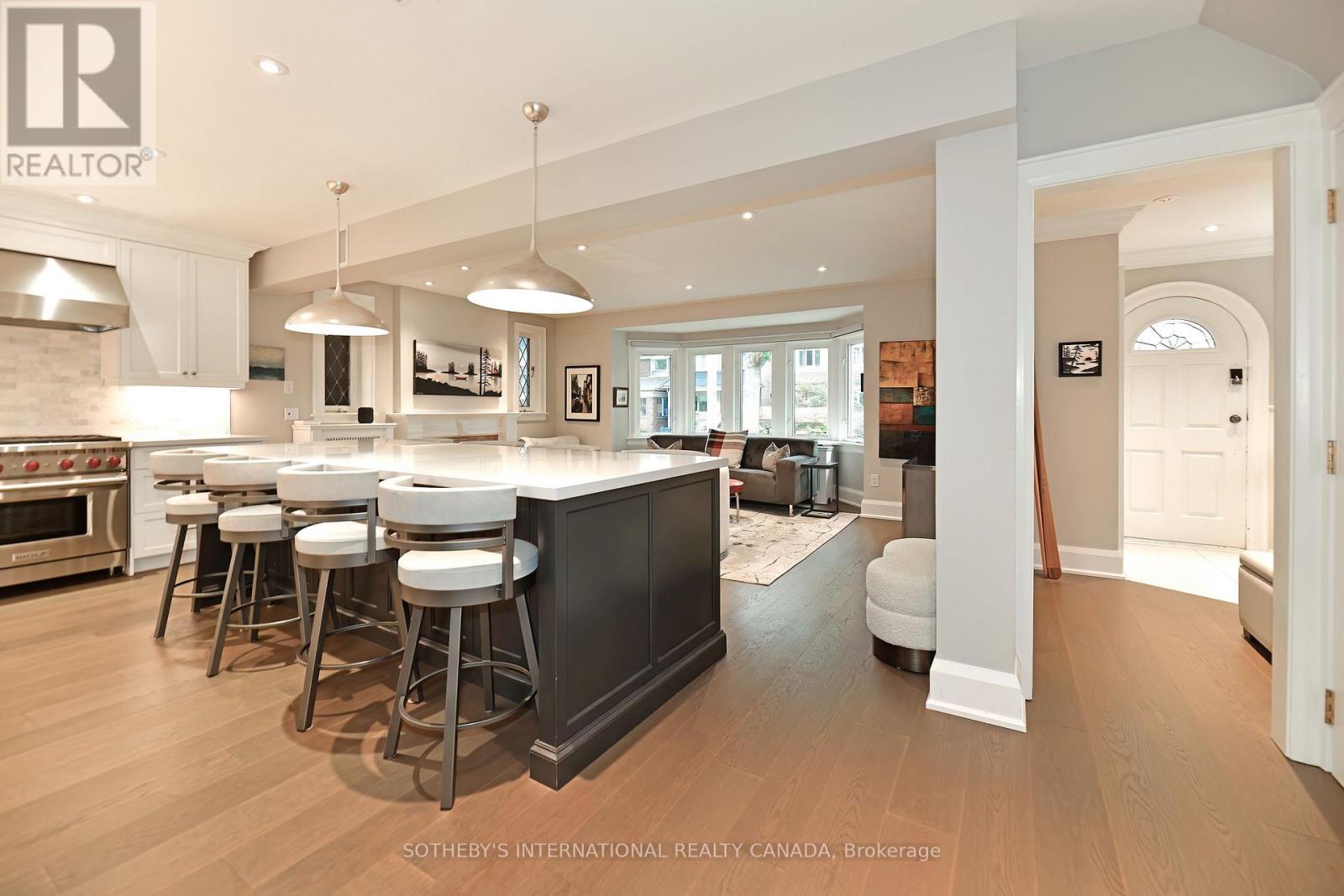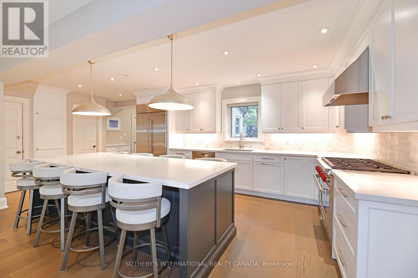 The heated private driveway, which accommodates two large cars, along with the front walkway and porch, means you will never have to shovel snow again. Crafted for the sophisticated urbanite, this home offers a dream lifestyle with an easy-to-maintain exterior that eliminates yard work. The wide frontage and perfectly sized backyard deck provide a comfortable outdoor space. You work endless hours at the office. Your home is your haven. Designed for the serious foodie, this home rejects the idea of a formal dining room. Instead, it embraces high-end, farm-to-table entertaining with a massive eight-person centre island where guests can be part of the culinary action. The kitchen is truly a cook's delight, featuring custom, top-of-the-line Lauriermax cabinetry from Quebec, a Wolf 6-burner gas stove, a Sub-Zero fridge and freezer, and double wine towers (150-bottle capacity each) in the back kitchen. A large walk-in pantry offers ample storage. The entire main floor is open-concept, combining the kitchen, eating area, and lounging space, and its generous width is immediately apparent thanks to the fifty-foot-wide lot. The upstairs configuration is perfectly suited for professional singles, couples, or small families. The smallest bedroom has been converted into a dressing room. The main bath was updated in 2023, and three additional bedrooms complete the floor plan. The finished lower level features a showstopping 910-bottle wine cellar with redwood racks and chiller, ideal for storing your collection of fine vintages. A bedroom suite with a three-piece bath is the perfect space for overnight guests. You will also find plenty of built-in storage and a large laundry room with space for a drying rack and full-sized appliances. The home's ideal location means you can stroll along Bloor West Village to visit local green grocers, bakers, florists, and patissiers. Over $400,000 in renovations are evident throughout the property. This city abode is sure to impress! (42070019)