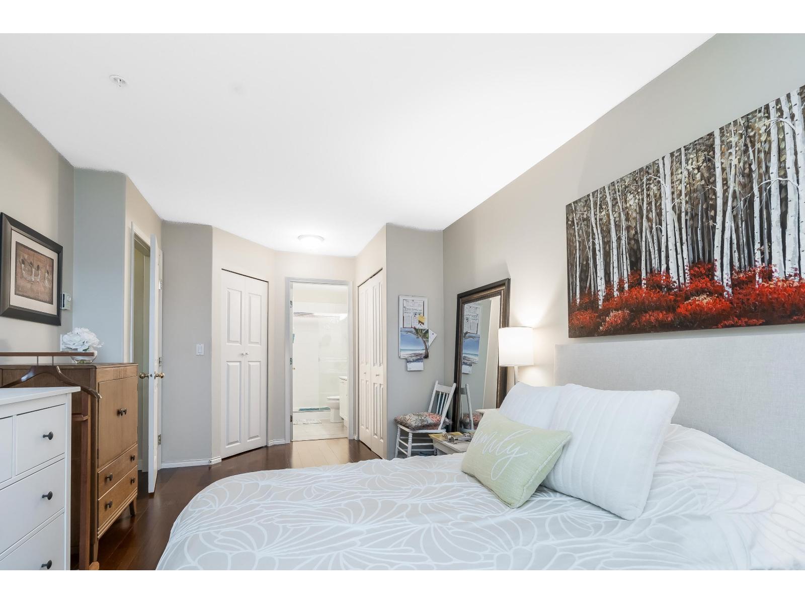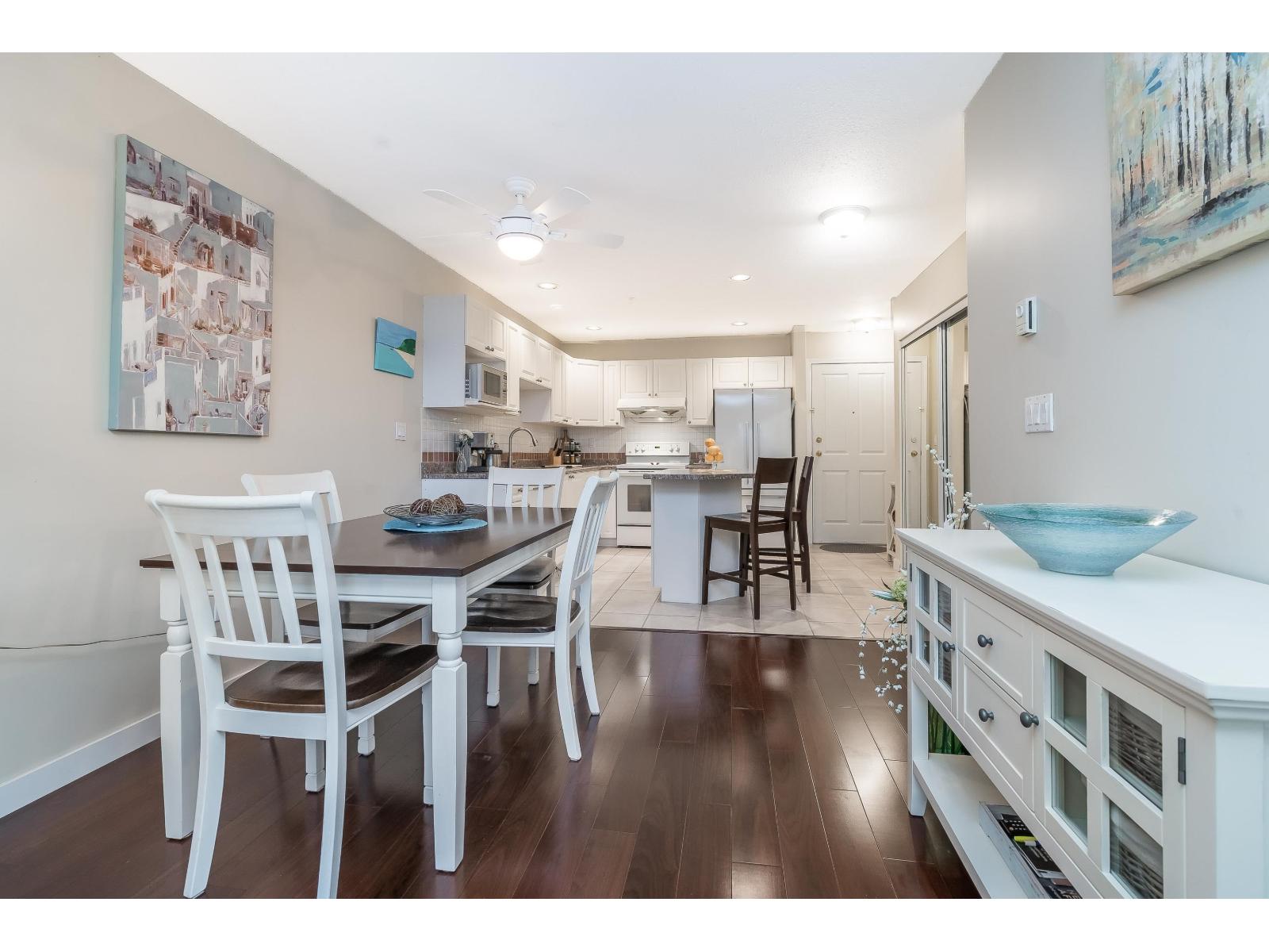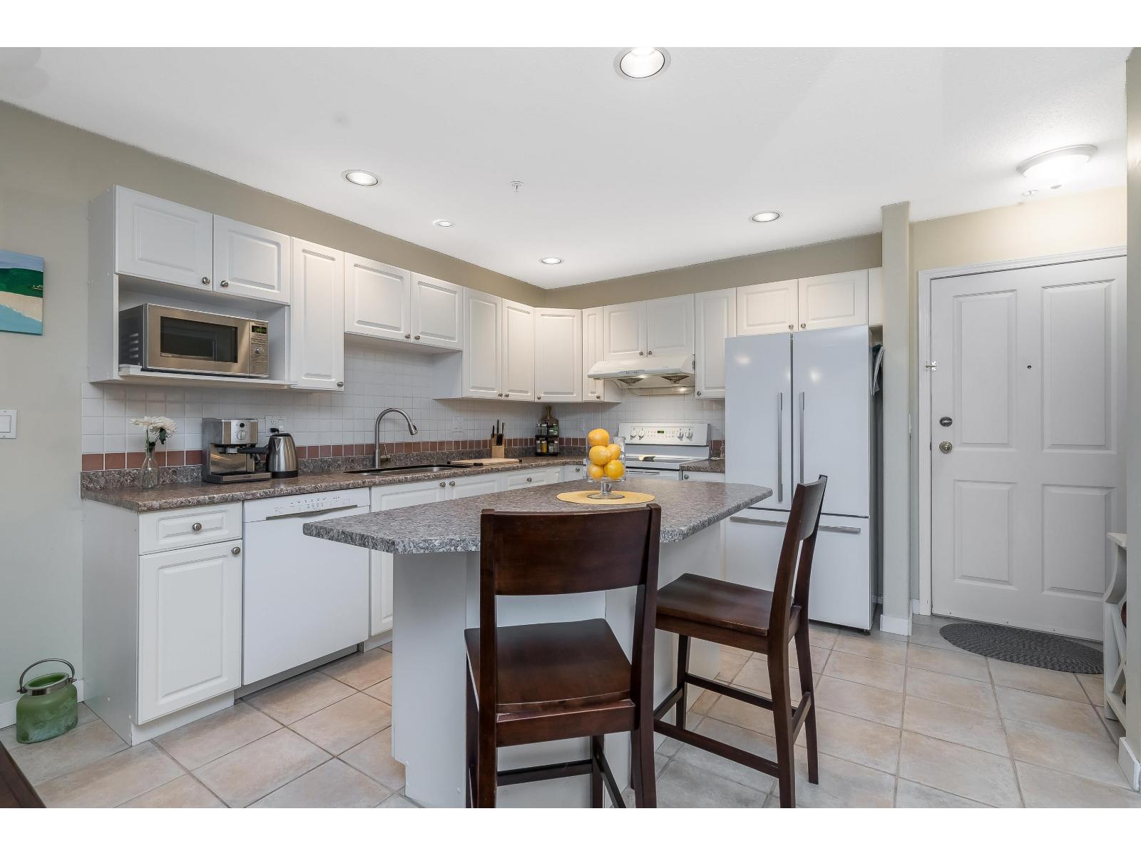 MONTECITO BY THE SEA. Bright & inviting 2 bedroom, 2 bath condo just steps from the beach, shops and restaurants of White Rock.Enjoy morning coffee by the ocean, evening strolls along the promenade and everything White Rock has to offer right outside your door. The west exposure from the balcony exposures offers beautiful sunset skies. Located at the back of the building, this condo enjoys a quiet setting while still being moments from the vibrant beachfront lifestyle. The well-designed layout is ideal for a single or first time buyer. Updated with hardwood flooring in main area & extra storage space in laundry rm. One pet (dog or cat) allowed, 1 parking stall & bike room. Fantastic & affordable opportunity to enjoy walkable seaside living in one of the most sought-after communities. (32402747)