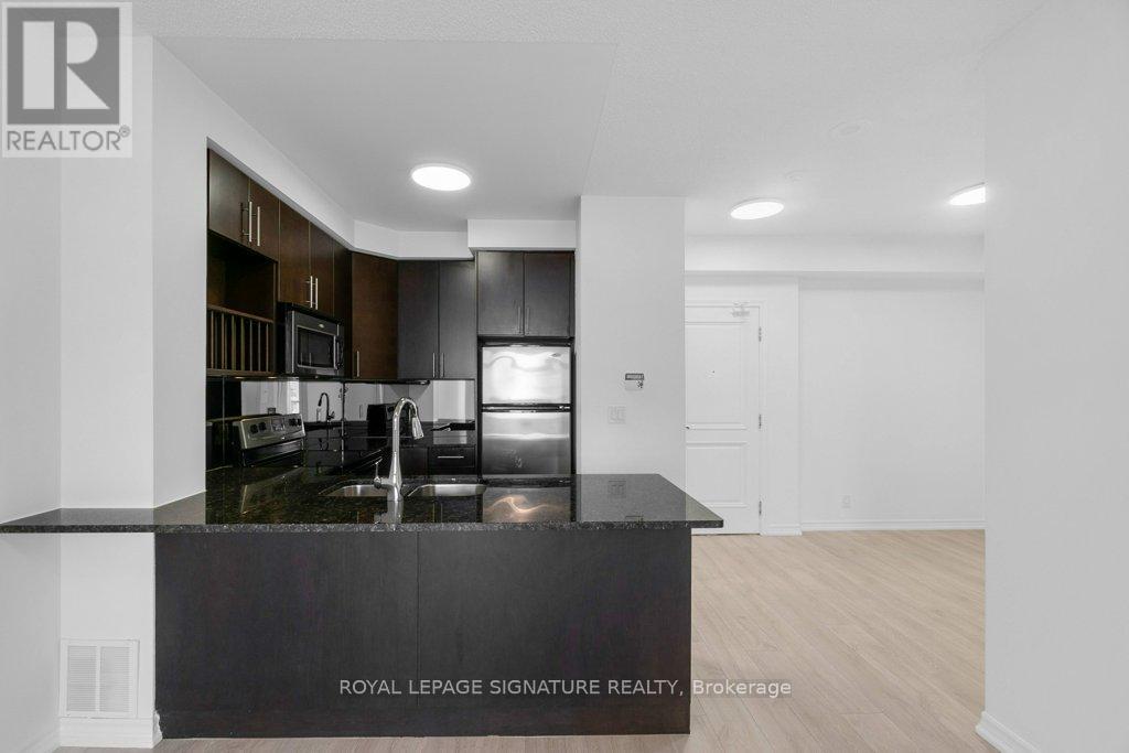 ***Welcome To Bellaria, A Gated Community Of Condominium Residences***. Beautiful 1 Bedroom Unit Plus Den, Open Concept Layout, Well Appointed Kitchen W/Granite Counters, Double Sink, Ample Cabinet Storage. Combined Living And Dining Rooms, Walkout To Balcony With Sunny Southwest Exposure. Recently Painted, New Light Fixtures, New Window Coverings, Carpet Free. Ensuite Laundry, 1 Parking, 1 Locker. Residents Can Enjoy Exceptional Amenities, Including A Reading Room/Library, Party Room, Gym, Yoga/Pilates Studio, Games Room, Steam Room, Boardroom, Theatre Room, Guest Suite, And An Outdoor Barbecue Area. Situated In A Private Park-Like Setting With Rivers And Walking Trails, This Property Offers A Private, Secluded, Gated Community While Being Steps To Transit, Shopping, Restaurants, Vaughan Mills, Parks, And Minutes From Rutherford GO, Major Highways, Canadas Wonderland And More. See attached photos, virtual tour and floor plan for more details. (42070565)